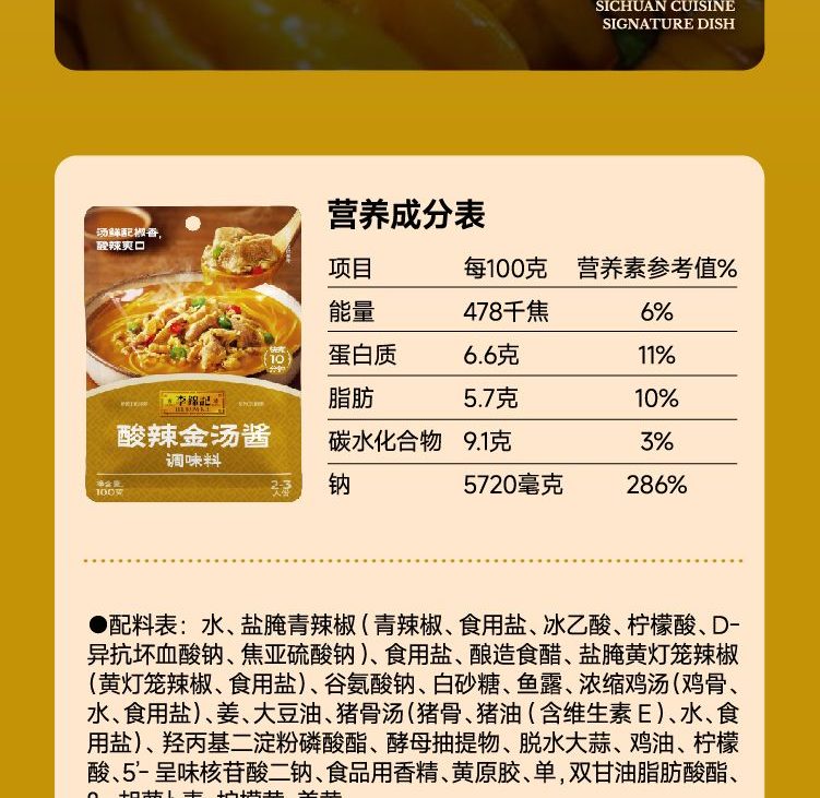 李锦记 拿手菜系列 酸辣金汤酱100g 金汤肥牛 汤鲜椒香 调味料 一招胜