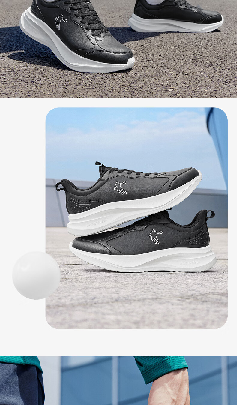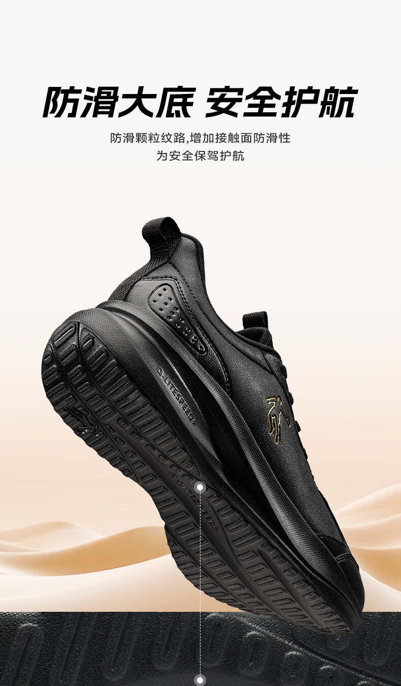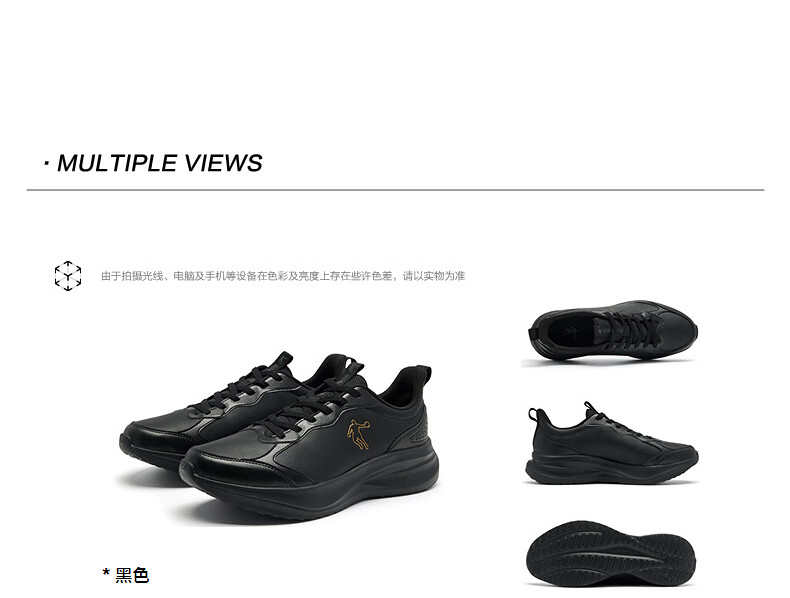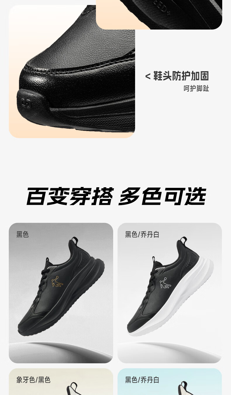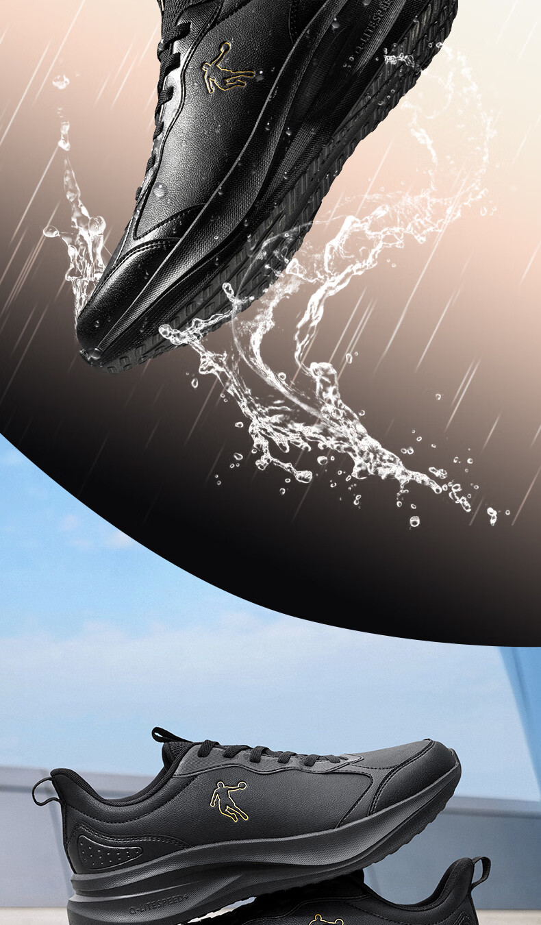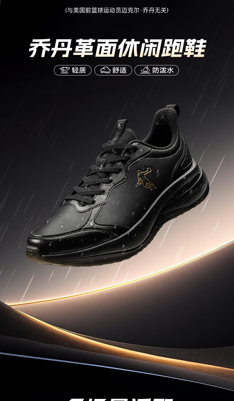 乔丹运动鞋男冬季新款皮面革面保暖防风防水跑步鞋运动鞋舒适经典通勤 男跑-黑色 37