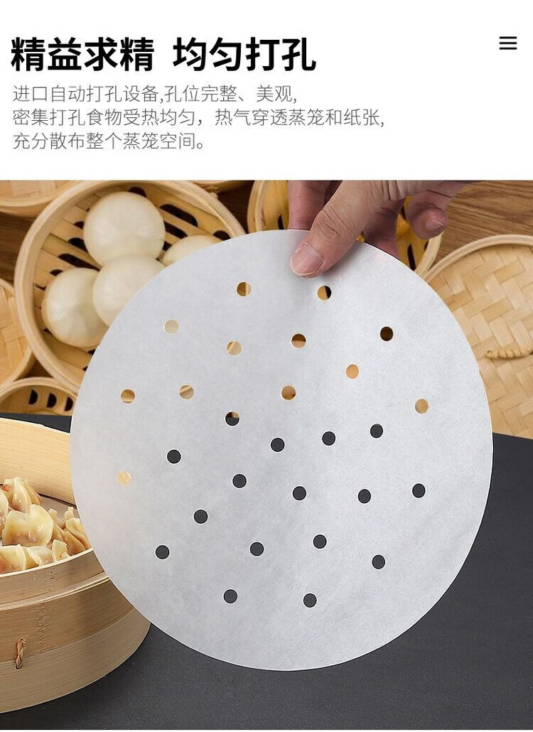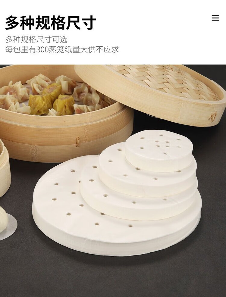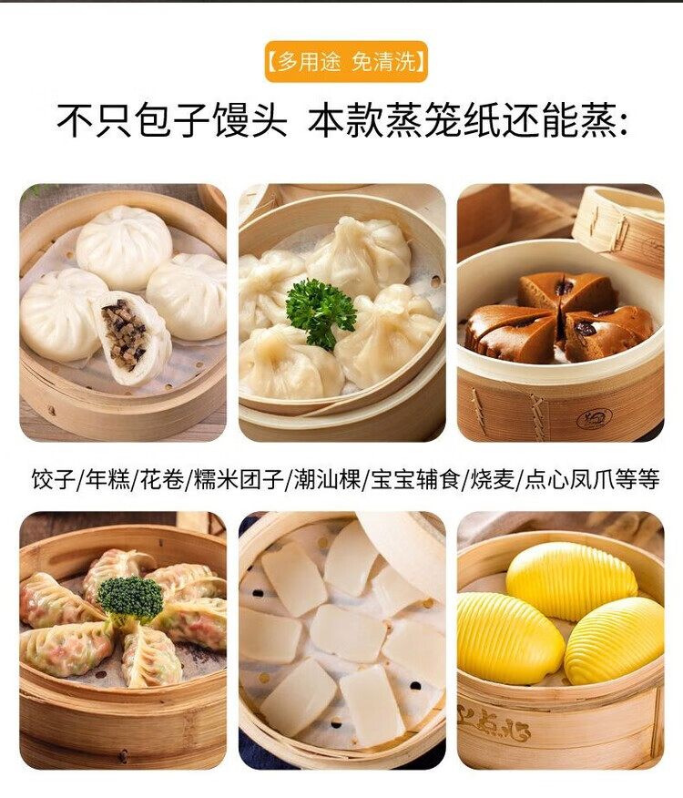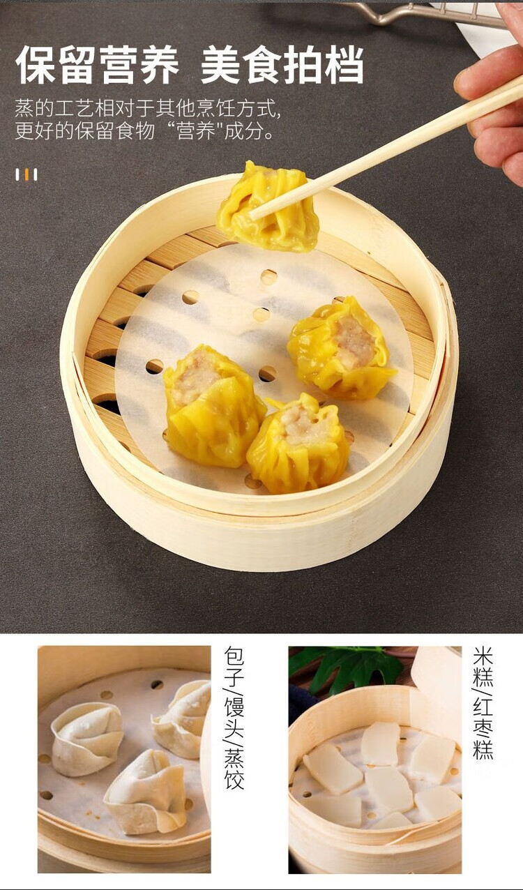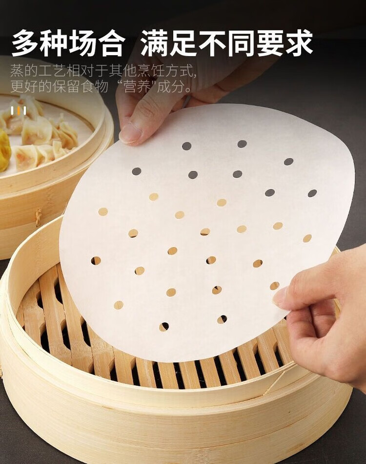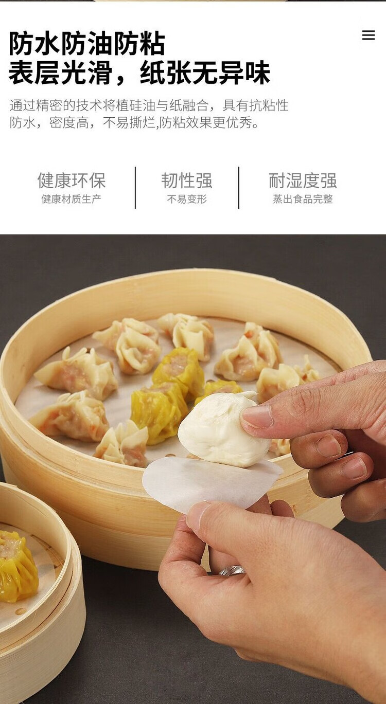 DEATKN食品级蒸笼纸包子垫纸油纸笼布蒸布蒸馒头不粘糯米纸家用耐热性好 200张【真食品级】【生态纸浆】【无荧光】 34厘米【大】
