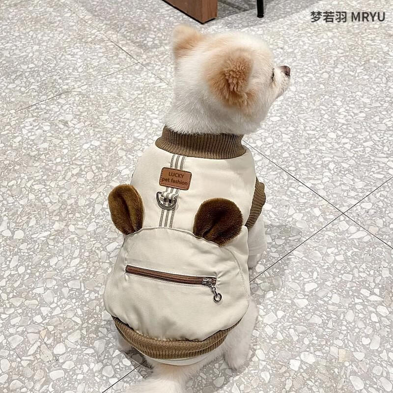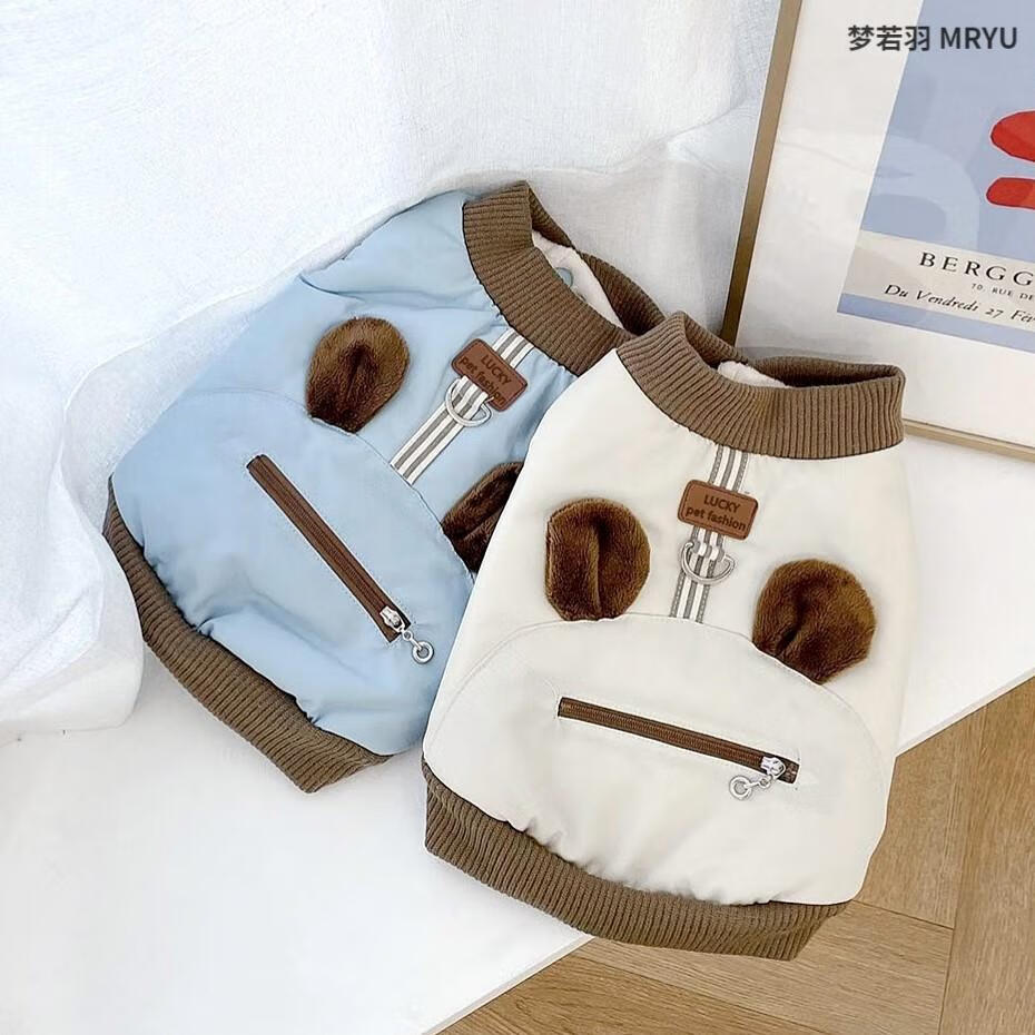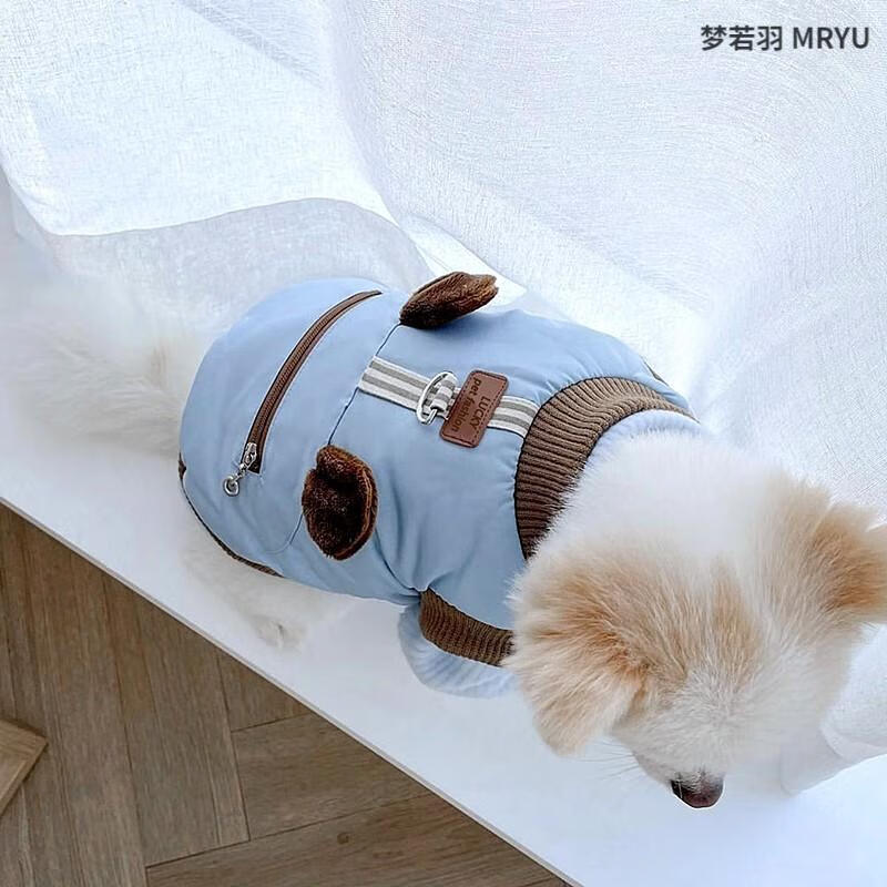 汪鲜客小鹿犬狗狗专用秋冬季天两脚衣服加绒博美比熊小型幼犬棉衣可牵引 蓝色棉衣 L背长35cm(建议8-10斤)