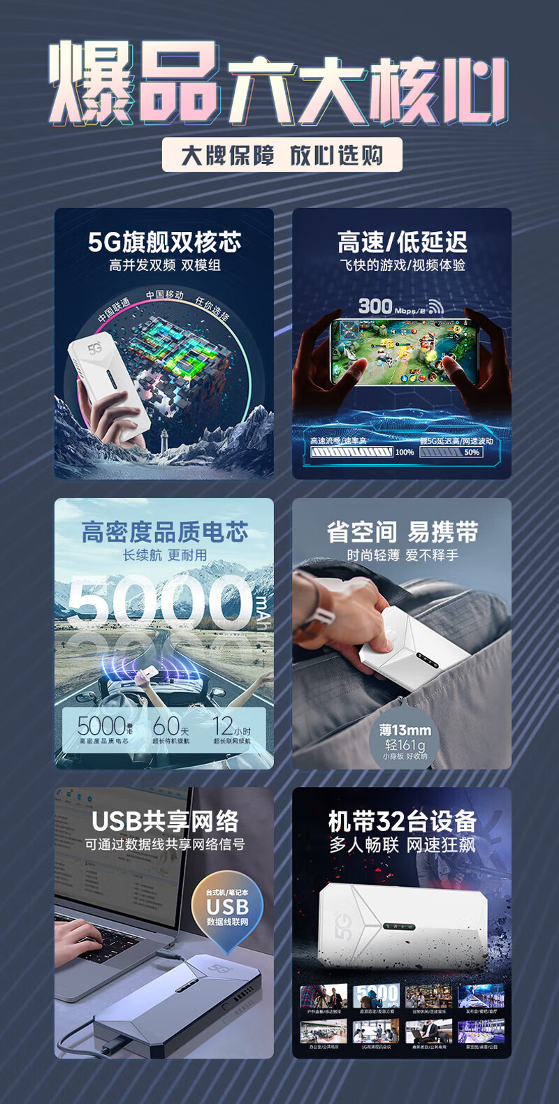 智创当下5G随身wifi6移动无线免插卡流量网卡便捷式无限流量2025款千兆双频路由器十大排名车载办公不限速 【5G顶配版-暗灰】性能升级,狂暴网速续航优化