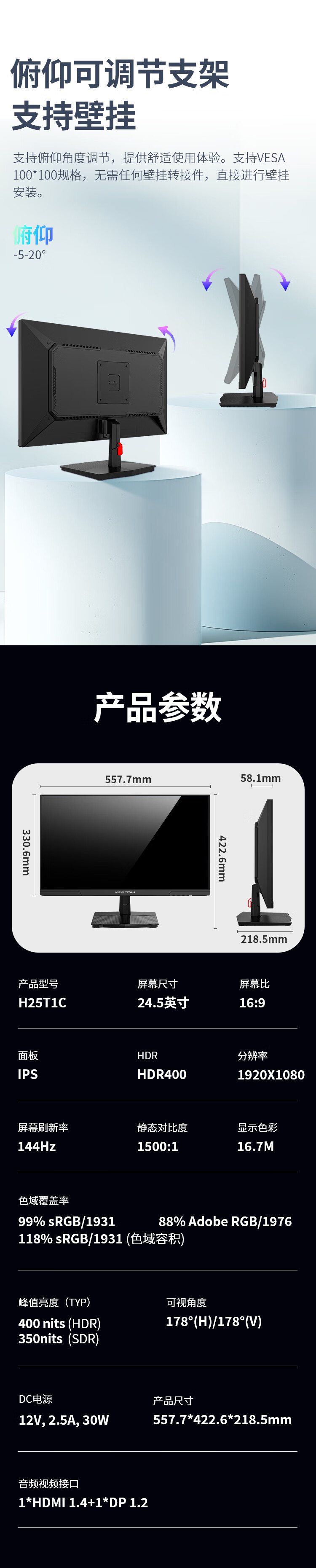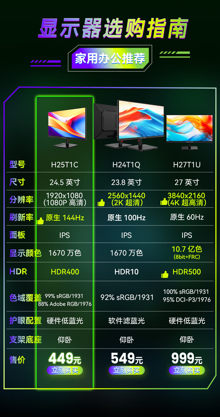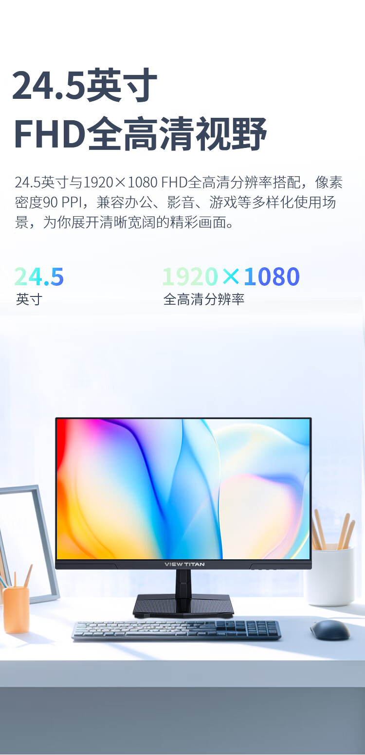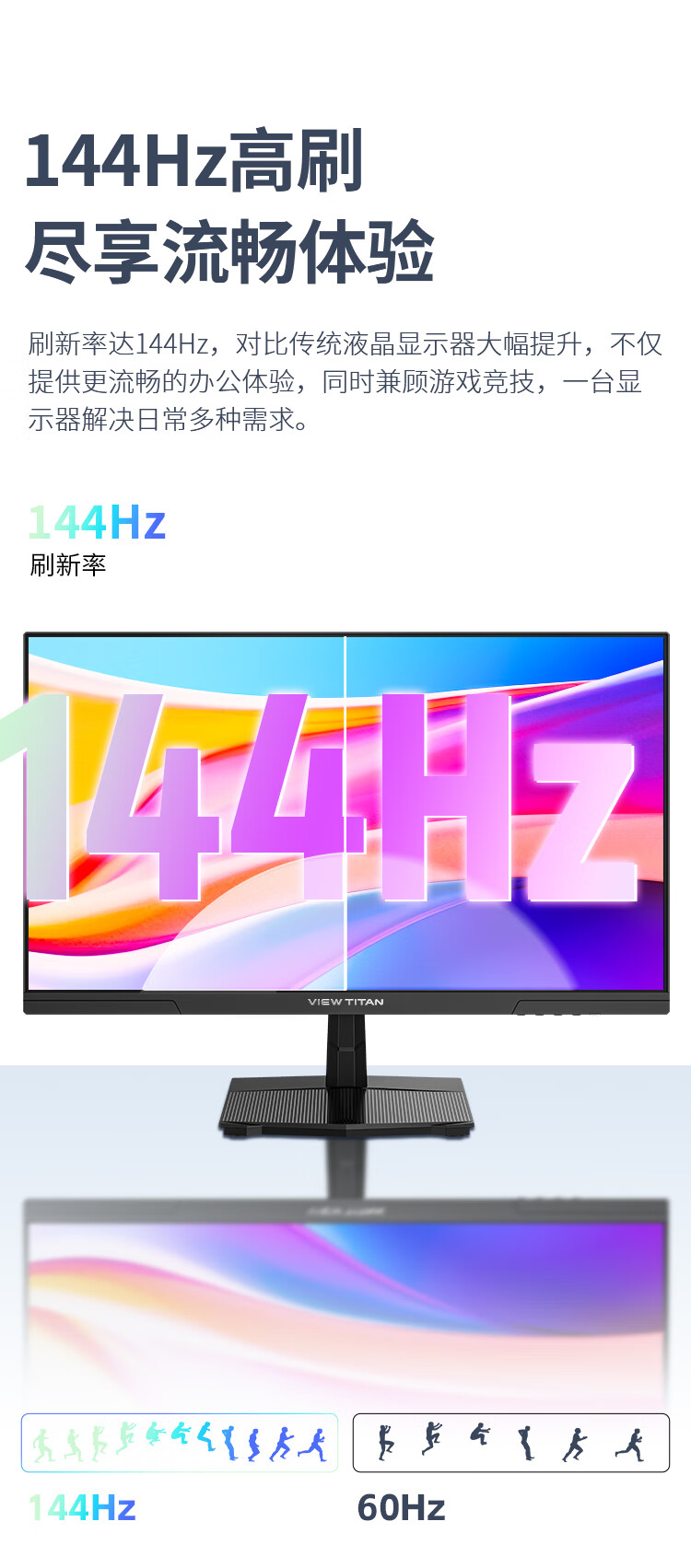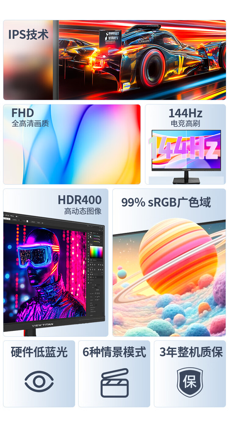 泰坦军团 24.5英寸 IPS 144Hz高刷护眼办公屏 HDR400硬件低蓝光不闪屏 可外接笔记本电脑显示器 H25T1C