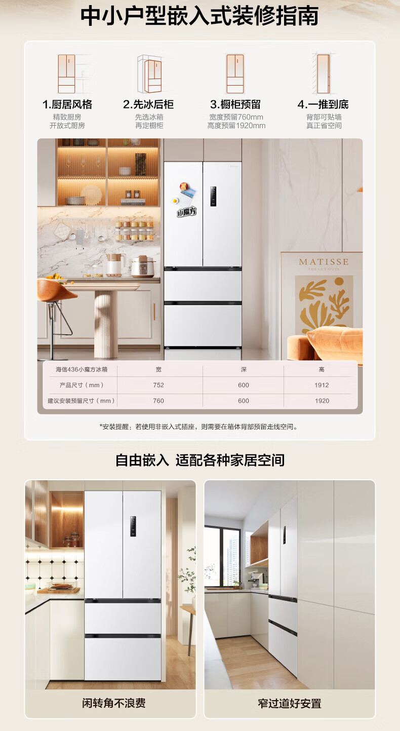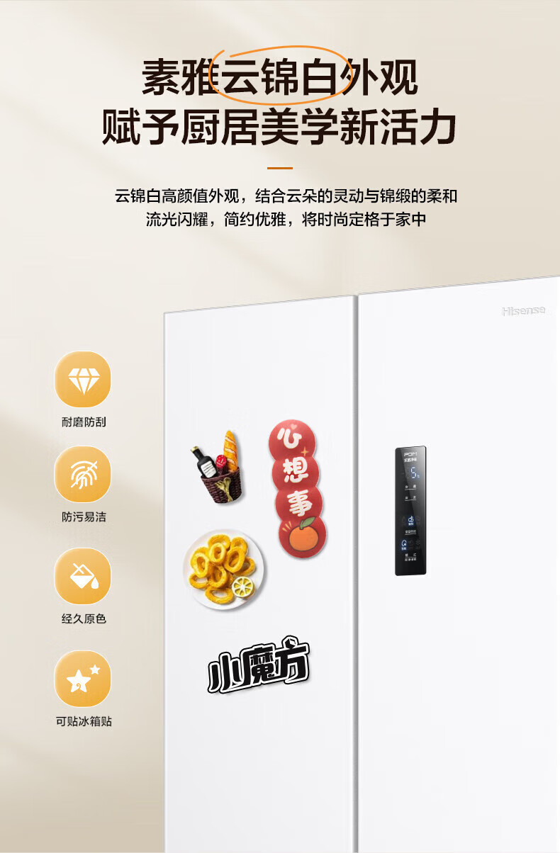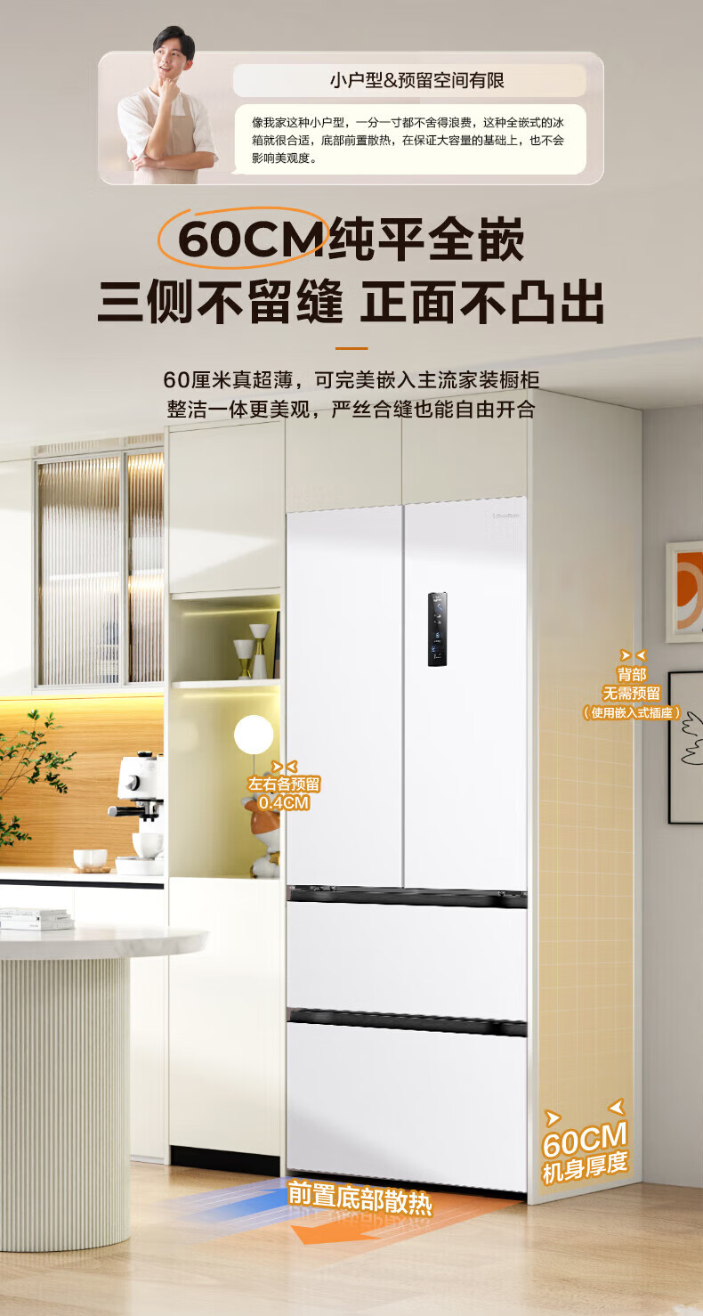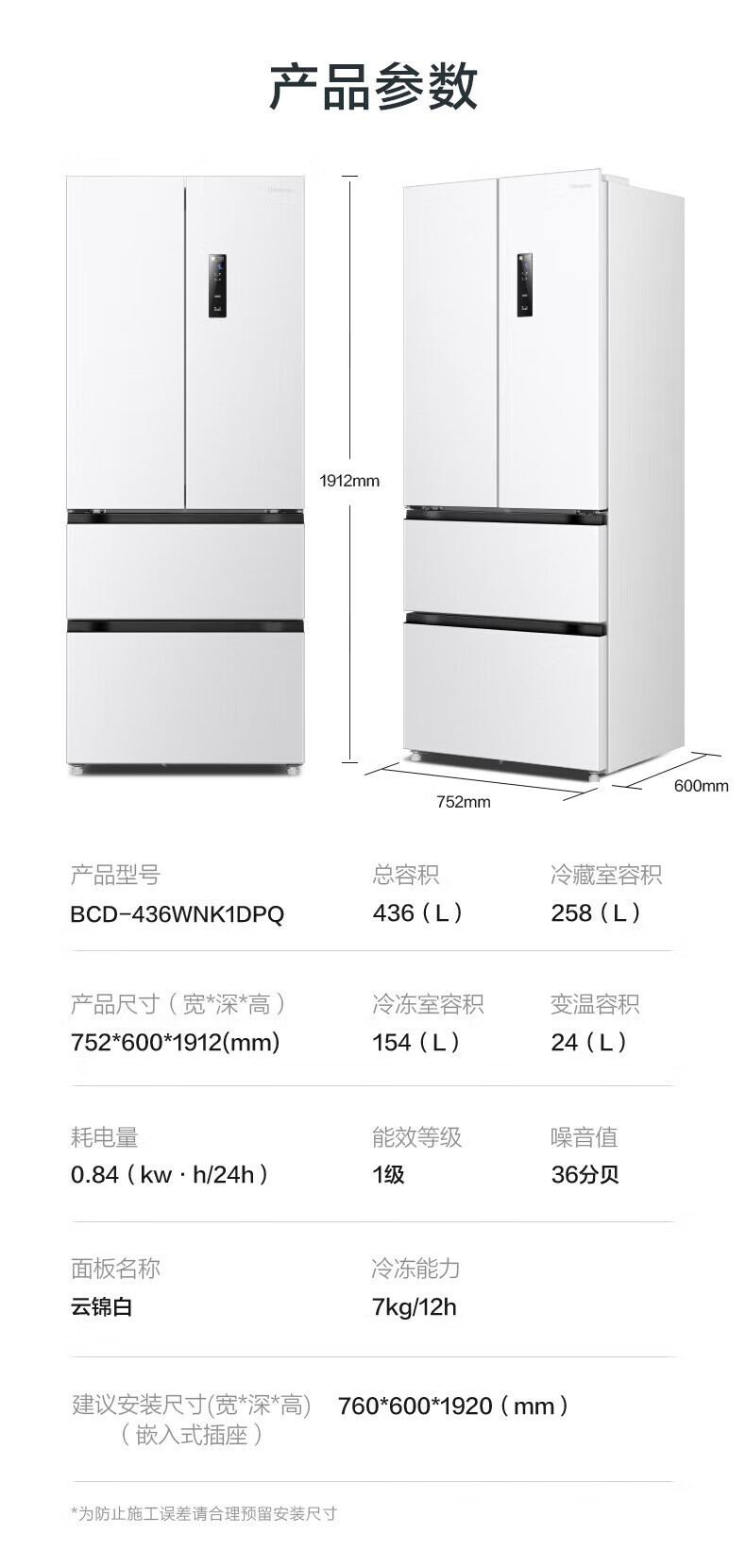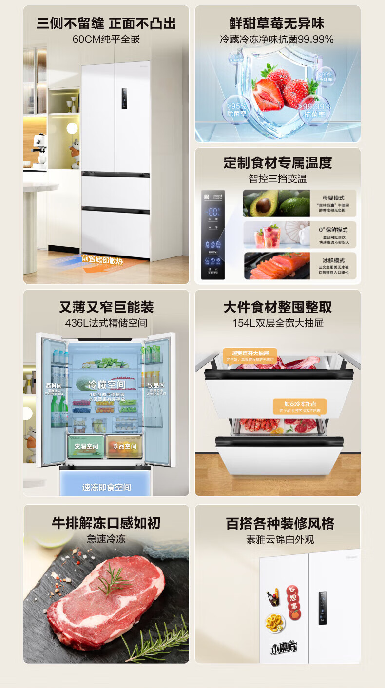 海信(Hisense)436小魔方超薄零嵌入式冰箱四开门法式冰箱一级节能冰箱家电国家补贴20%以旧换新BCD-436WNK1DPQ 【云锦白】