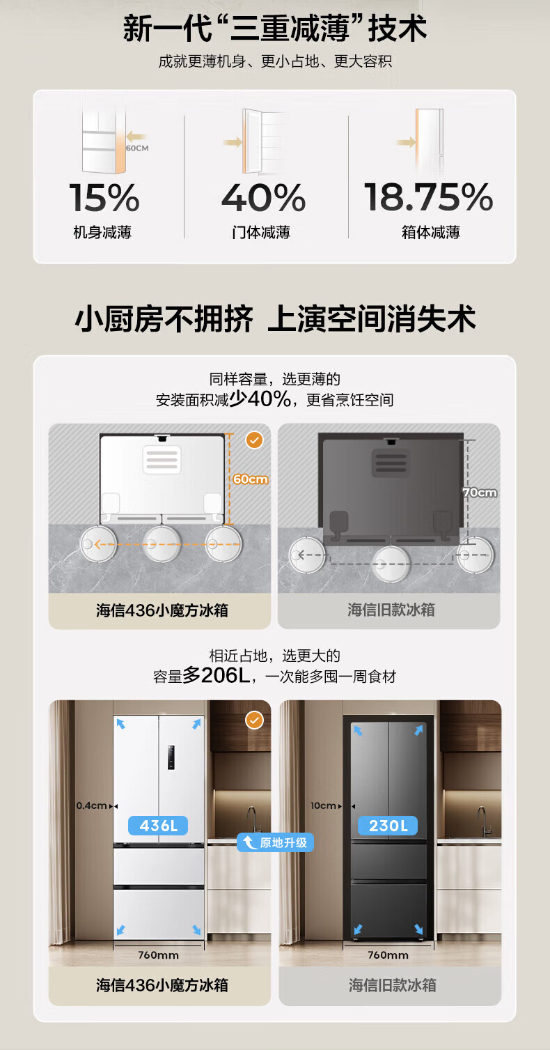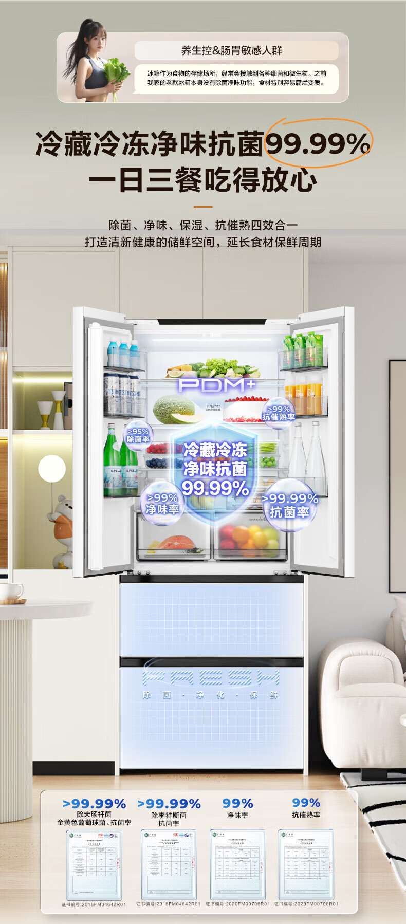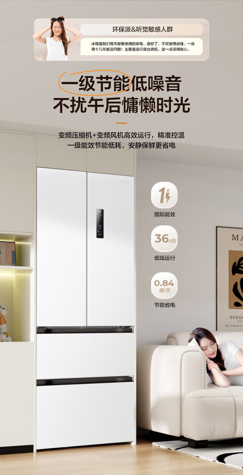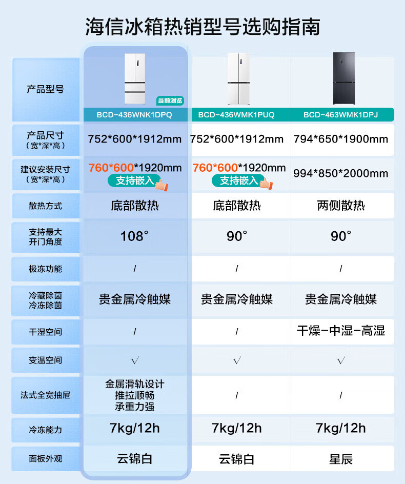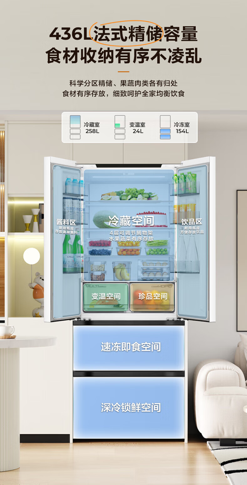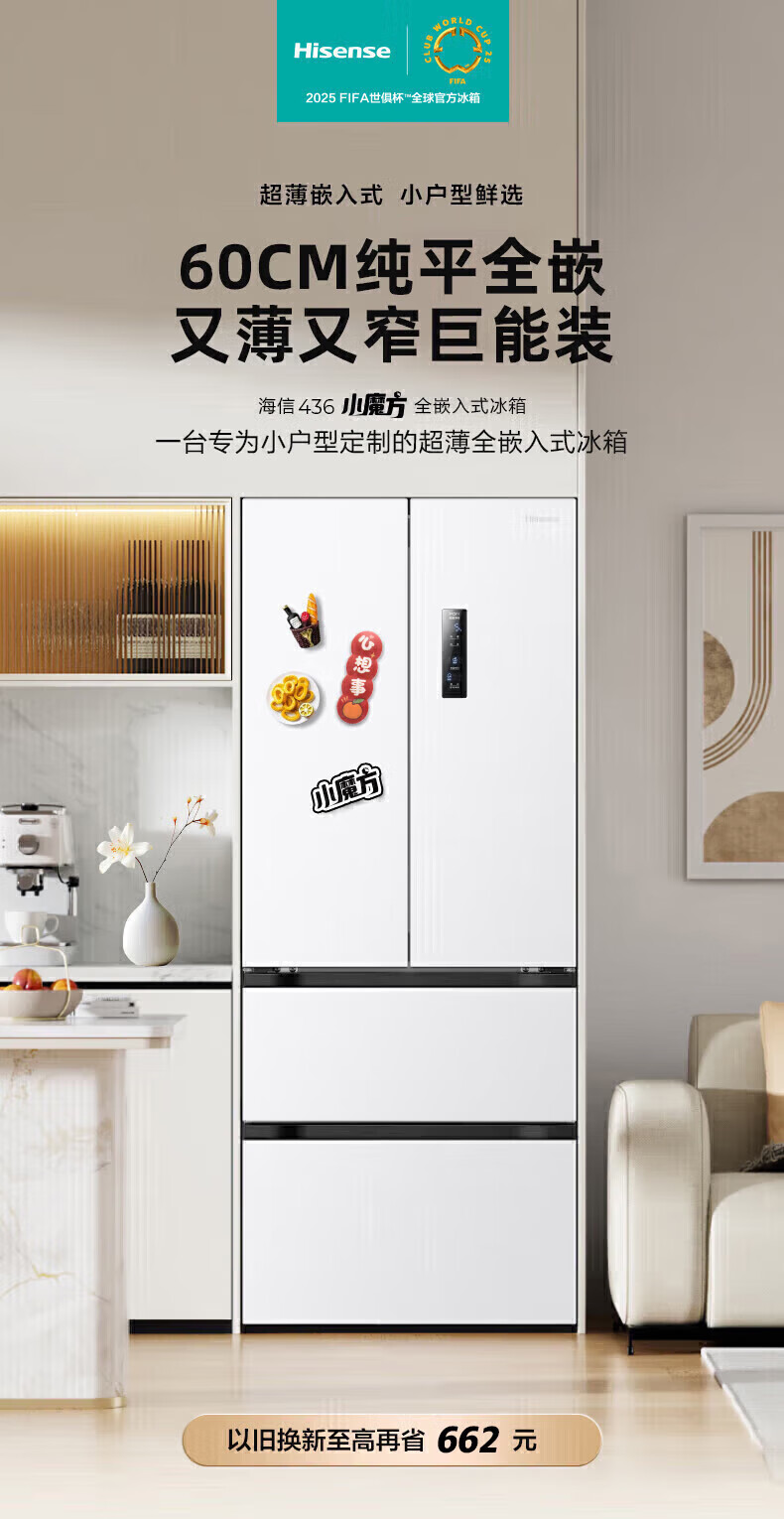 海信(Hisense)436小魔方超薄零嵌入式冰箱四开门法式冰箱一级节能冰箱家电国家补贴20%以旧换新BCD-436WNK1DPQ 【云锦白】