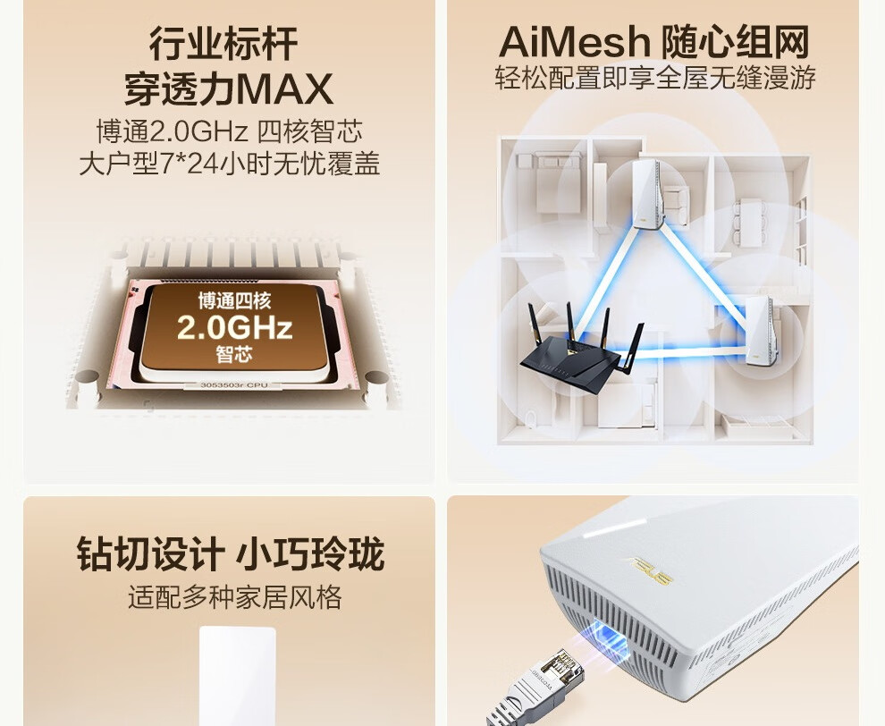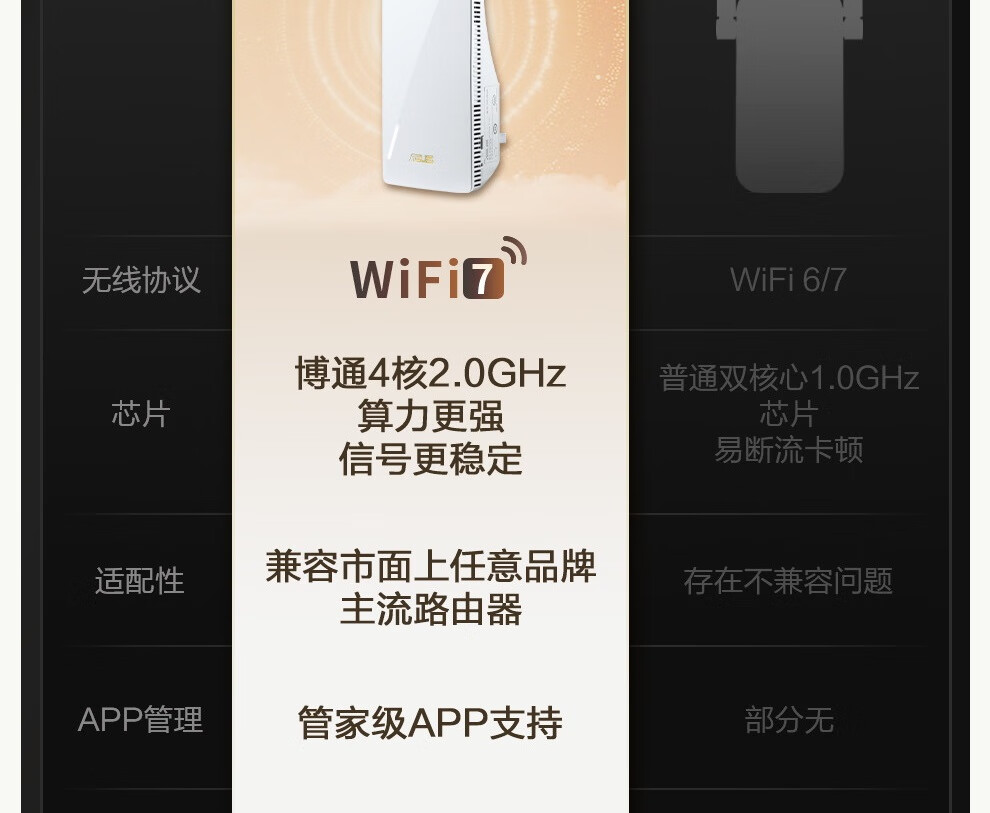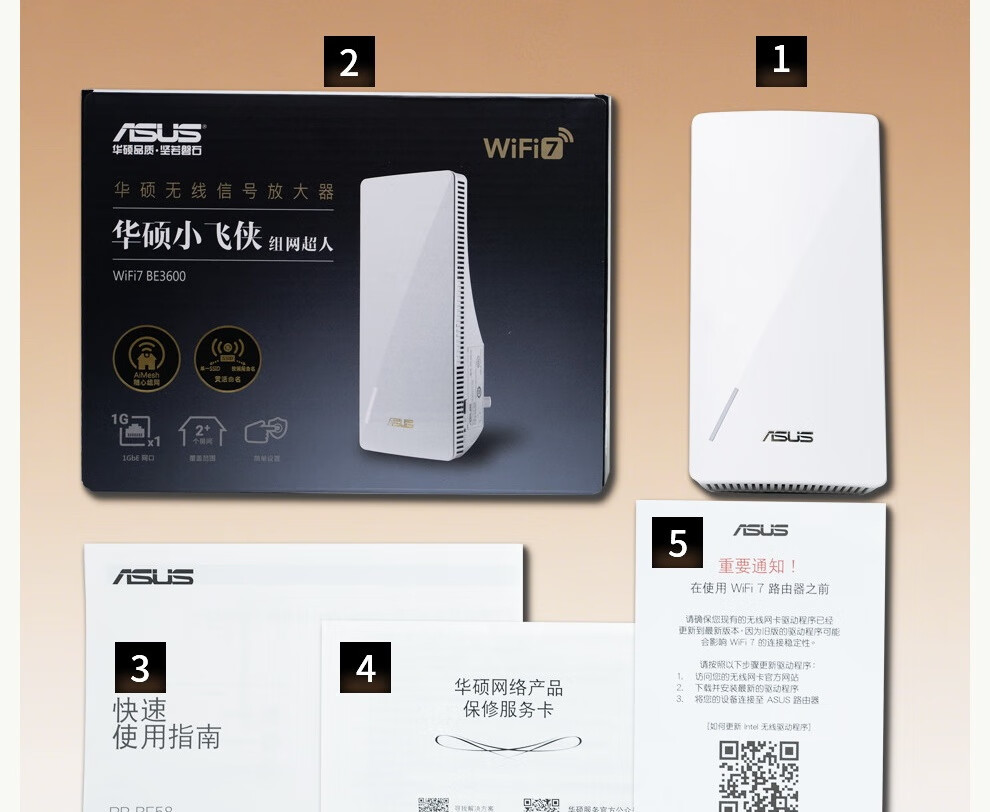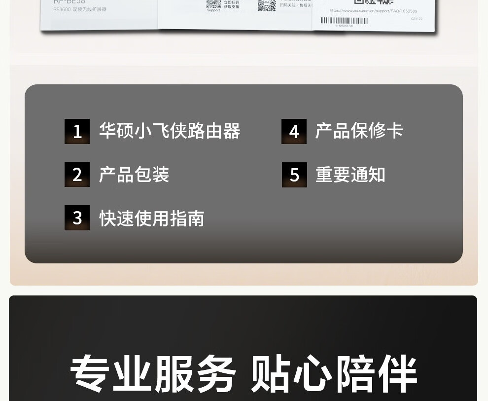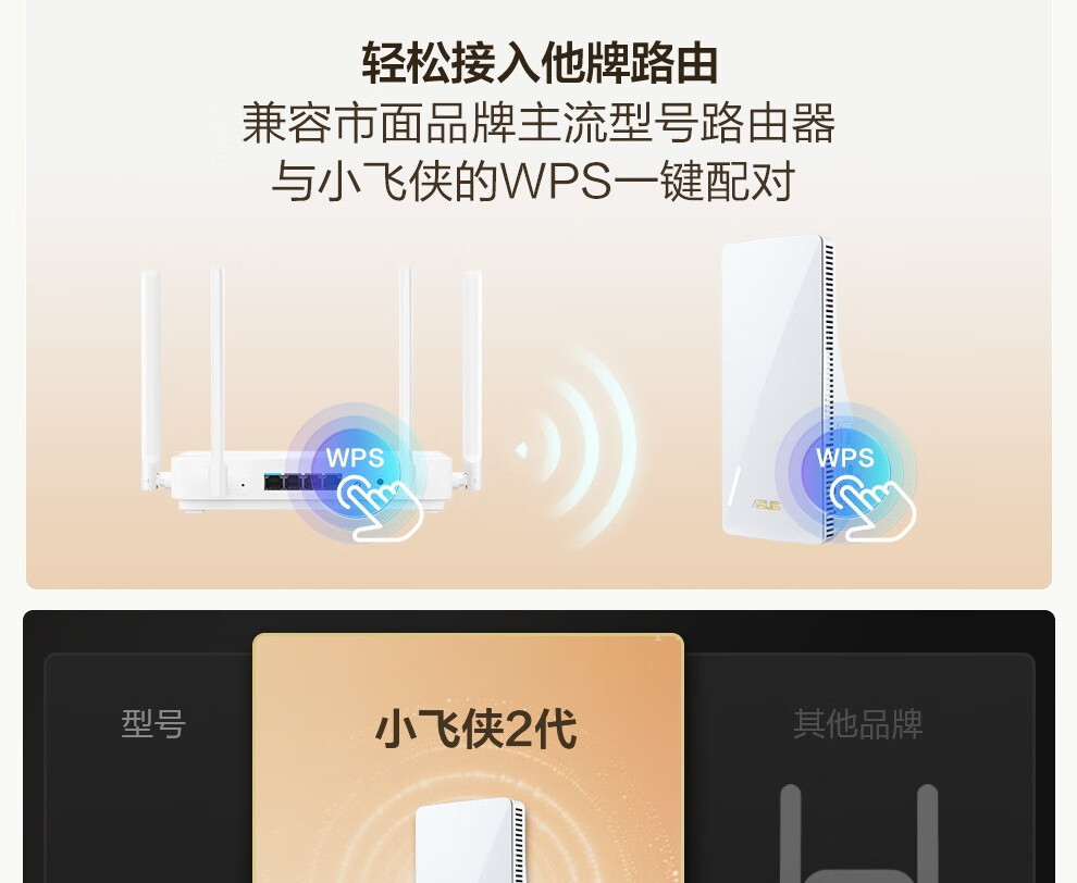 华硕(ASUS)小飞侠WiFi7信号放大器博通四核2.0G双频3600M无线增强小机身大覆盖RP-BE58