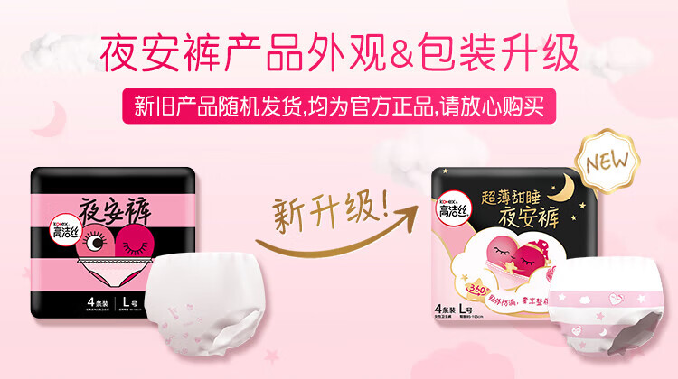 高洁丝(Kotex)夜安裤卫生巾防漏产妇量大超长夜用裤型安睡裤夜用安心裤 少女裤均码16条
