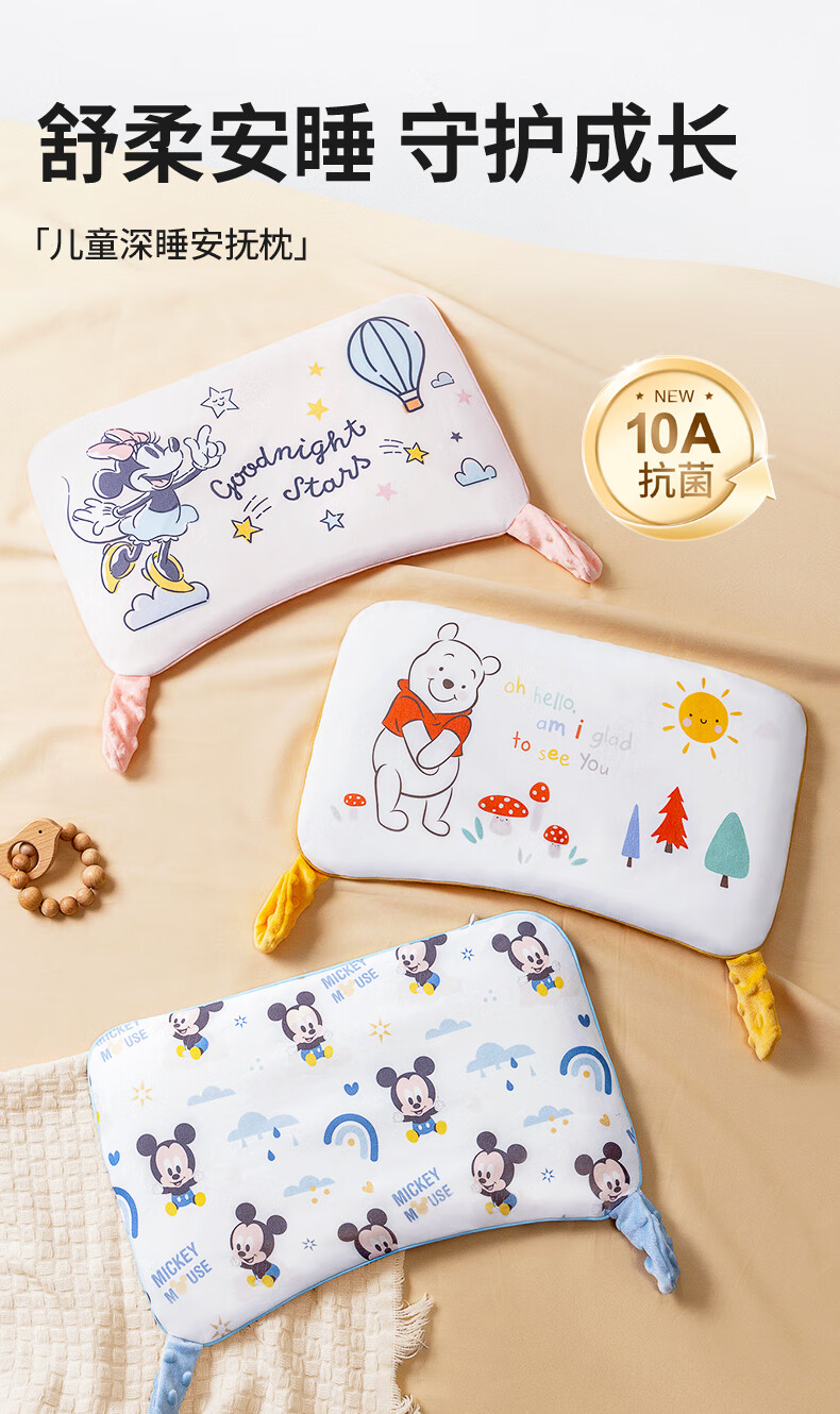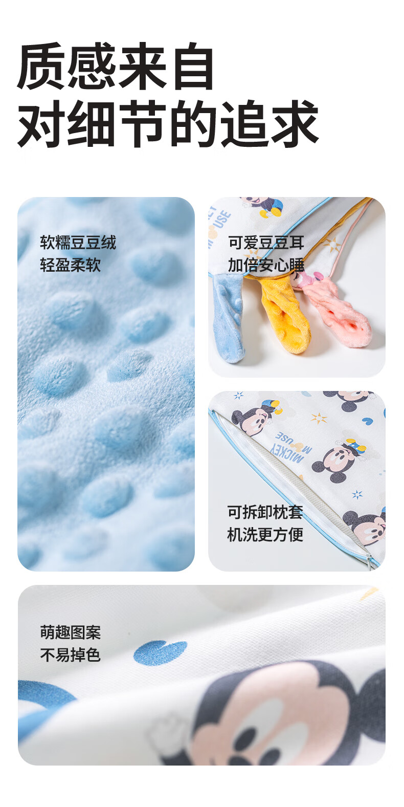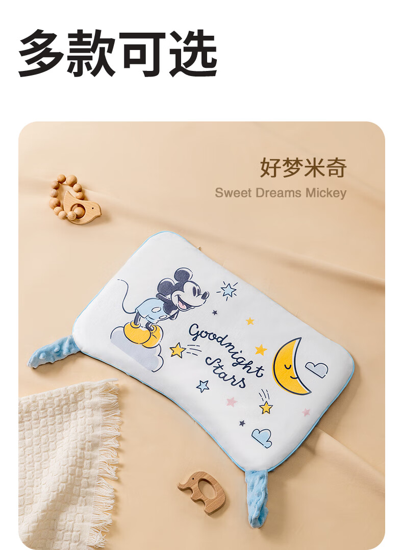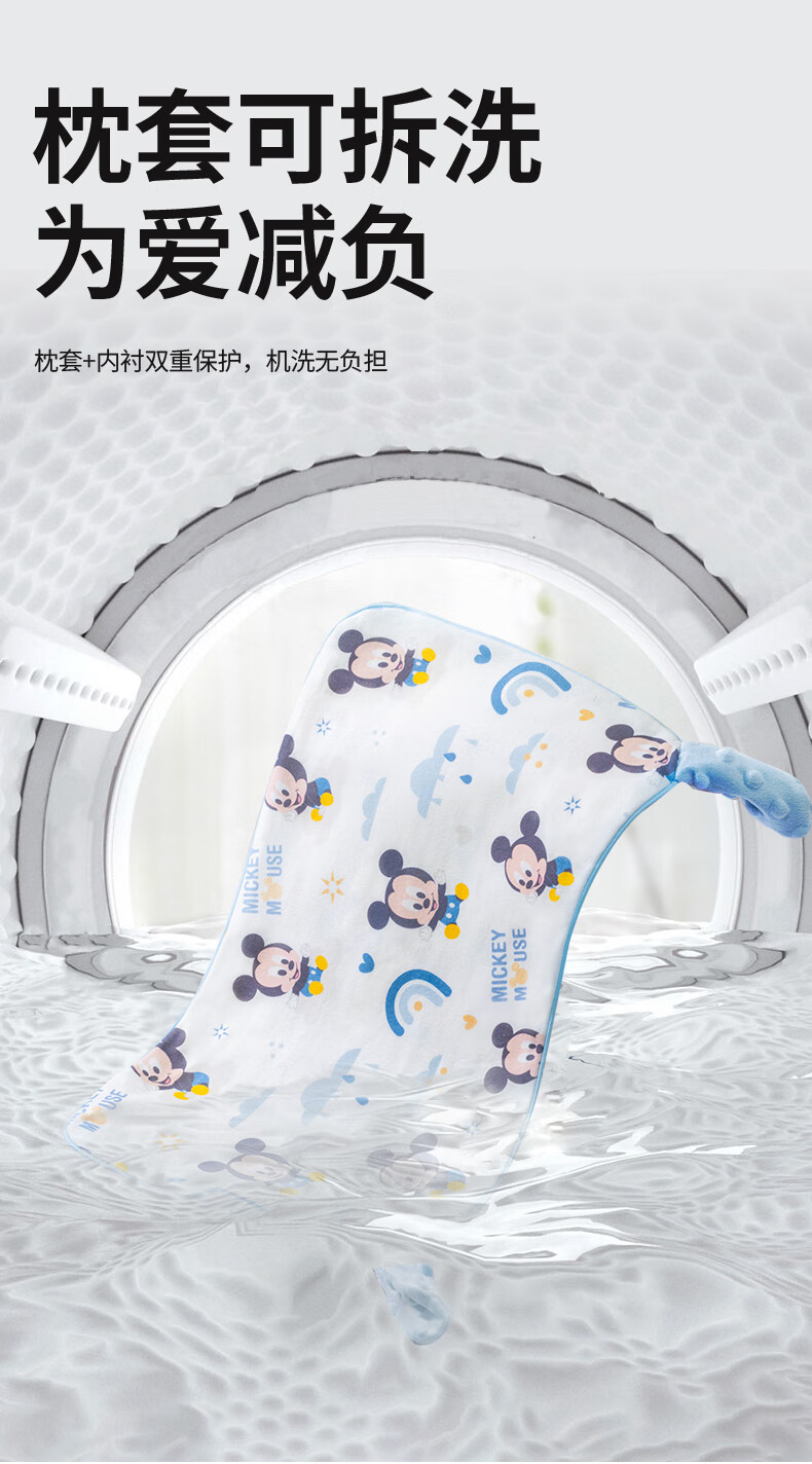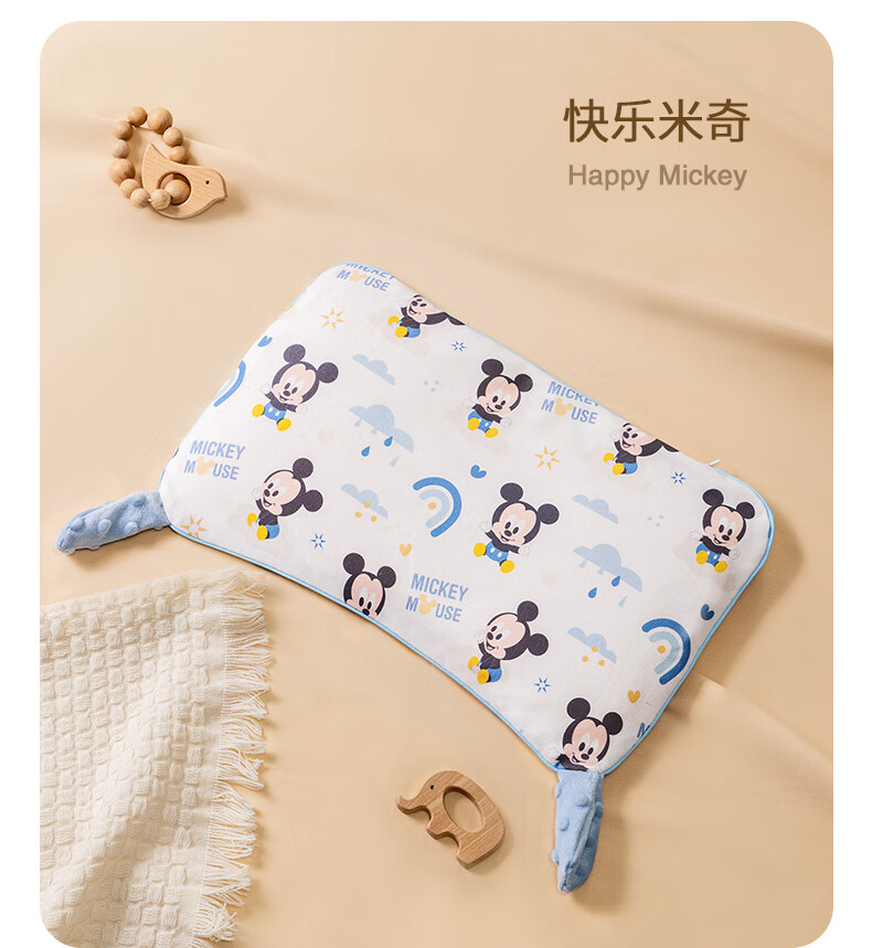 迪士尼婴儿安抚枕头透气硅胶婴幼儿枕芯0-3-6岁可机洗可晾晒儿童枕米奇