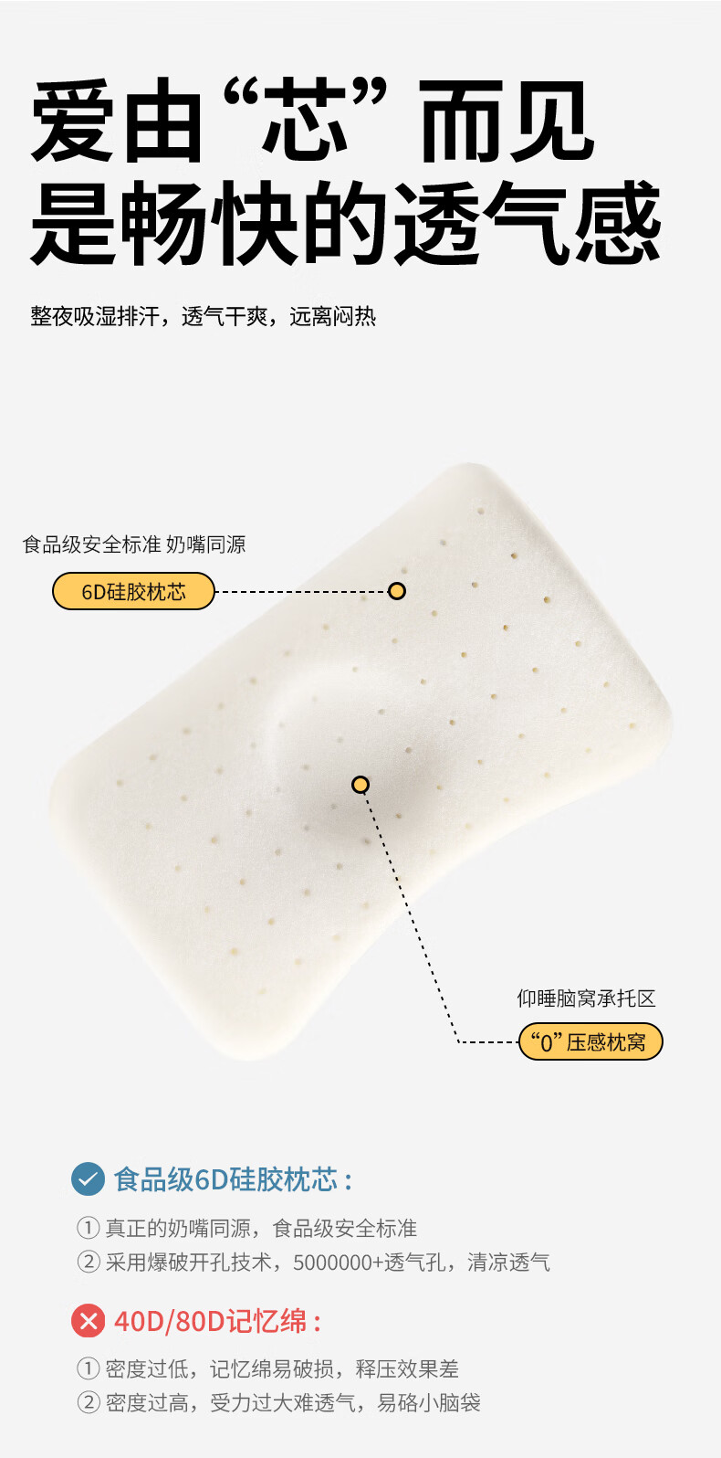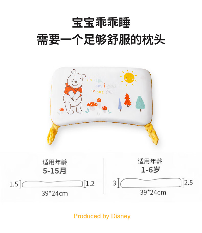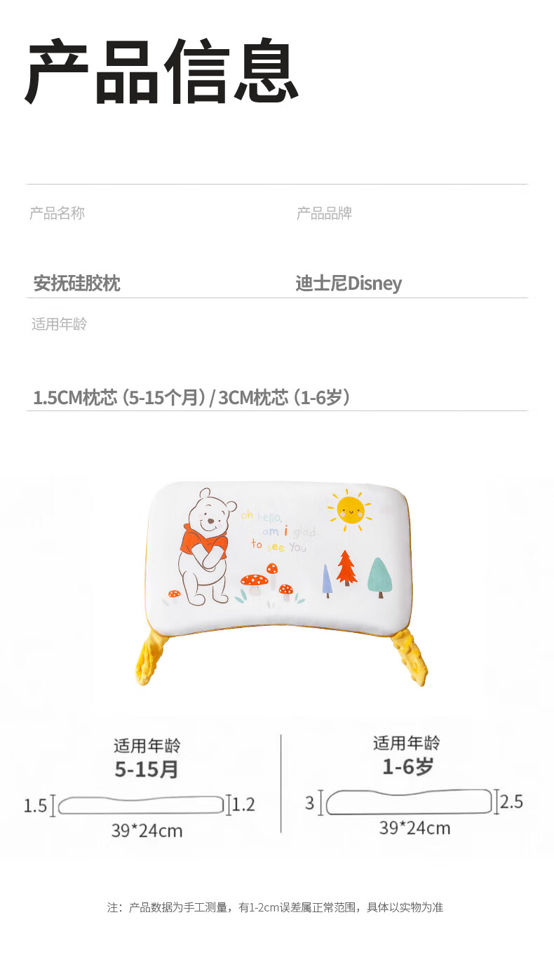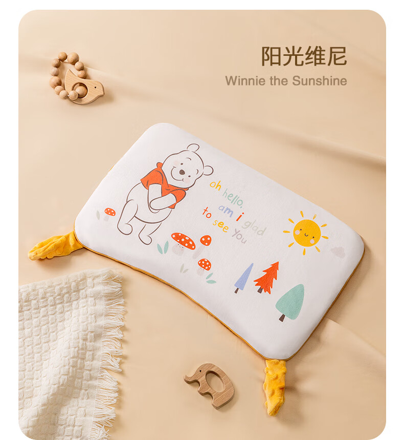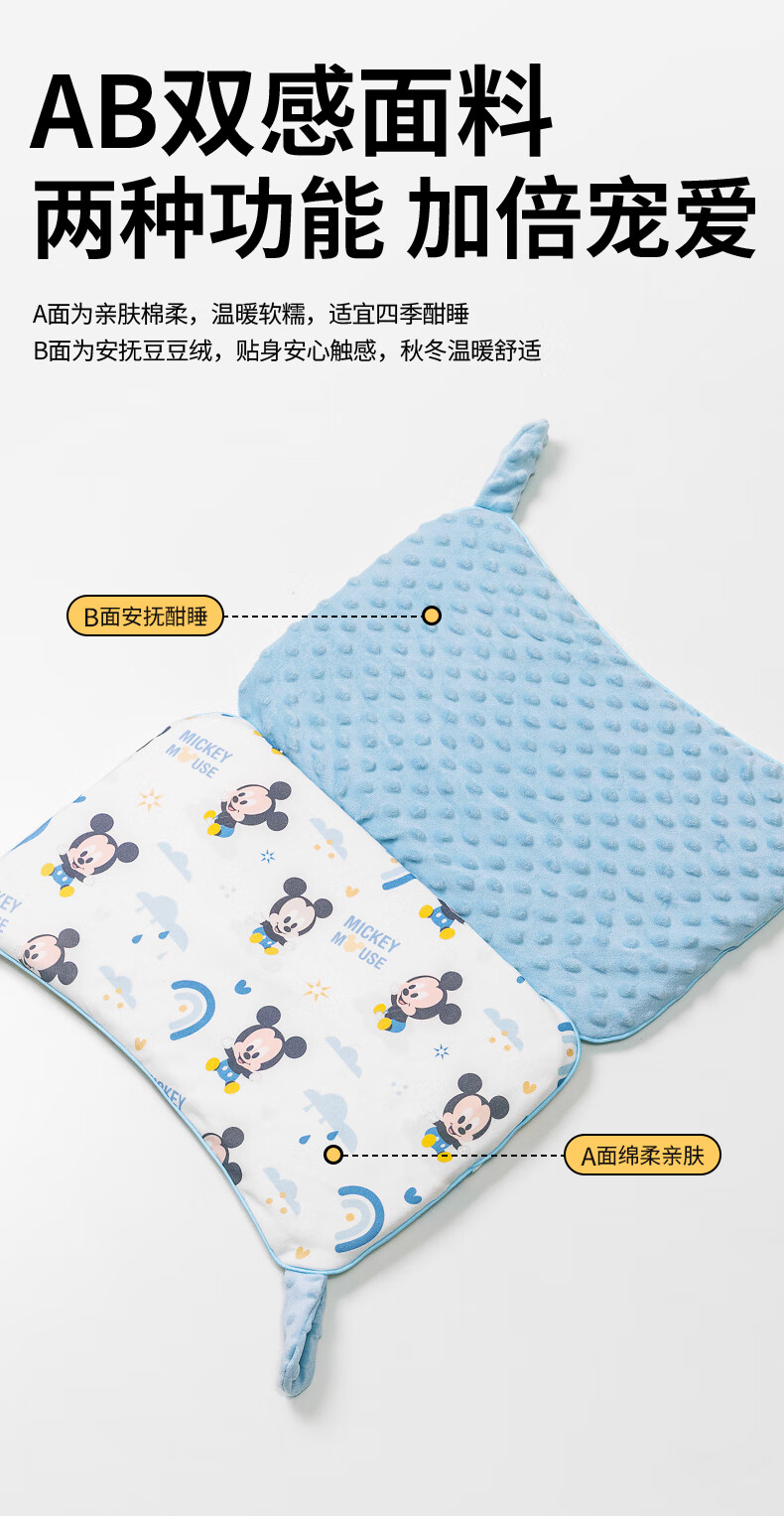 迪士尼婴儿安抚枕头透气硅胶婴幼儿枕芯0-3-6岁可机洗可晾晒儿童枕米奇