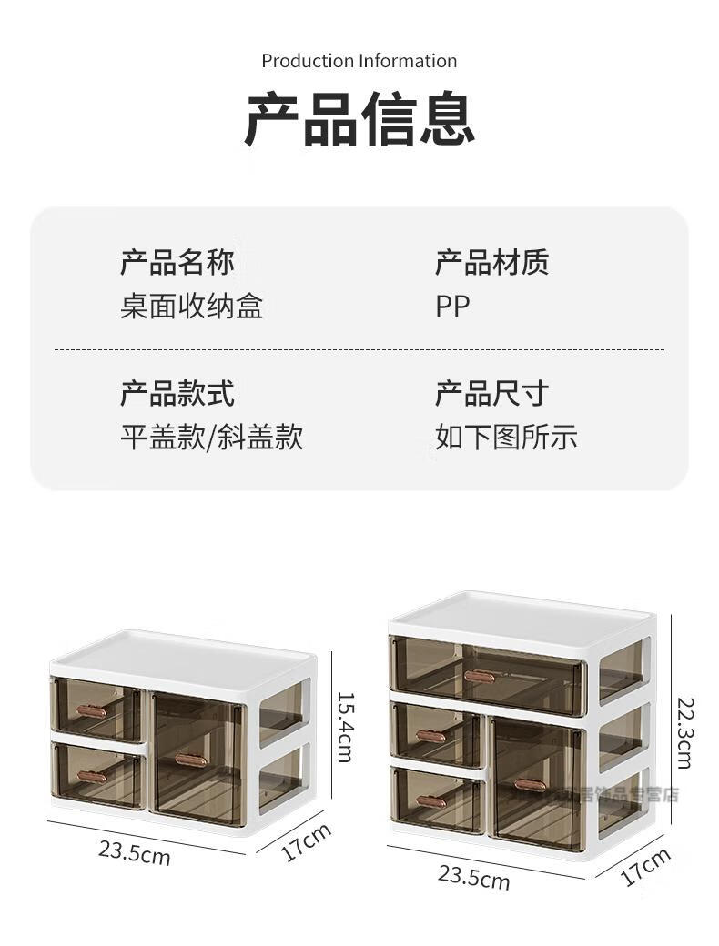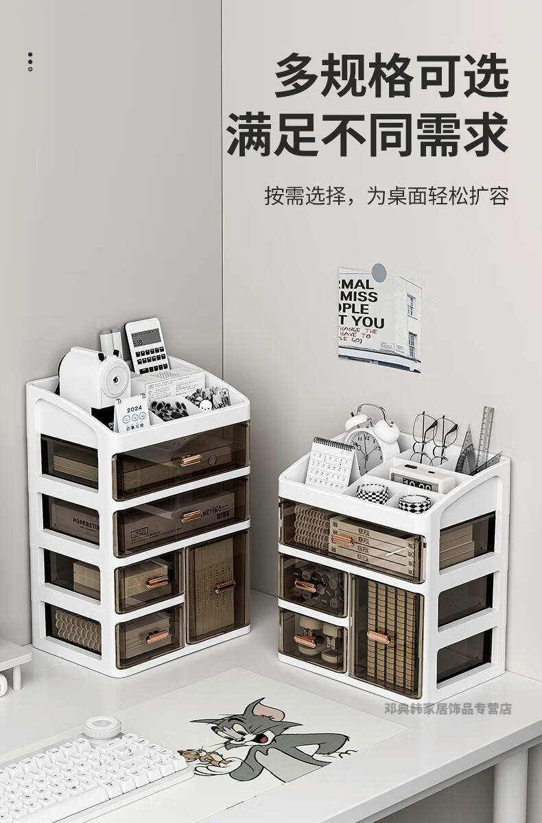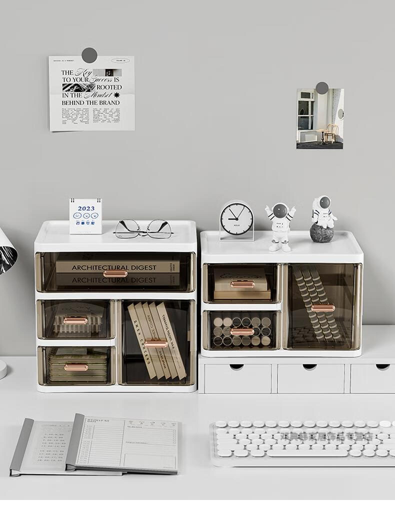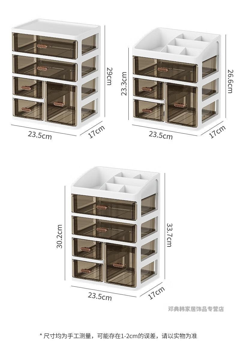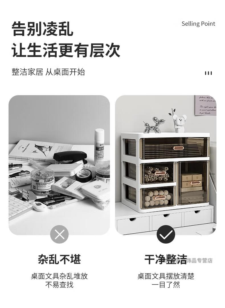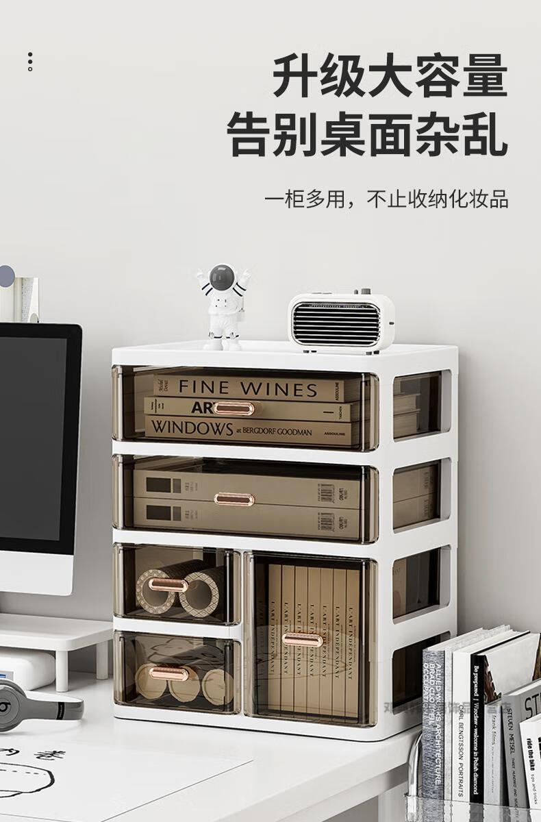 DEATKN德国抽屉式桌面宿舍收纳盒书桌文具置物架多功能大容量整理神器 琥珀黑【平盖3层】甄选材质_可视抽屉
