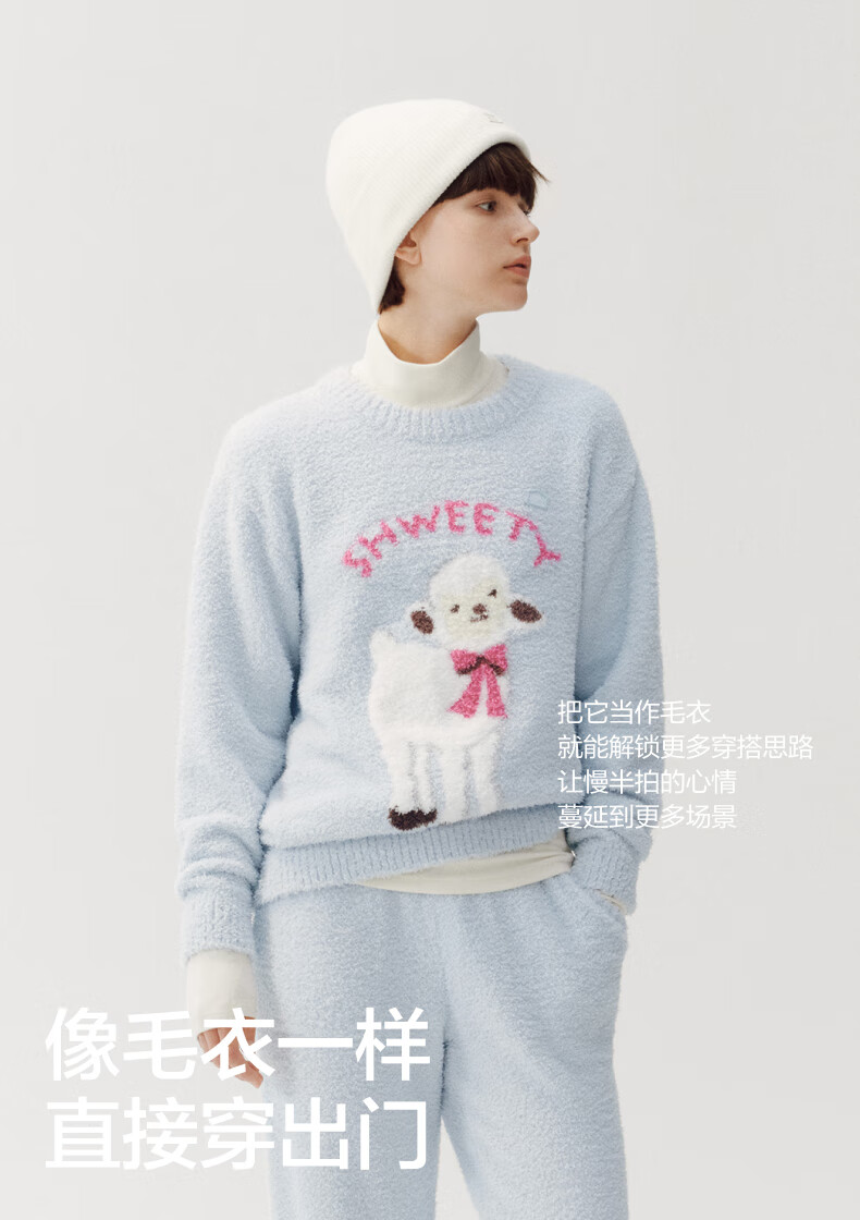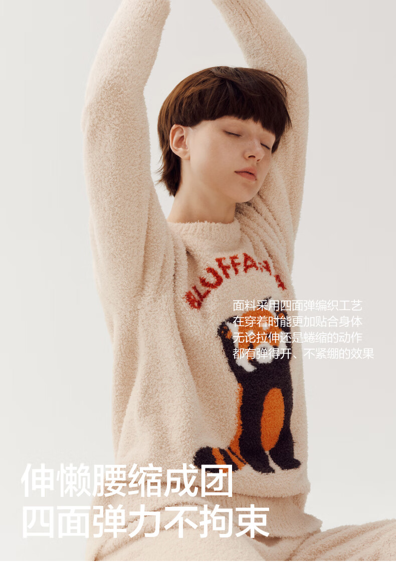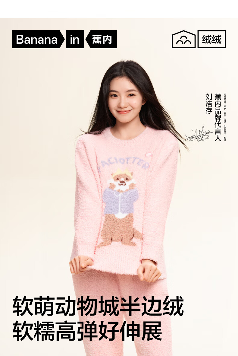 蕉内【刘浩存同款】绒绒520H女士睡衣半边绒冬季家居服情侣款保暖加厚