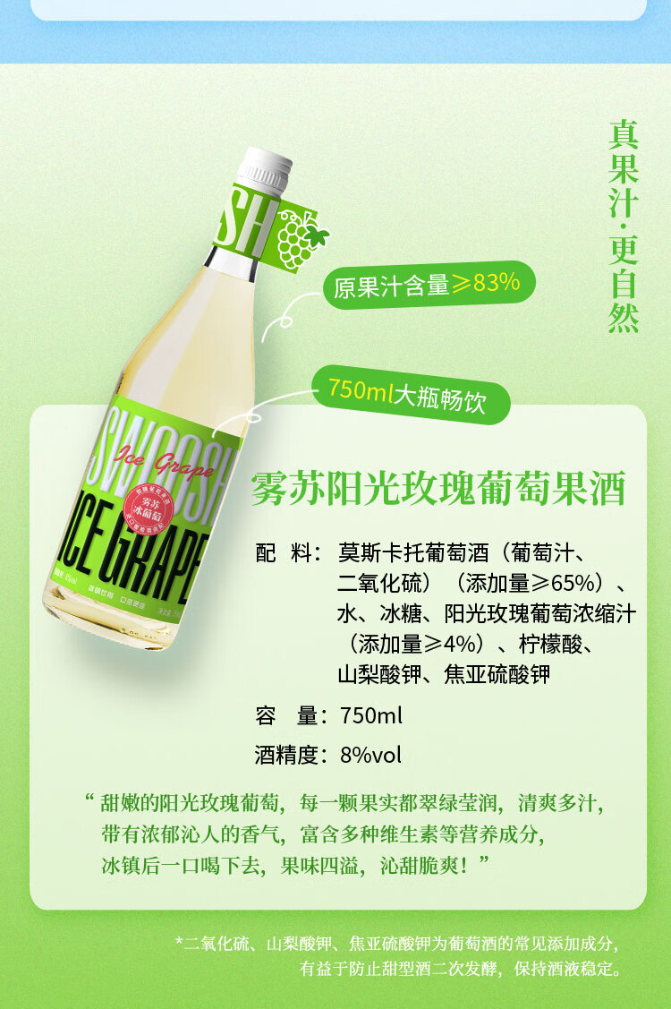 金羊毛【4项大奖 自然清甜】雾苏阳光玫瑰果味葡萄酒甜酒莫斯卡托鸡尾酒 750ml*2瓶
