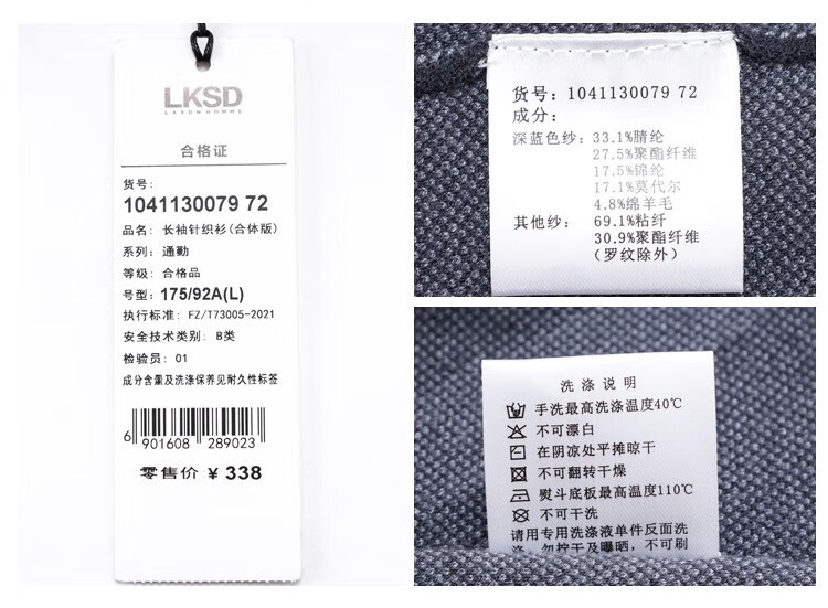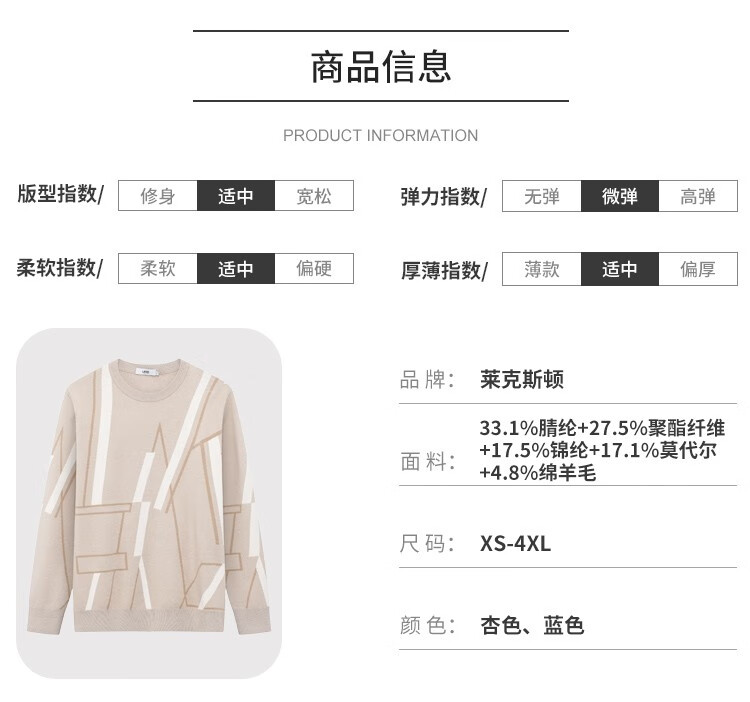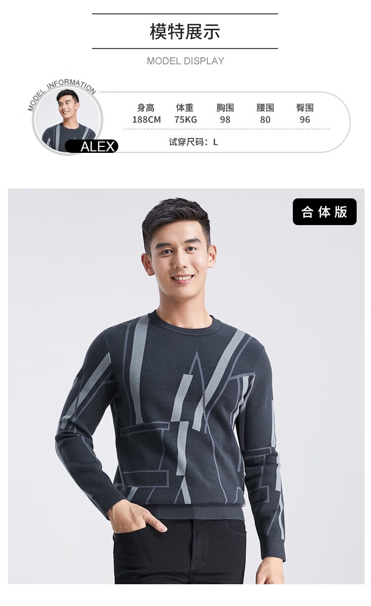 莱克斯顿卫衣男【商场同款】男装冬季新款【含羊毛】圆领舒适透气长袖男 深蓝 M