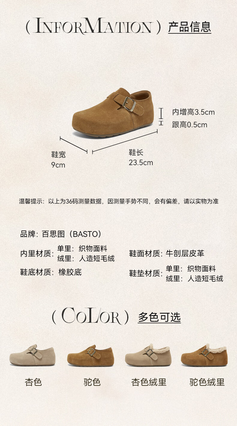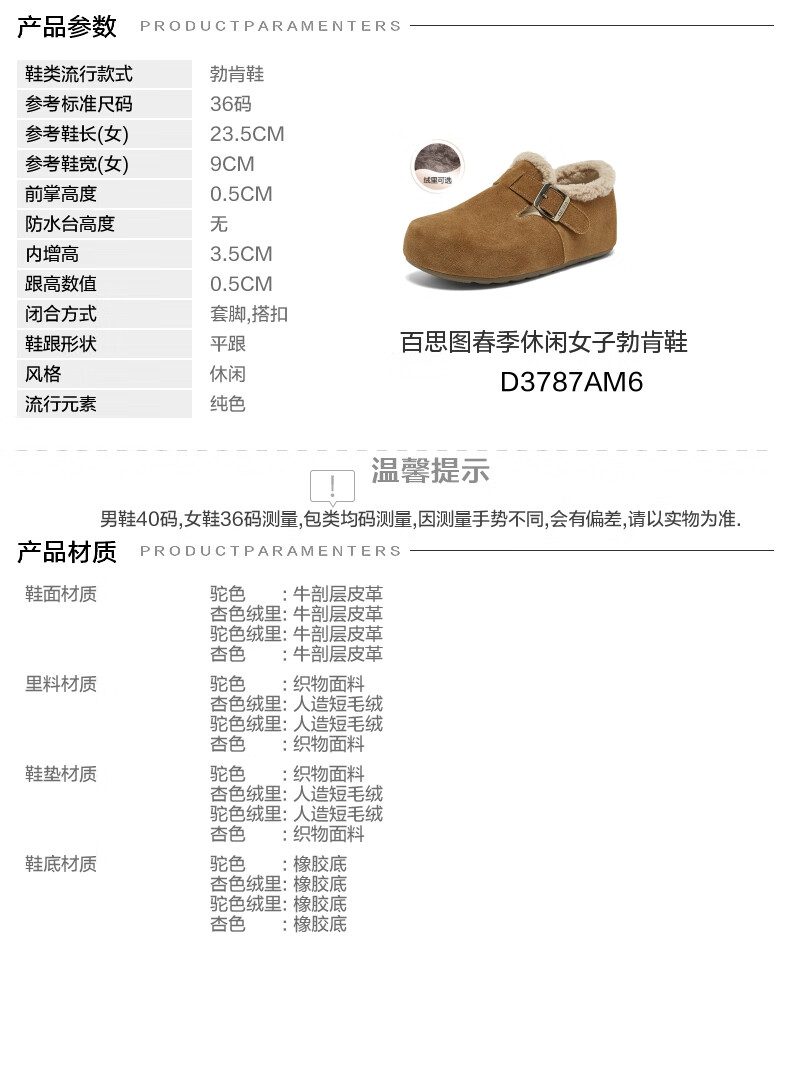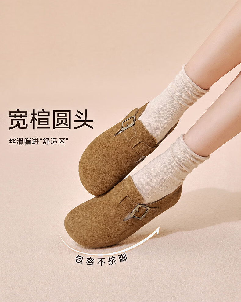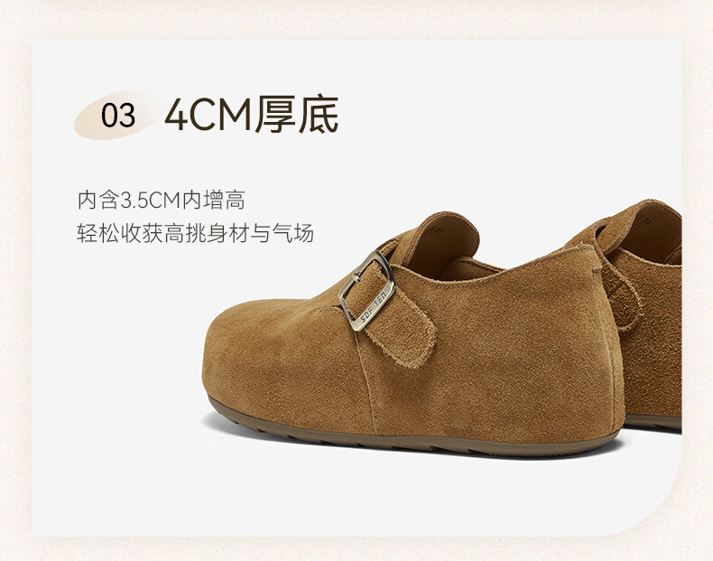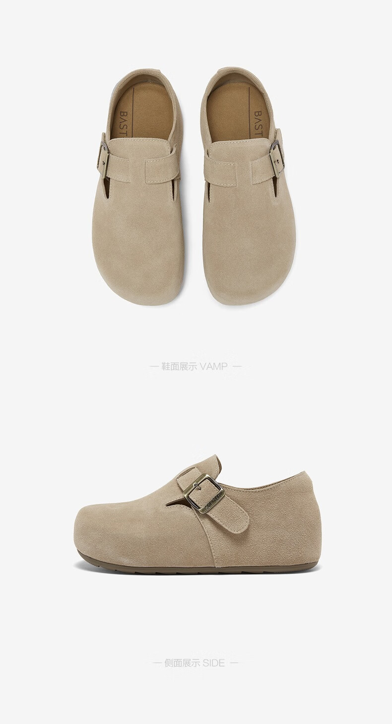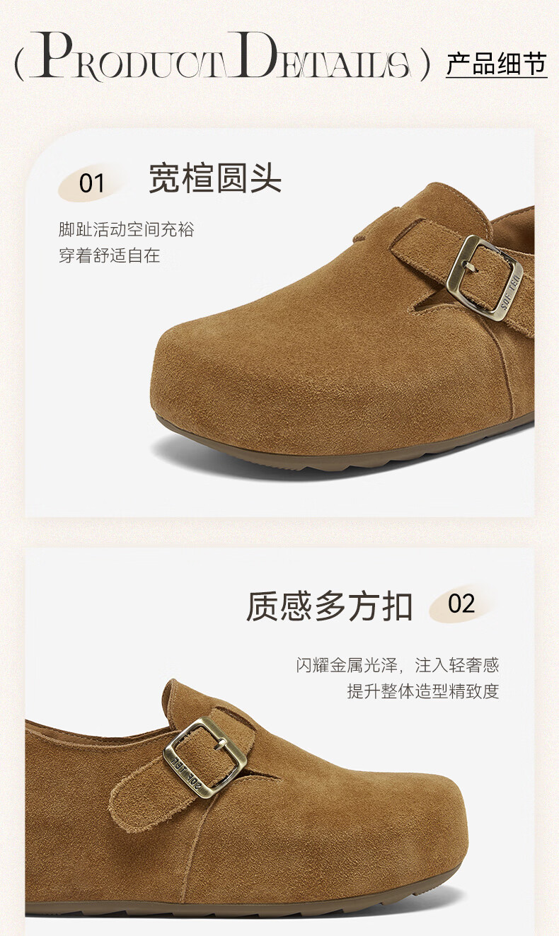 百思图26春厚底勃肯鞋休闲一脚蹬女懒人单鞋D3787AM6 杏色 37