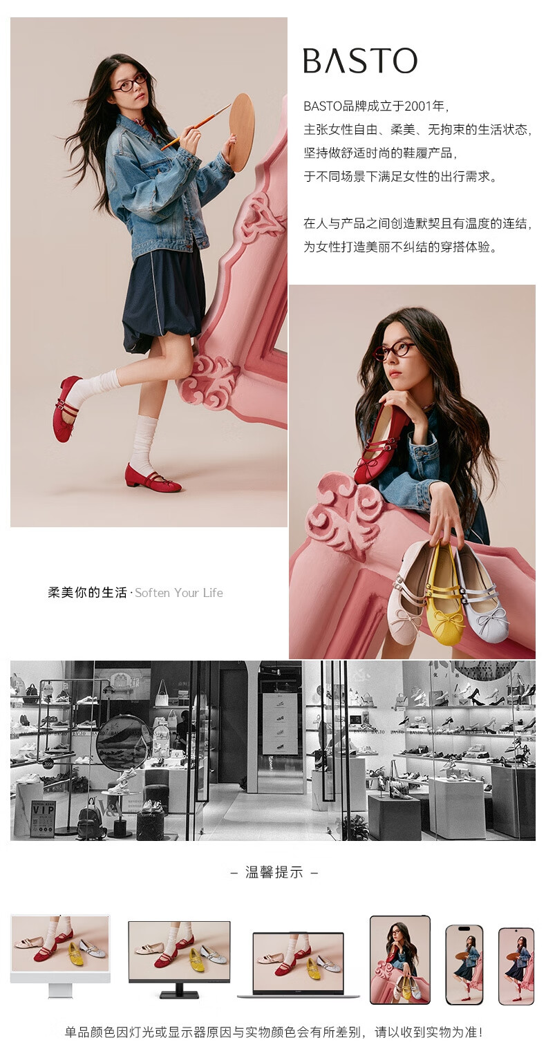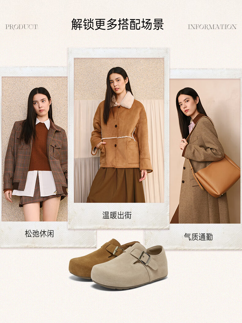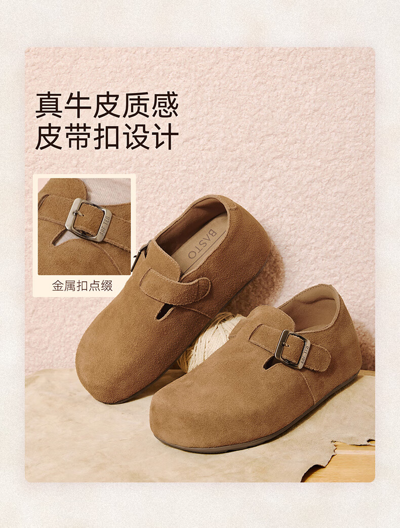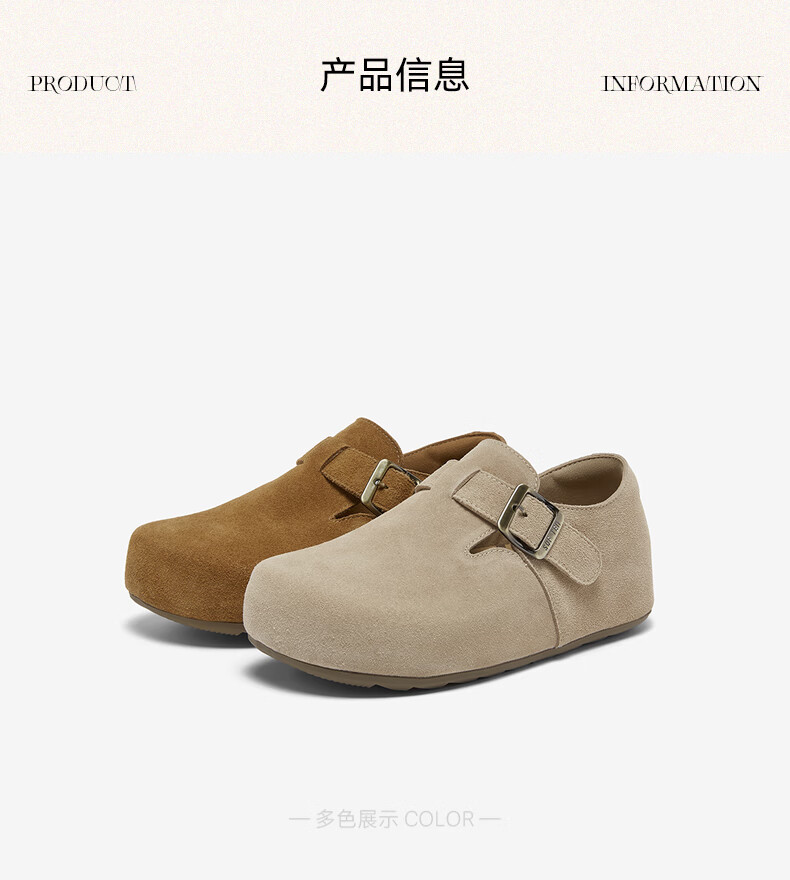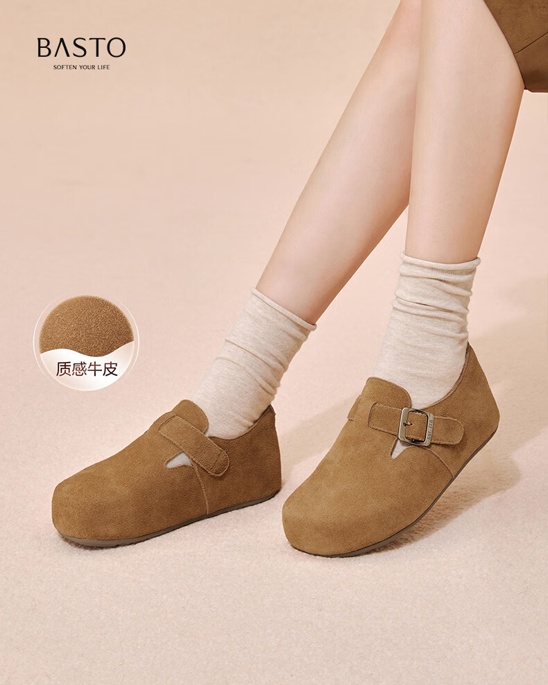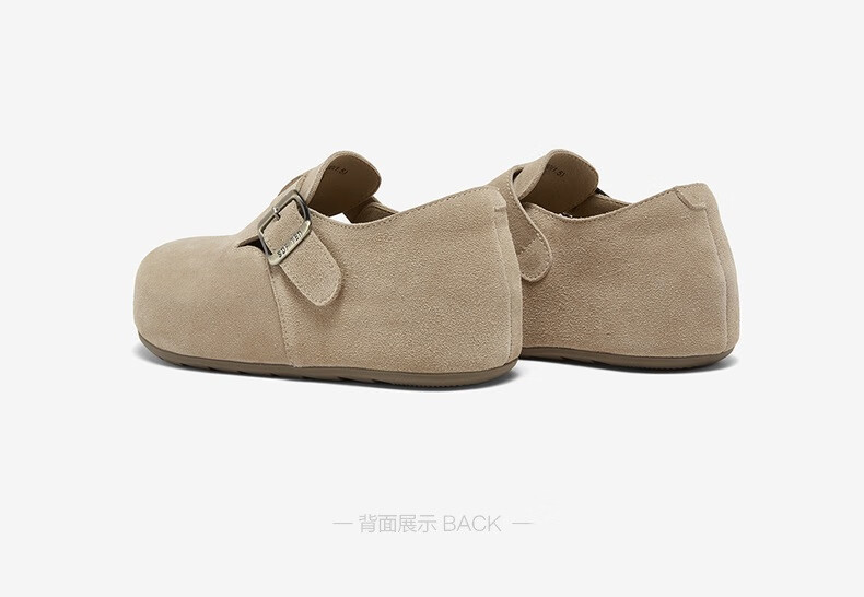 百思图26春厚底勃肯鞋休闲一脚蹬女懒人单鞋D3787AM6 杏色 37