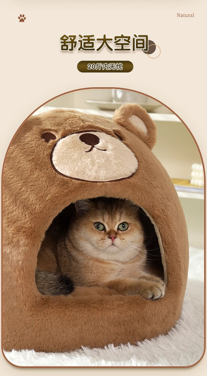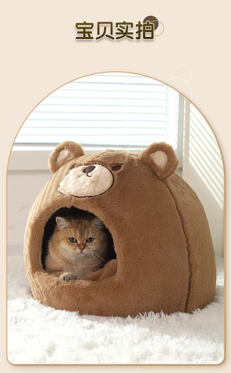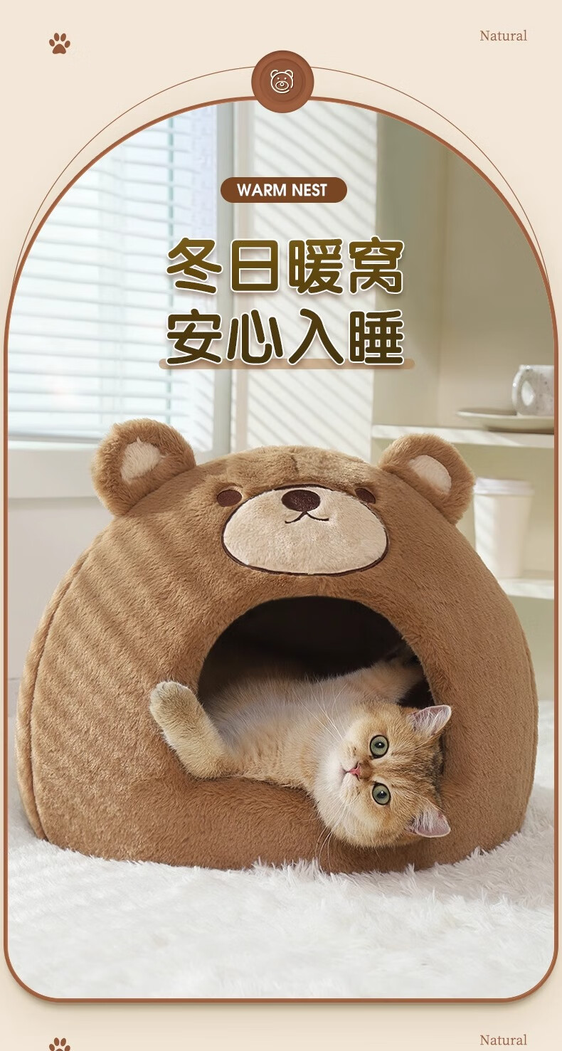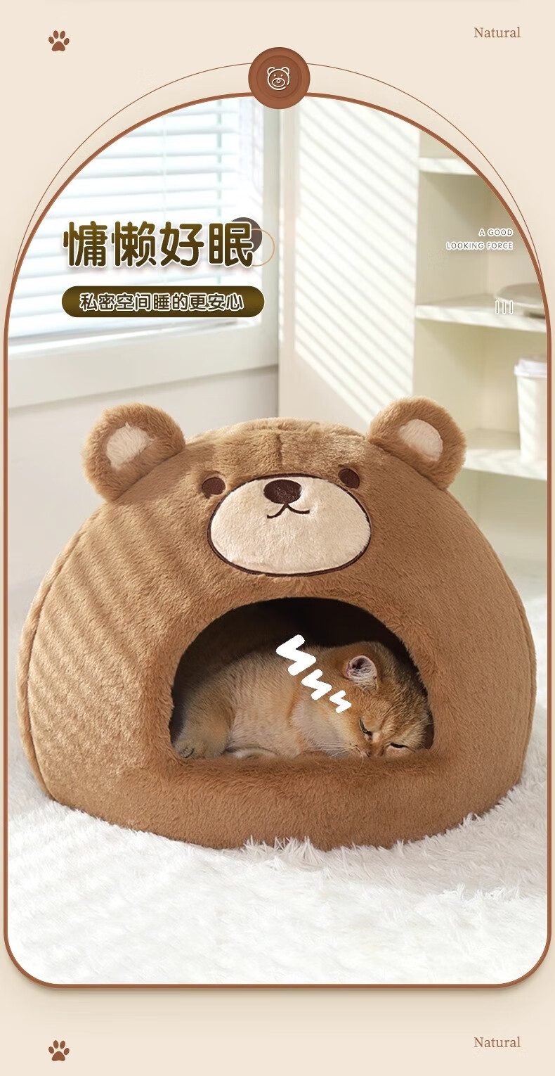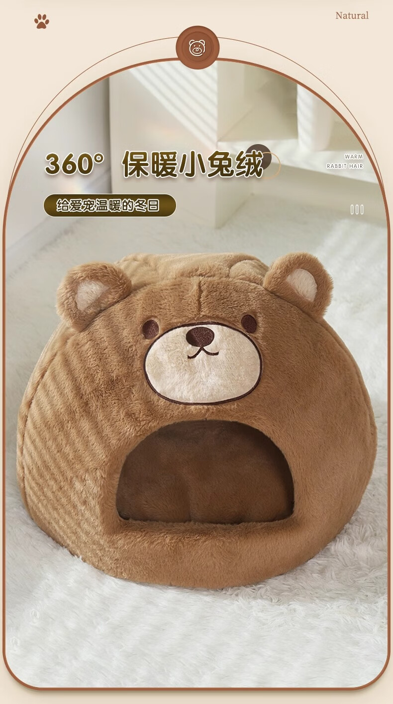 瓜洲牧猫窝四季通用封闭式猫屋别墅猫房子可拆洗狗窝冬天保暖猫咪狗狗窝 小熊饼干【柔软舒适整窝不变形】 小号【33*30*32cm】建议7斤内宠物