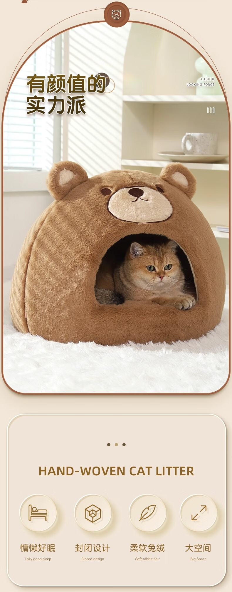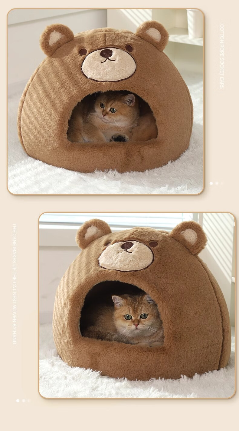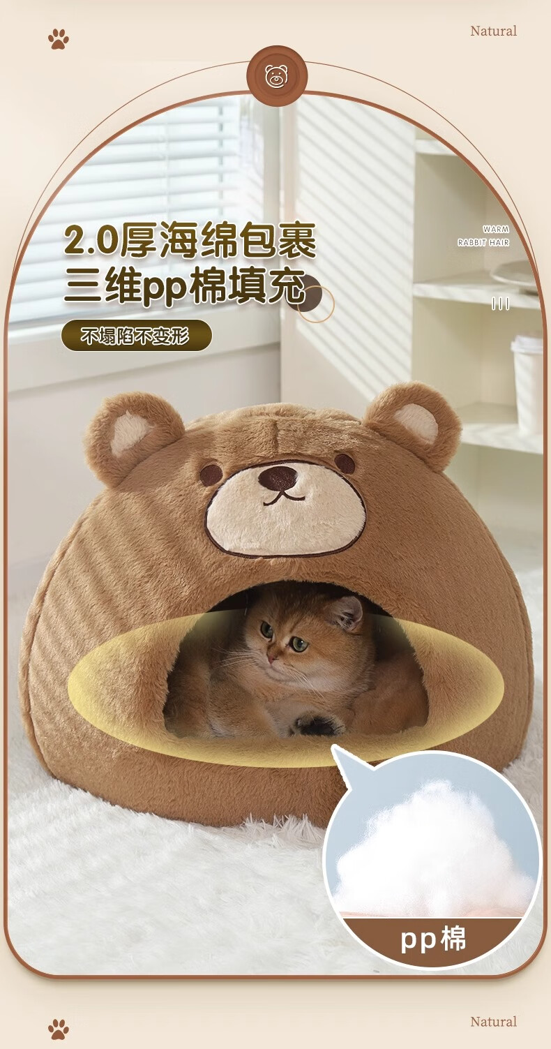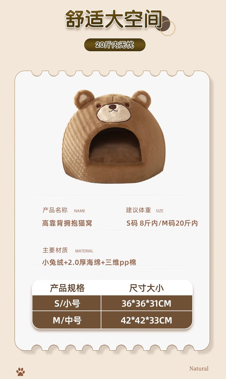 瓜洲牧猫窝四季通用封闭式猫屋别墅猫房子可拆洗狗窝冬天保暖猫咪狗狗窝 小熊饼干【柔软舒适整窝不变形】 小号【33*30*32cm】建议7斤内宠物