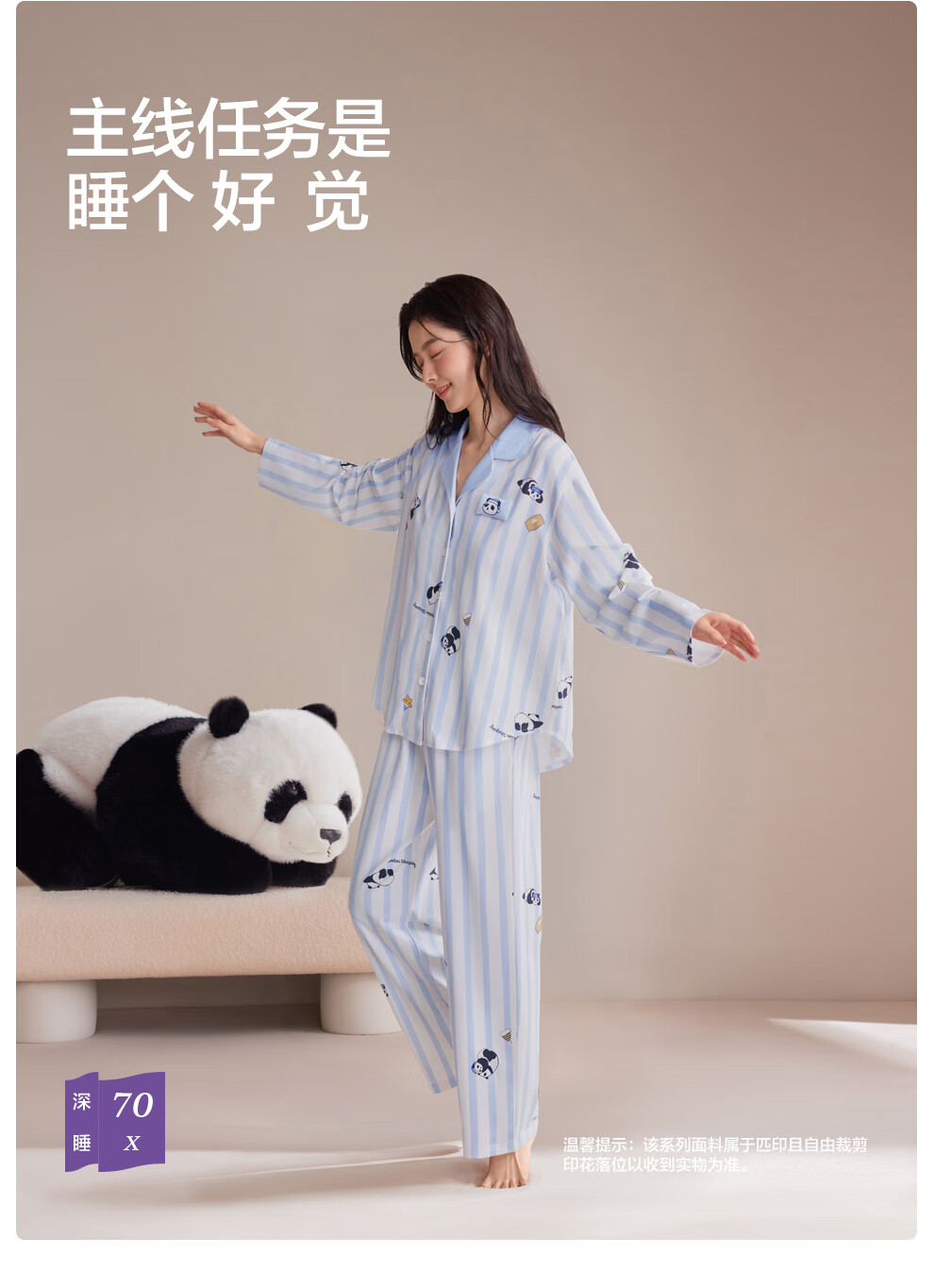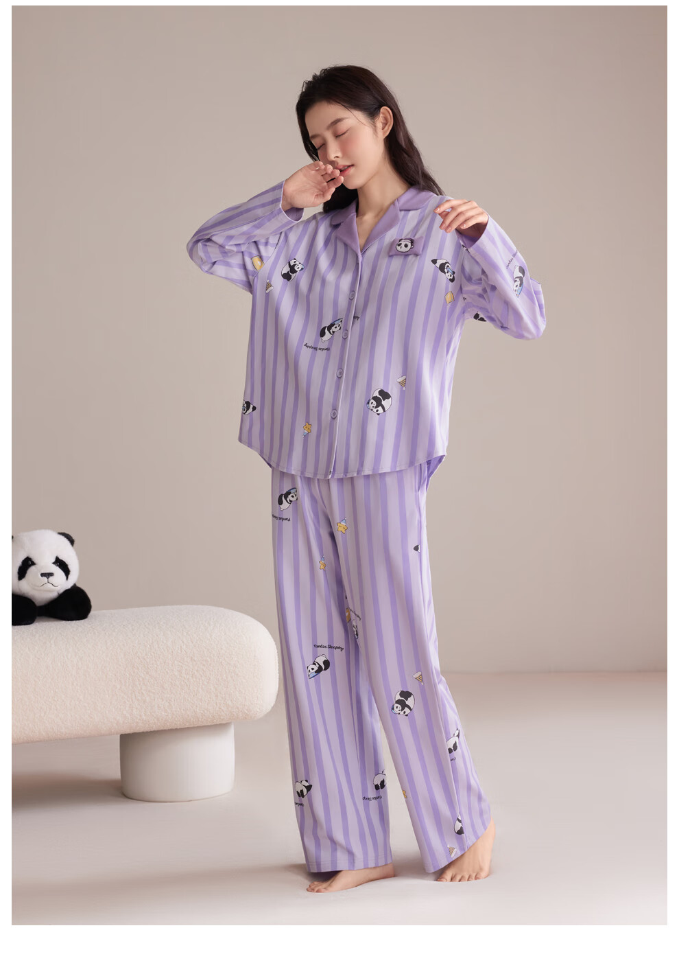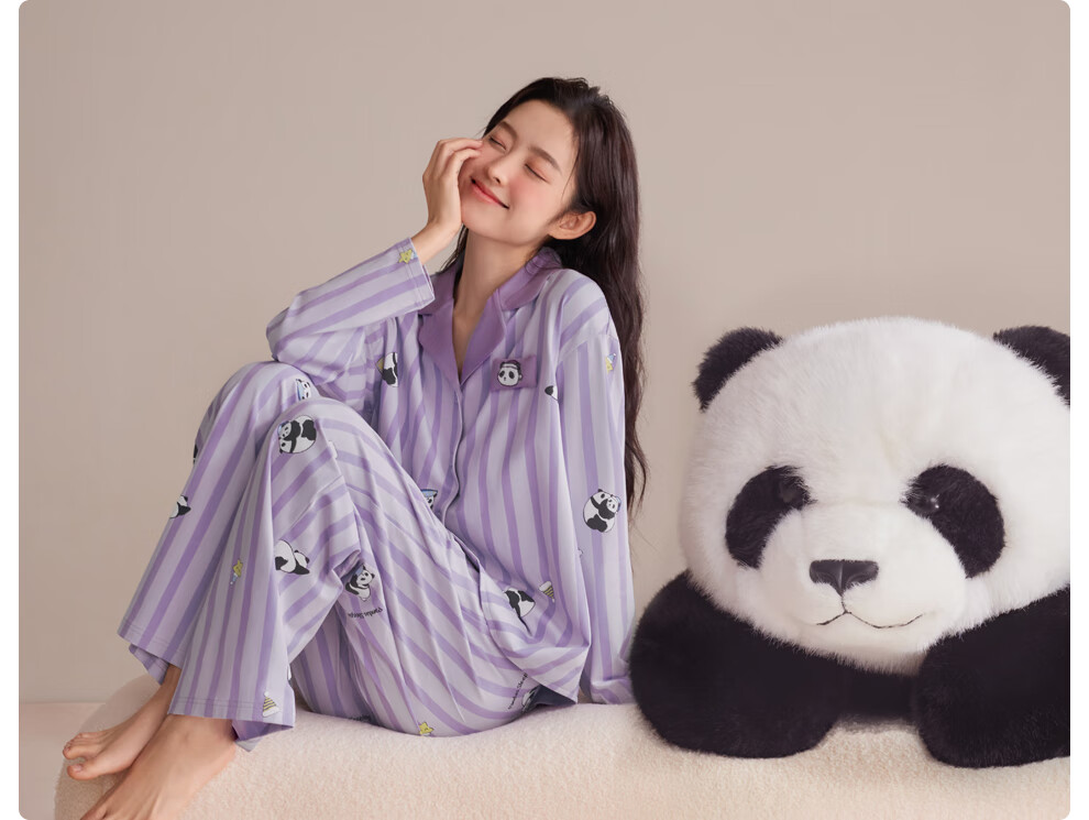 静韵【深睡衣70】超柔软高保水熊猫睡衣女春秋长袖家居服可爱套装