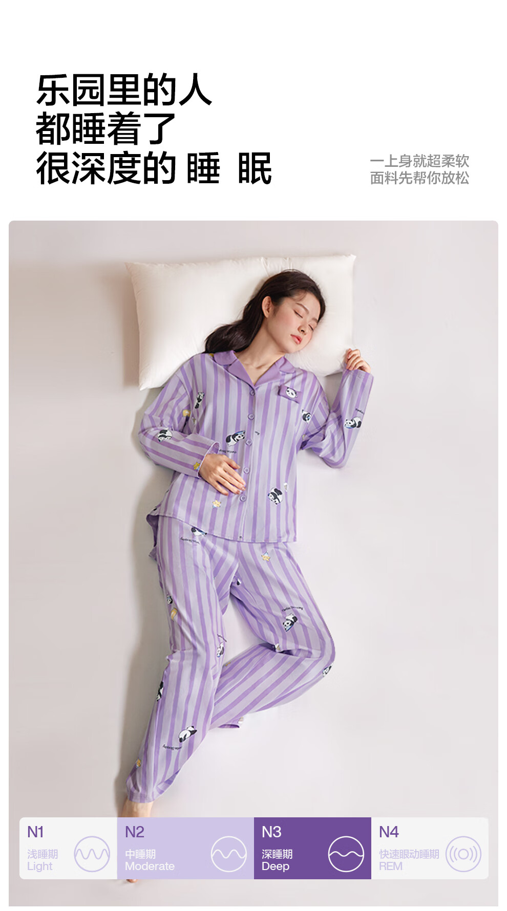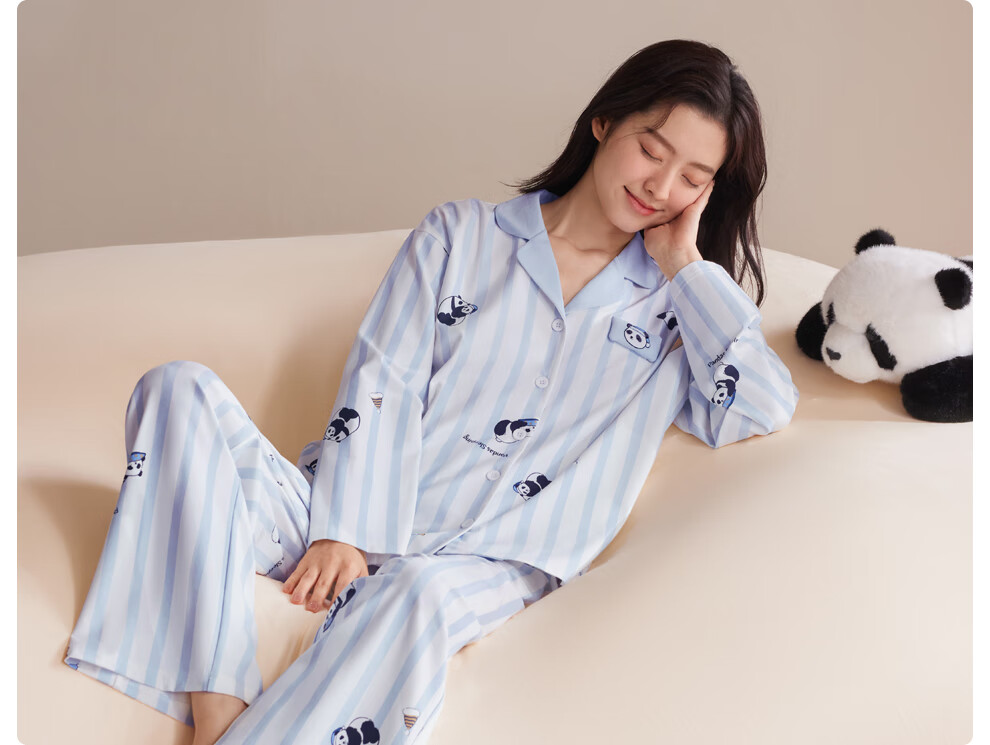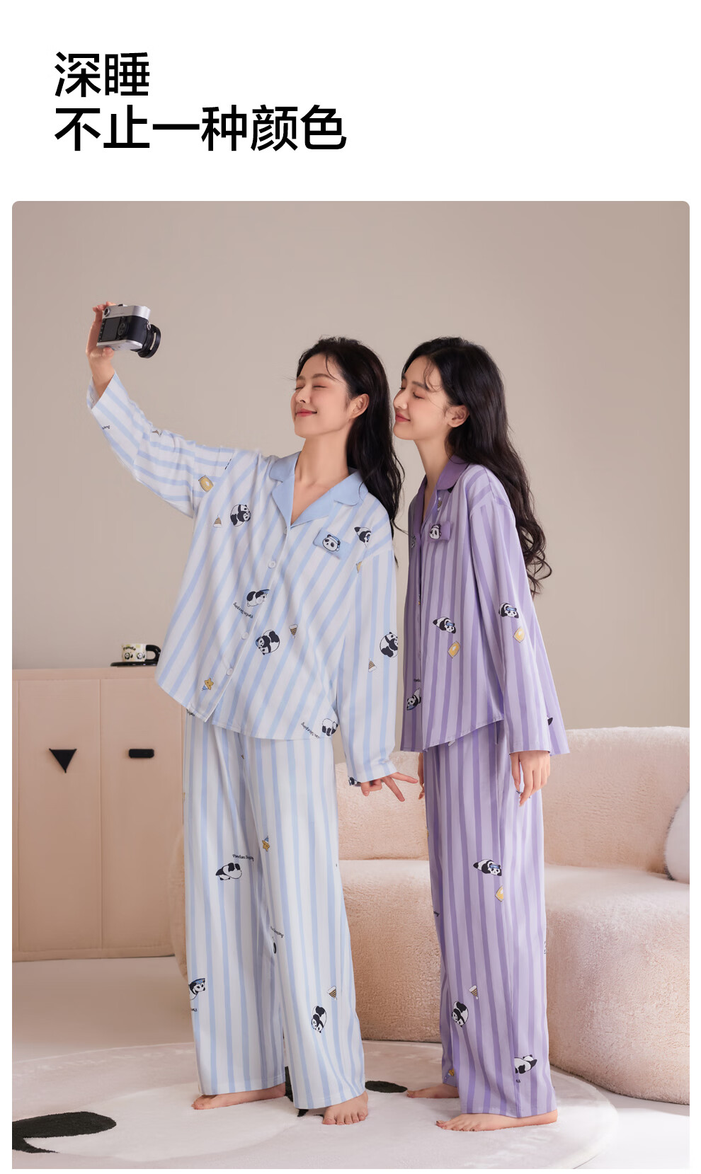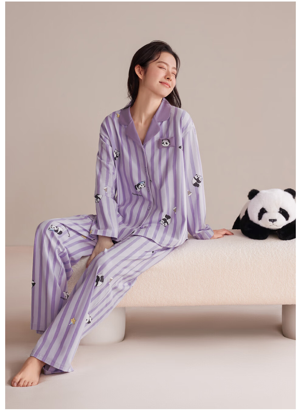 静韵【深睡衣70】超柔软高保水熊猫睡衣女春秋长袖家居服可爱套装