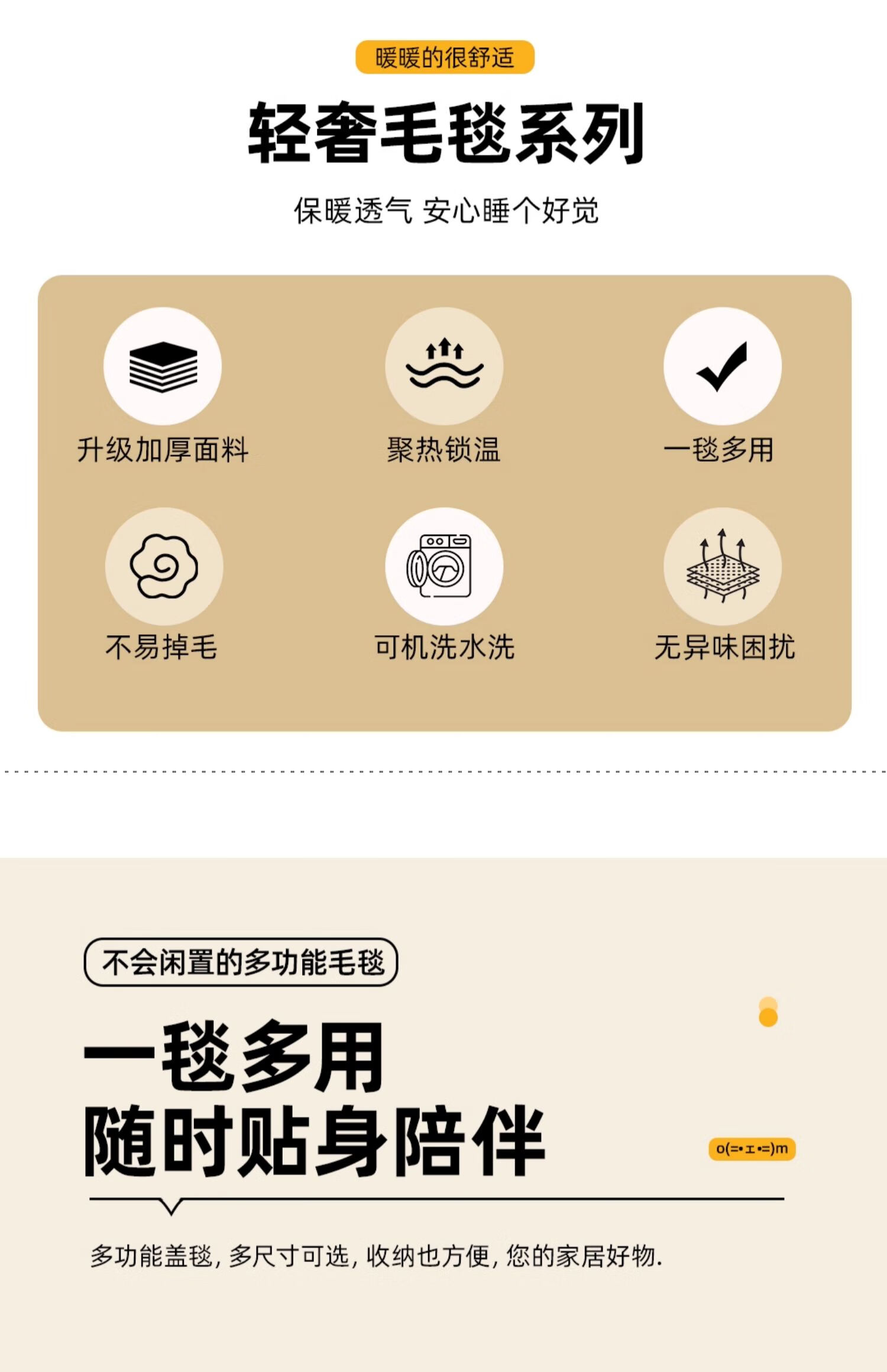 猫人(MiiOW)加厚珊瑚绒毯毛毯子 办公室羊羔绒午睡毯沙发盖毯午休牛奶绒毯 卡其 150*200cm【单人毯】