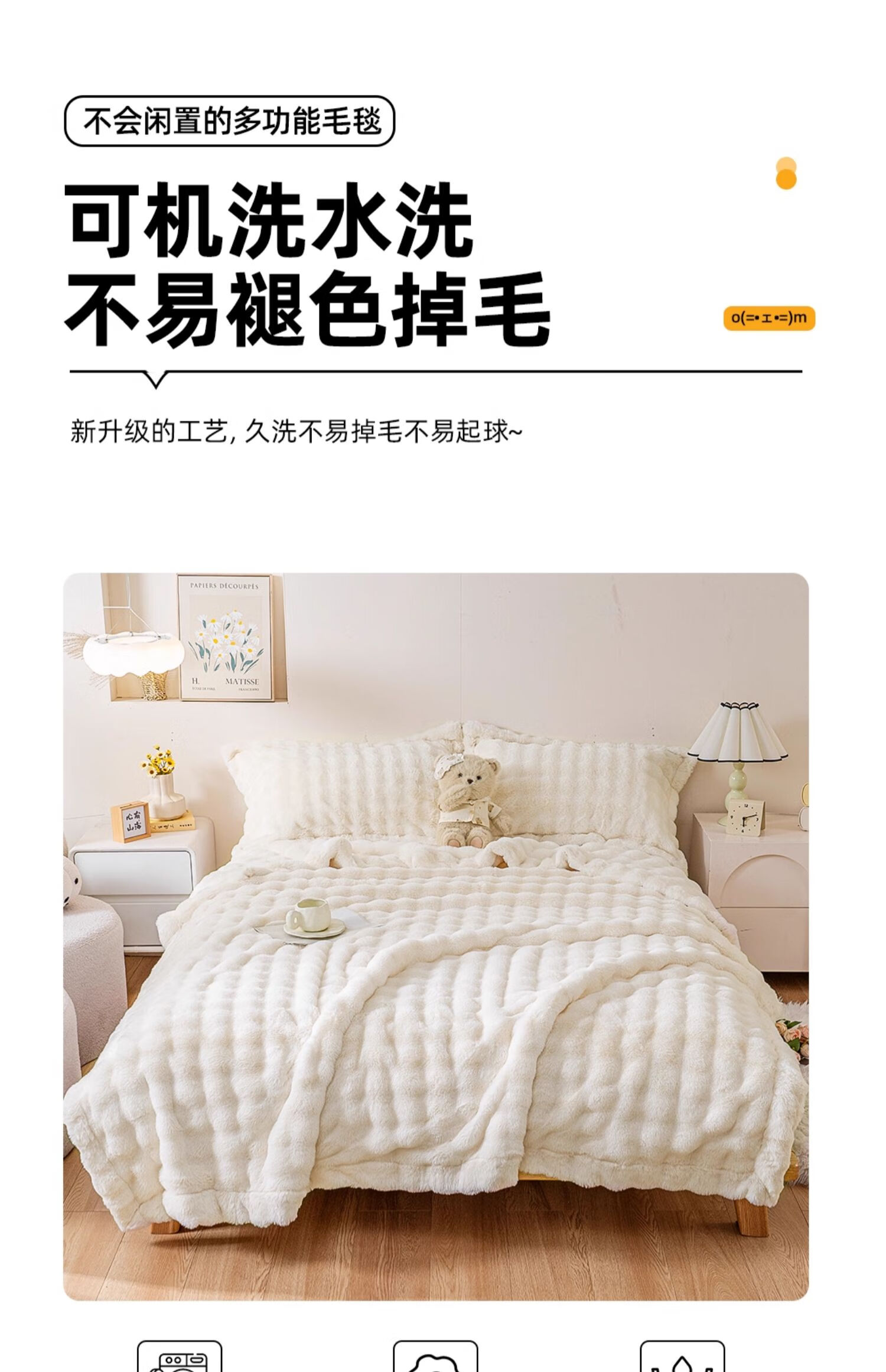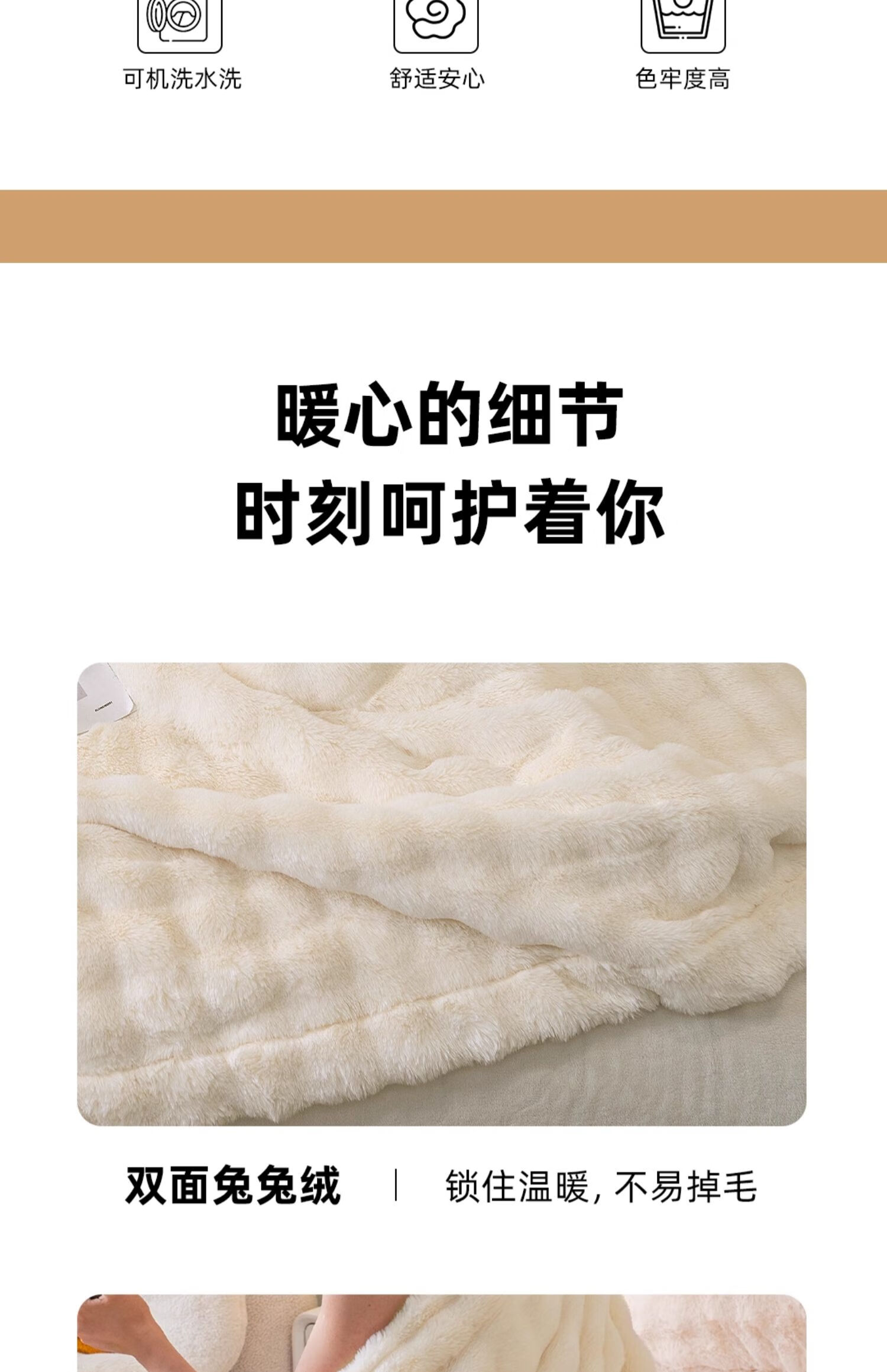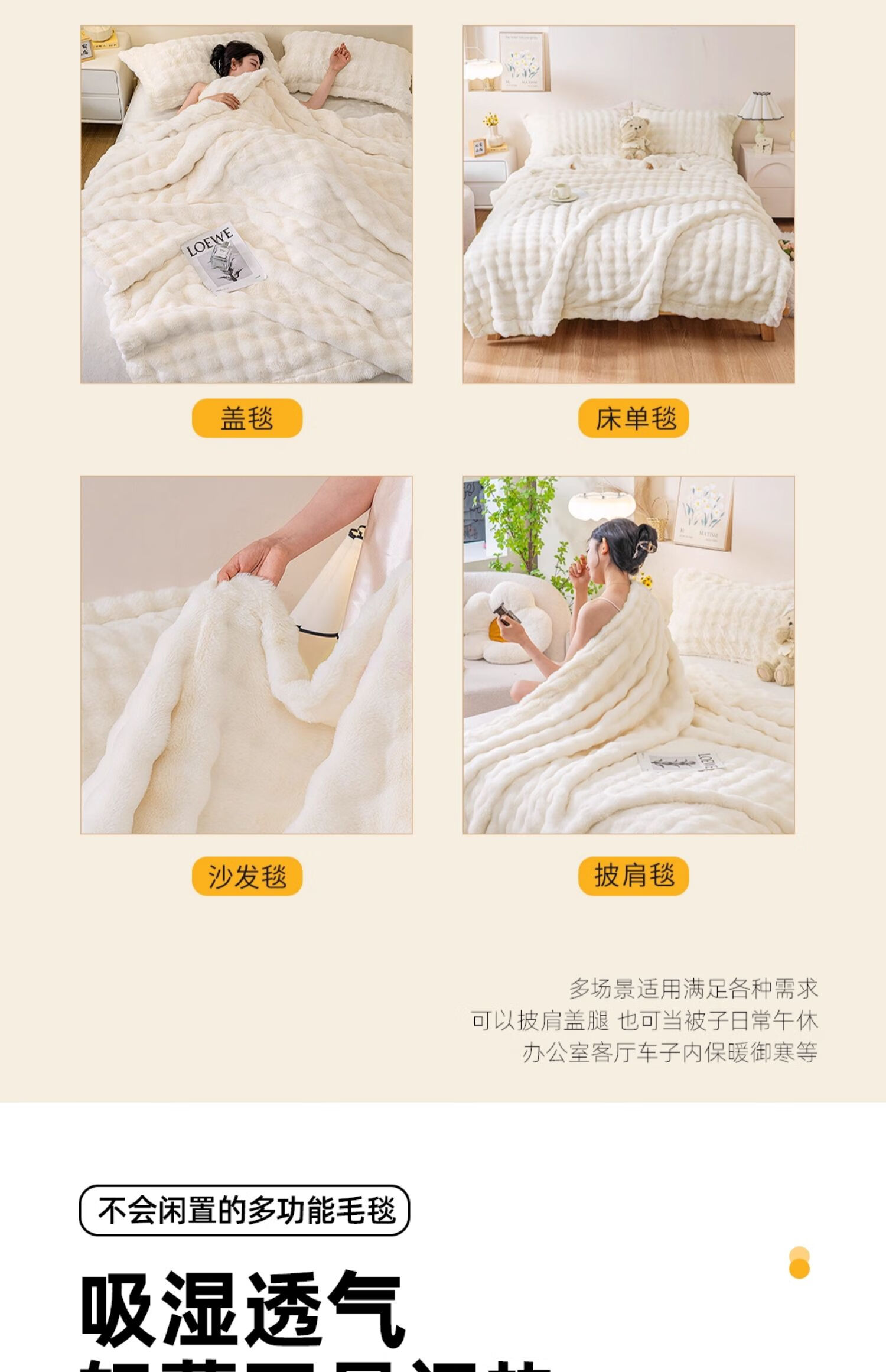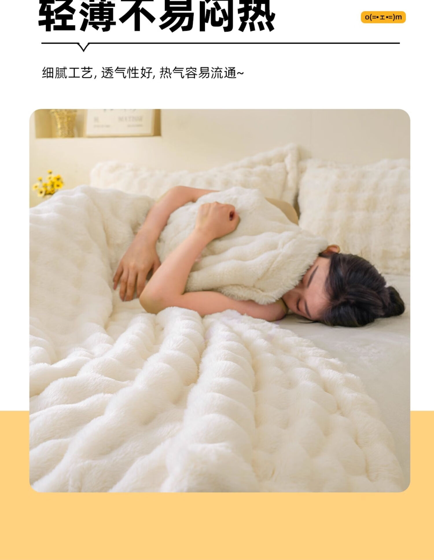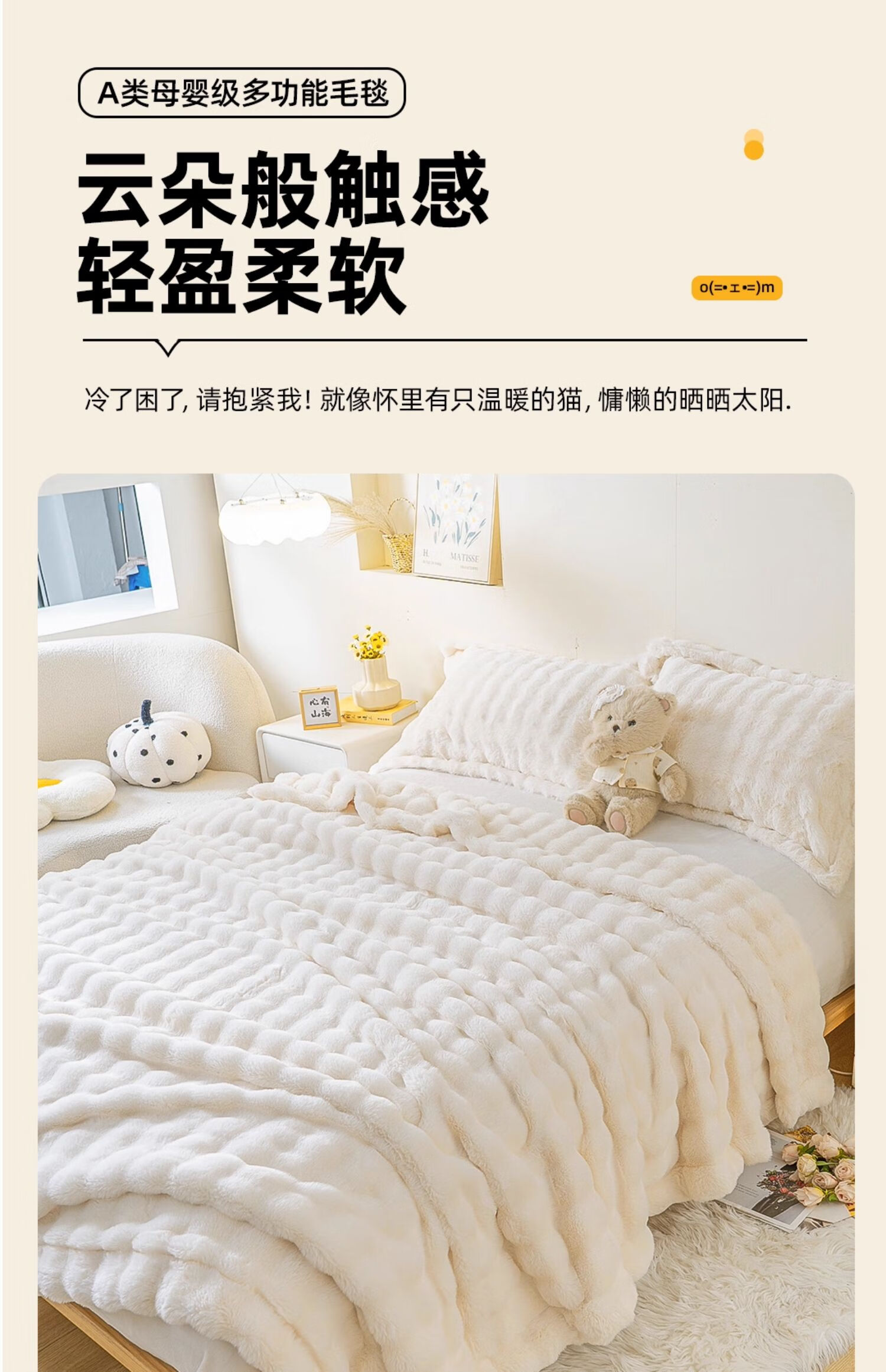 高睿毛毯子午睡空调盖毯沙发毯兔绒毛毯办公室午睡毯子四季通用床上用 加柔升级款-泡泡-半见白 1.0x1.5m