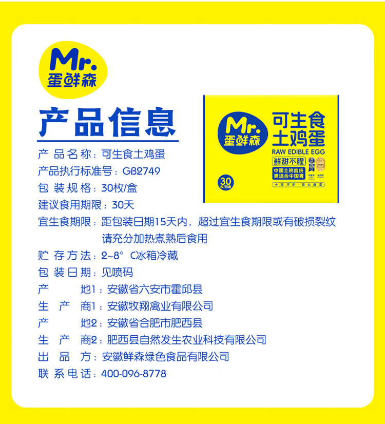 蛋鲜森 可生食土鸡蛋30枚礼盒装 无抗标准新鲜土鸡蛋 健康早餐优选