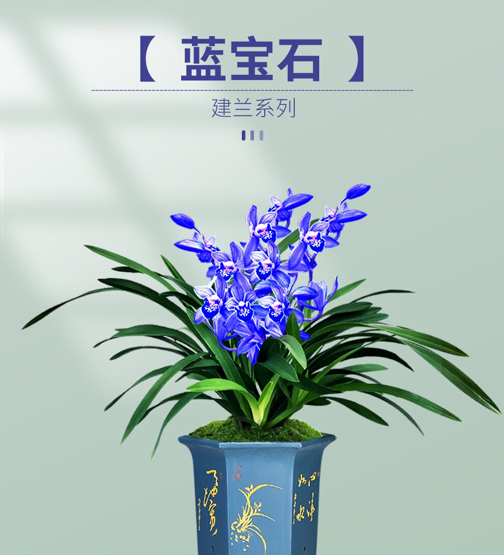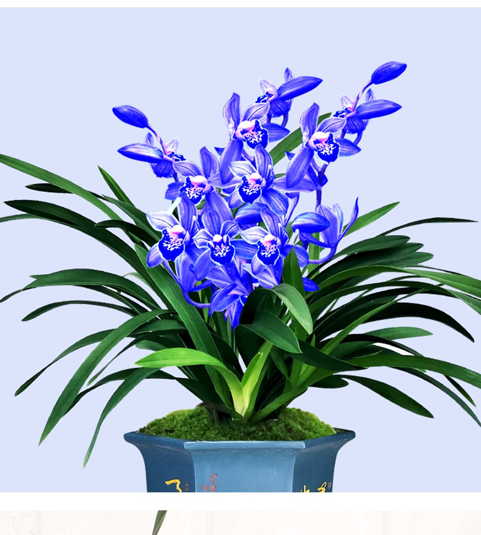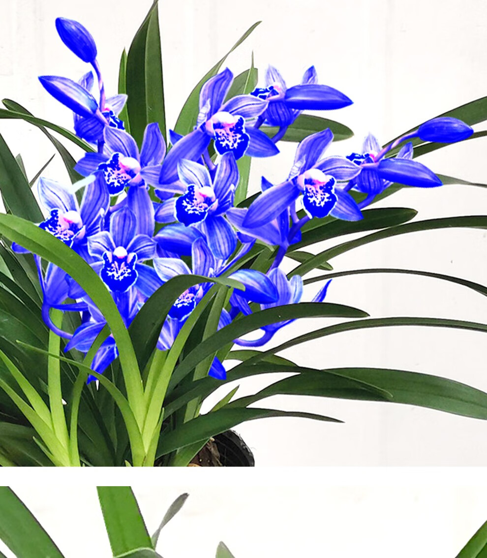 劉閣蘭花超香建兰四季兰当年开花壮苗满屋飘香室内四季常青花卉盆栽草 5苗连体【变异蓝宝石】带黑色兰盆