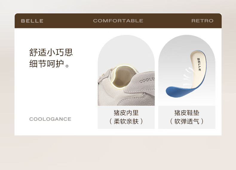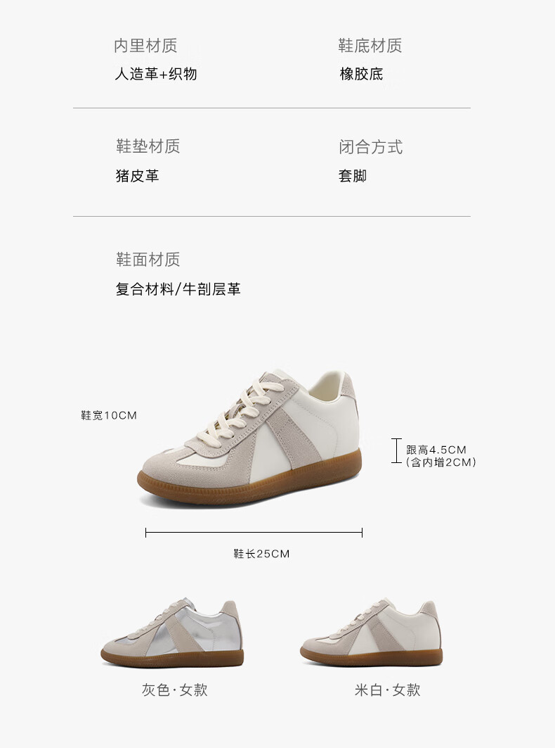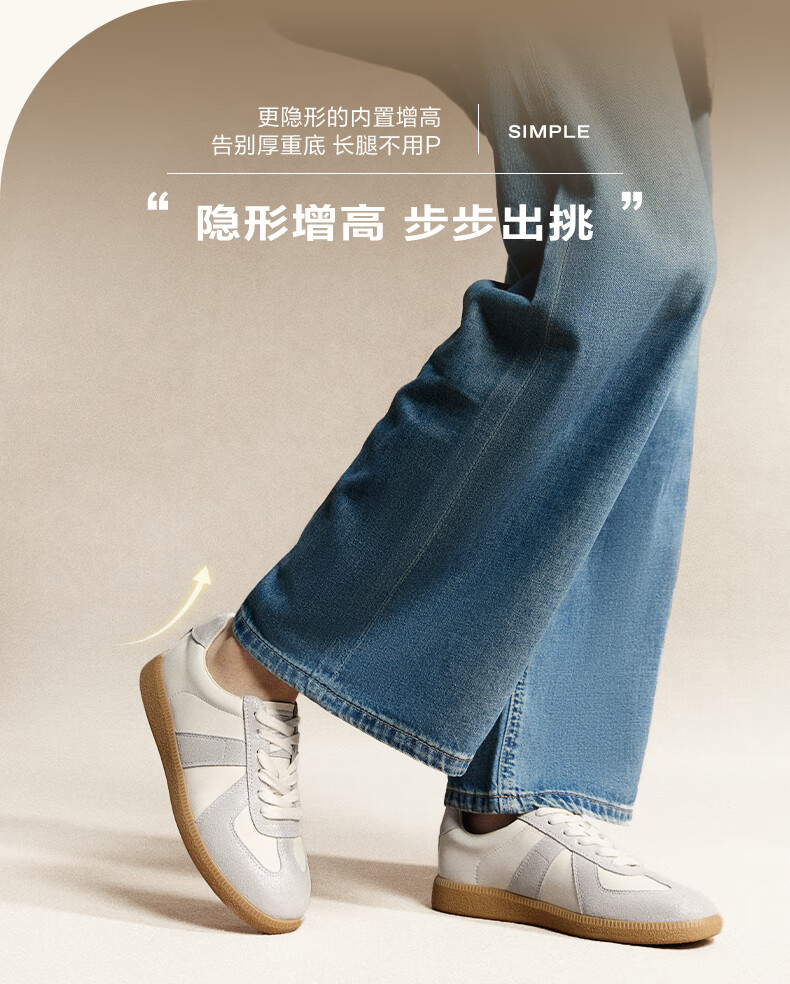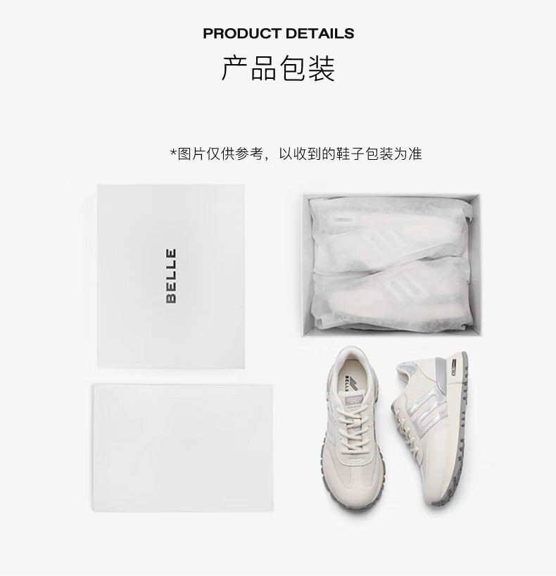 百丽(Belle)复古小金甘撞色跑道阿甘鞋女2026春新厚底增高运动休闲鞋F1N1DAM6 白色 39
