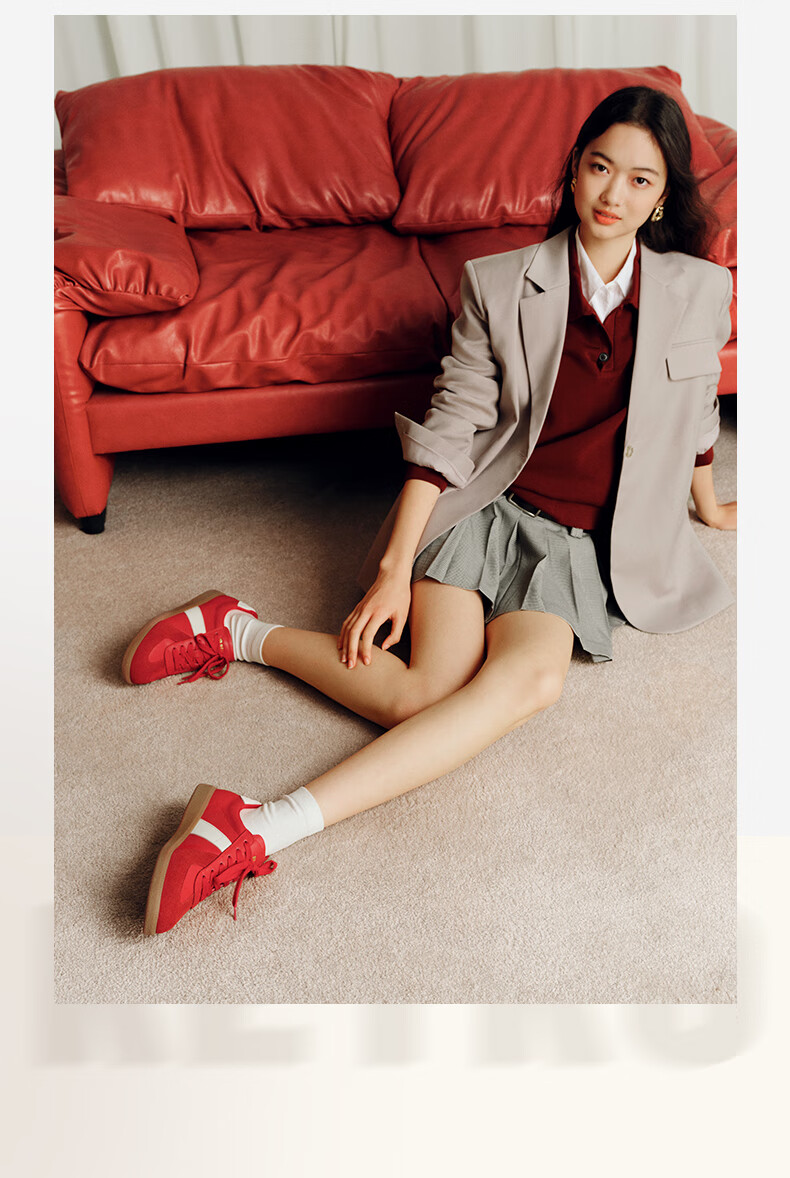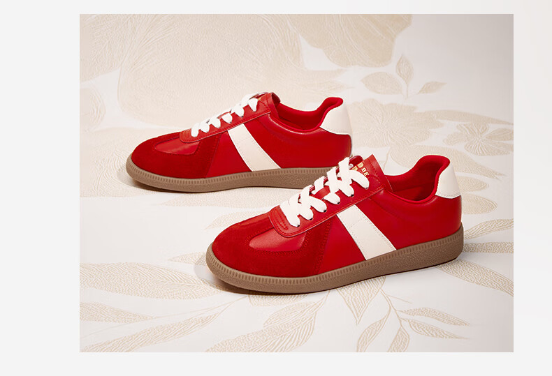 百丽(Belle)周雨彤董璇同款女彩虹豆德训鞋跑道阿甘鞋加绒休闲鞋D5R2DAM6 红色 38