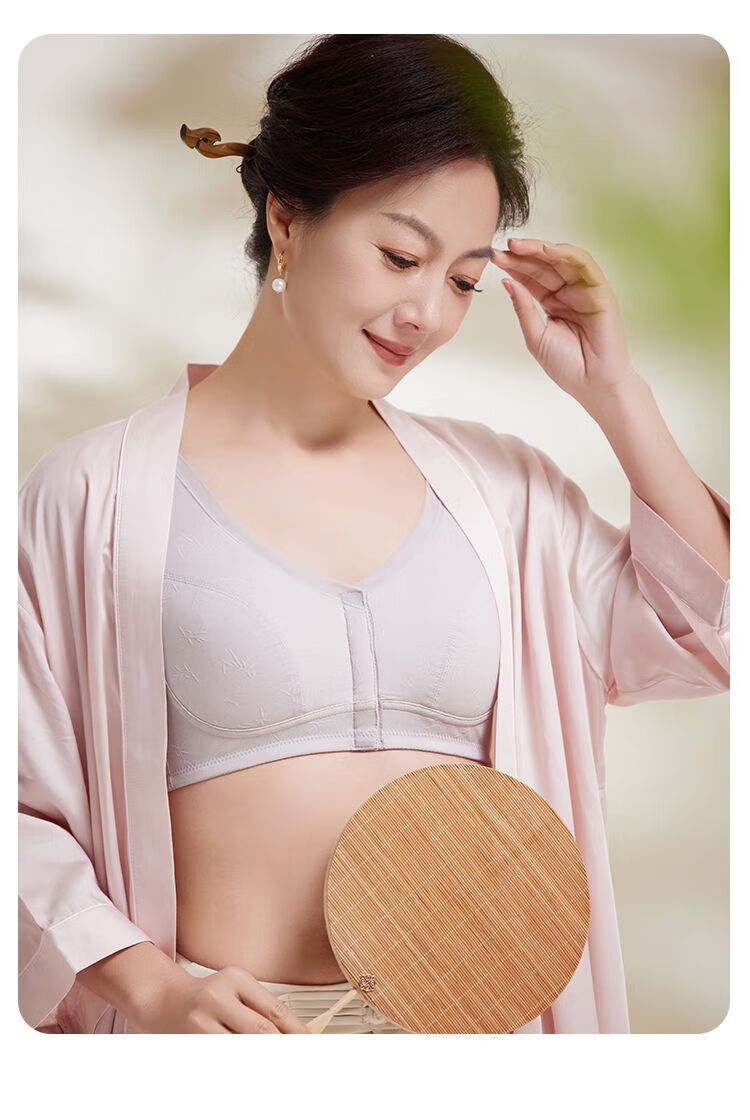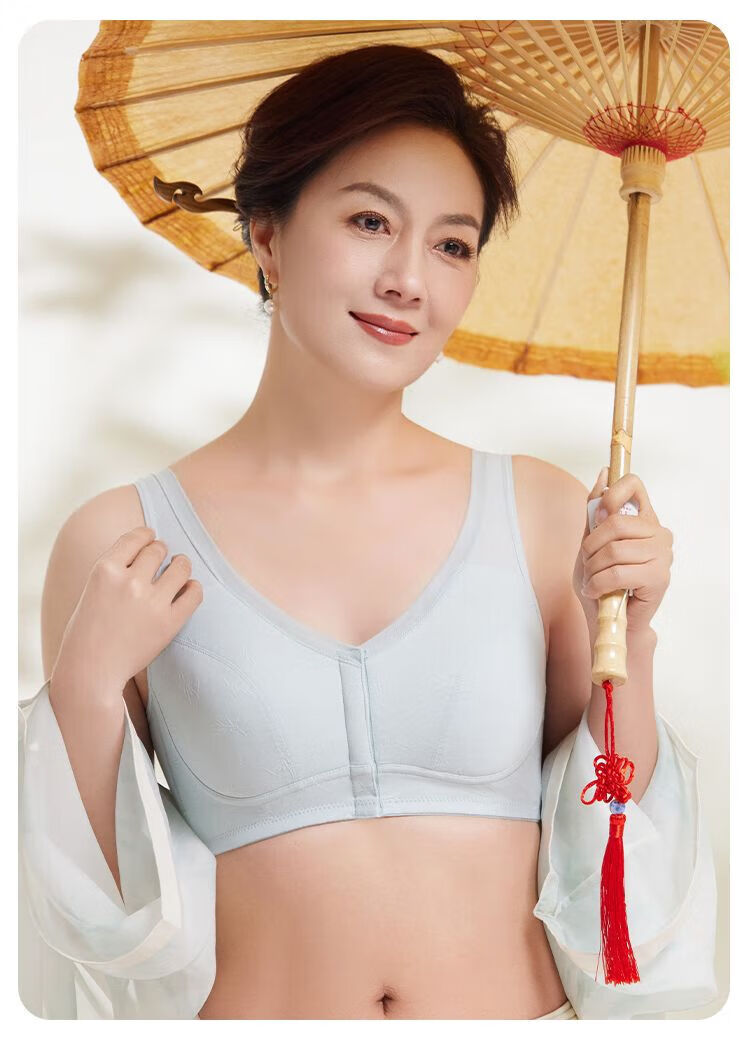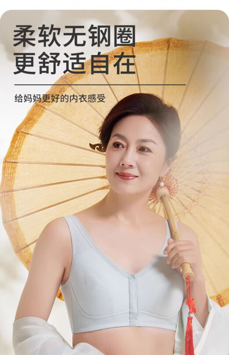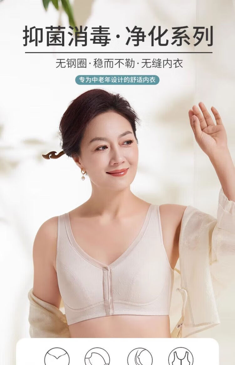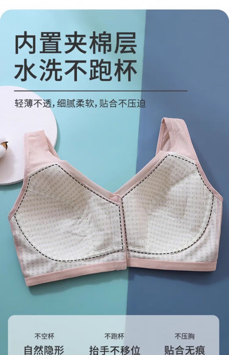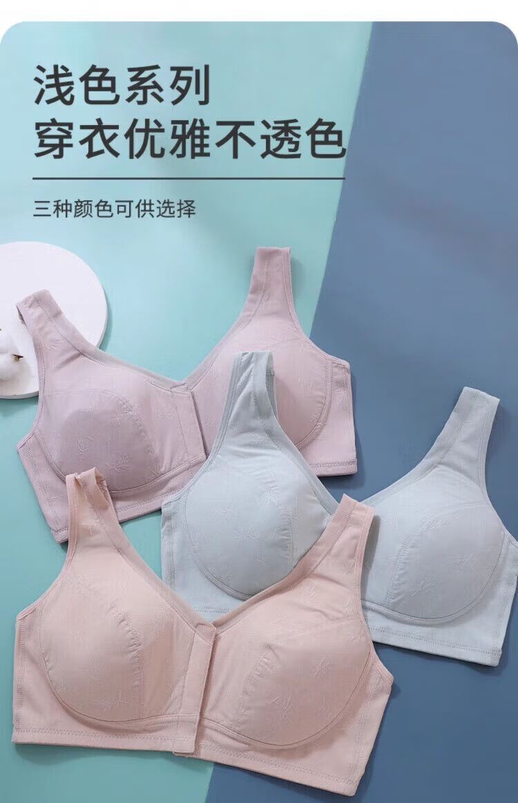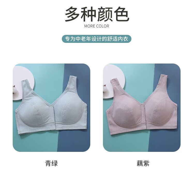 猫人(MiiOW)品牌母亲文胸前开扣中老年内衣女运动美背中年妇女背心老年人胸罩 青绿+奶茶 80C 36 【体重105-120斤】