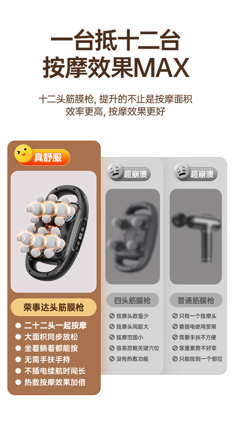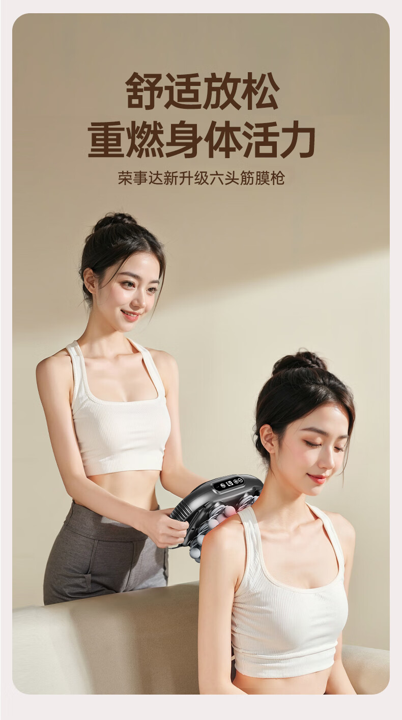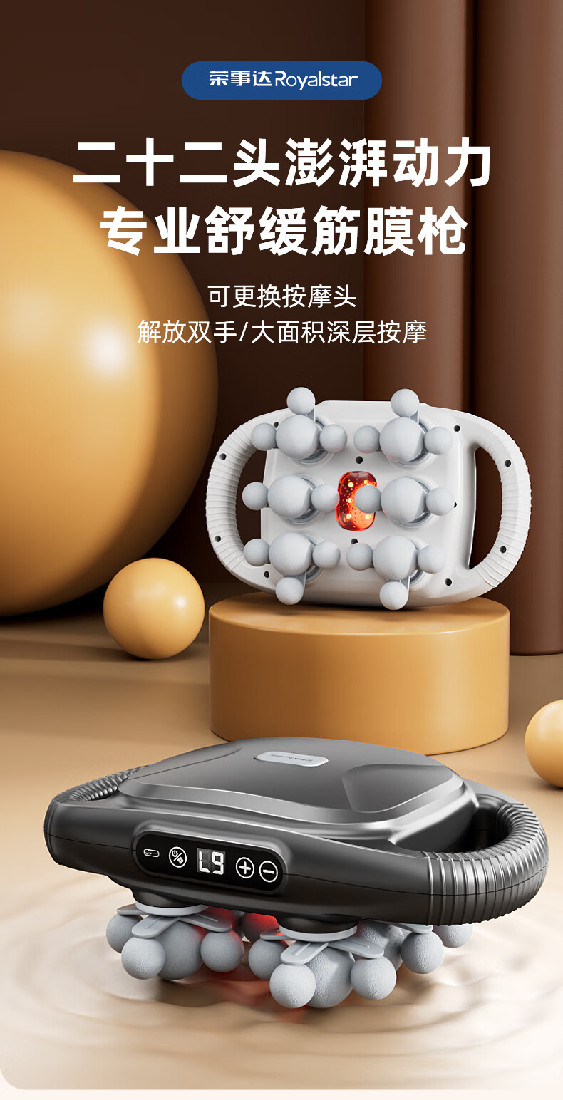 荣事达22头筋膜枪全自动揉捏全身按摩仪手持电动深层放松肌肉家用按摩器送父母长辈生日礼物 【至尊黑】12头仿真+液晶显示+持久续航+限定礼盒