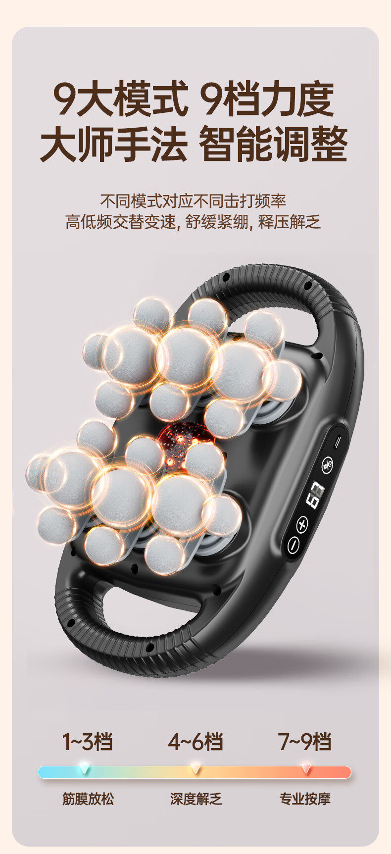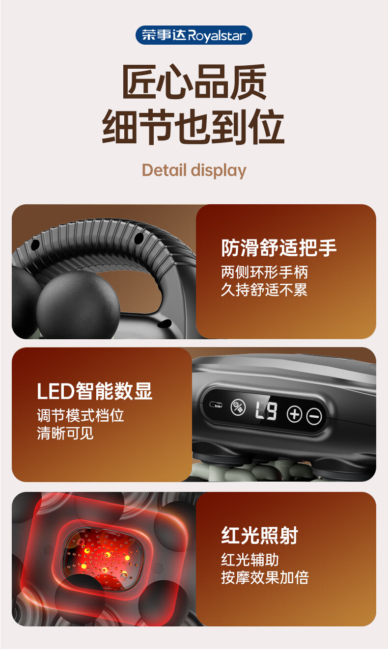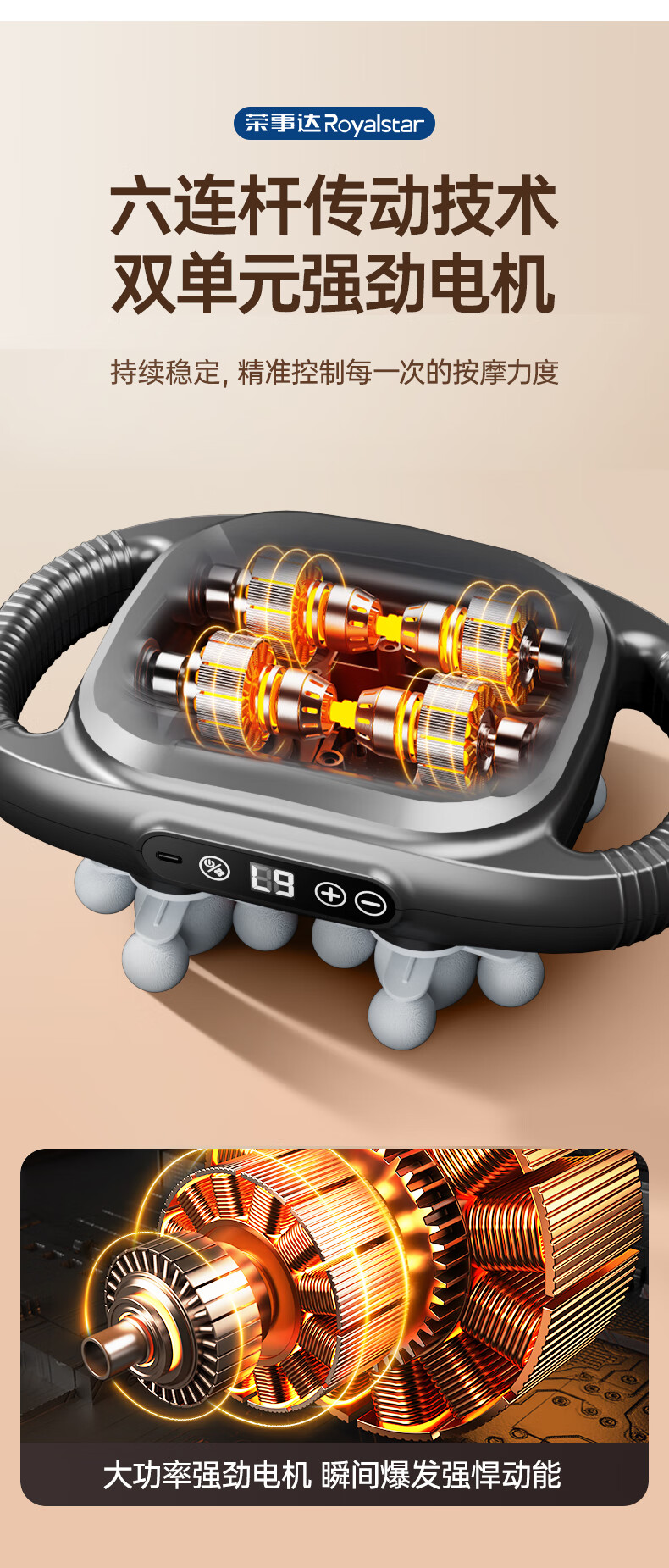 荣事达22头筋膜枪全自动揉捏全身按摩仪手持电动深层放松肌肉家用按摩器送父母长辈生日礼物 【至尊黑】12头仿真+液晶显示+持久续航+限定礼盒