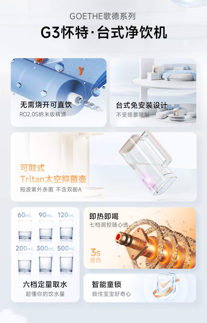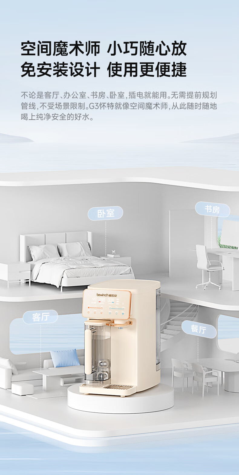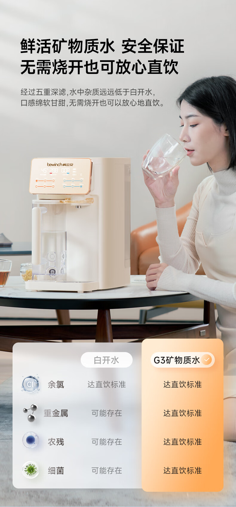 碧云泉G3矿物质RO反渗透净水器小型台式即加热净化家用直饮免安装一体机过滤0阻垢剂 G3-怀特:标准版(咨询客服领取优惠) 4.5L
