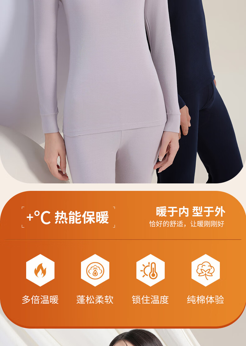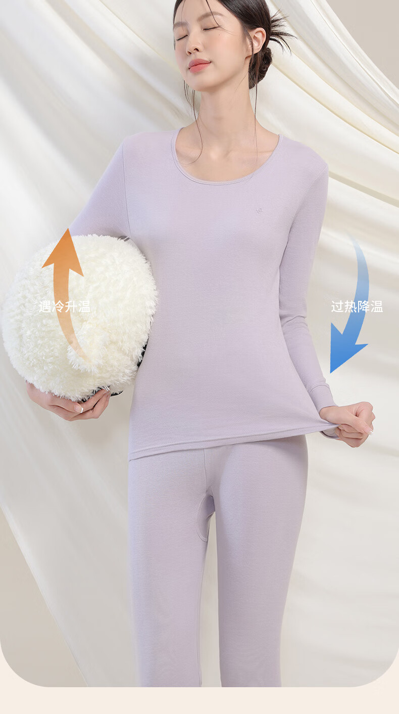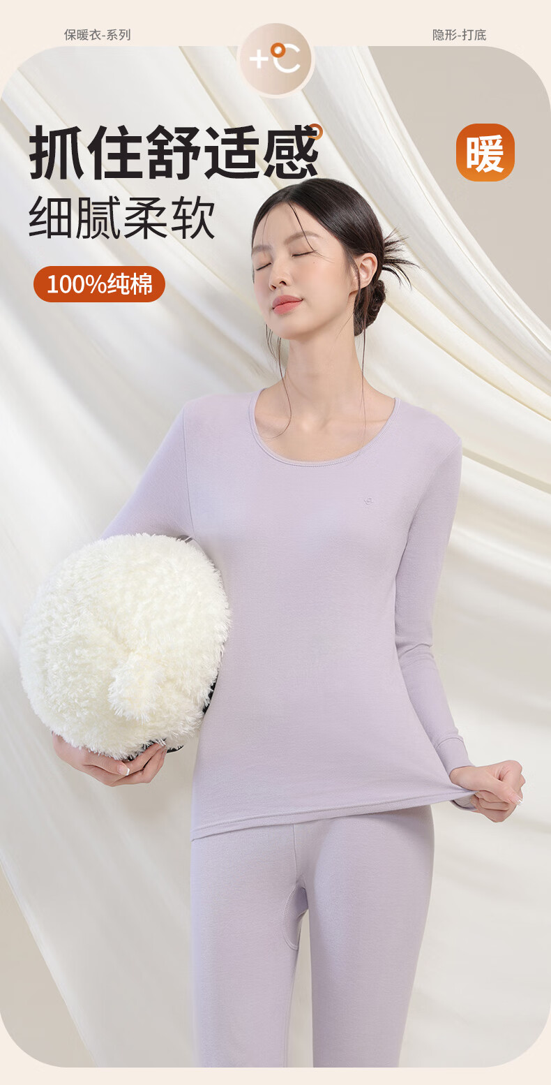 洁丽雅 GRACE保暖内衣女士内衣秋衣秋裤纯棉套装圆领薄款打底显瘦遮肉保暖套装 黑色 2XL