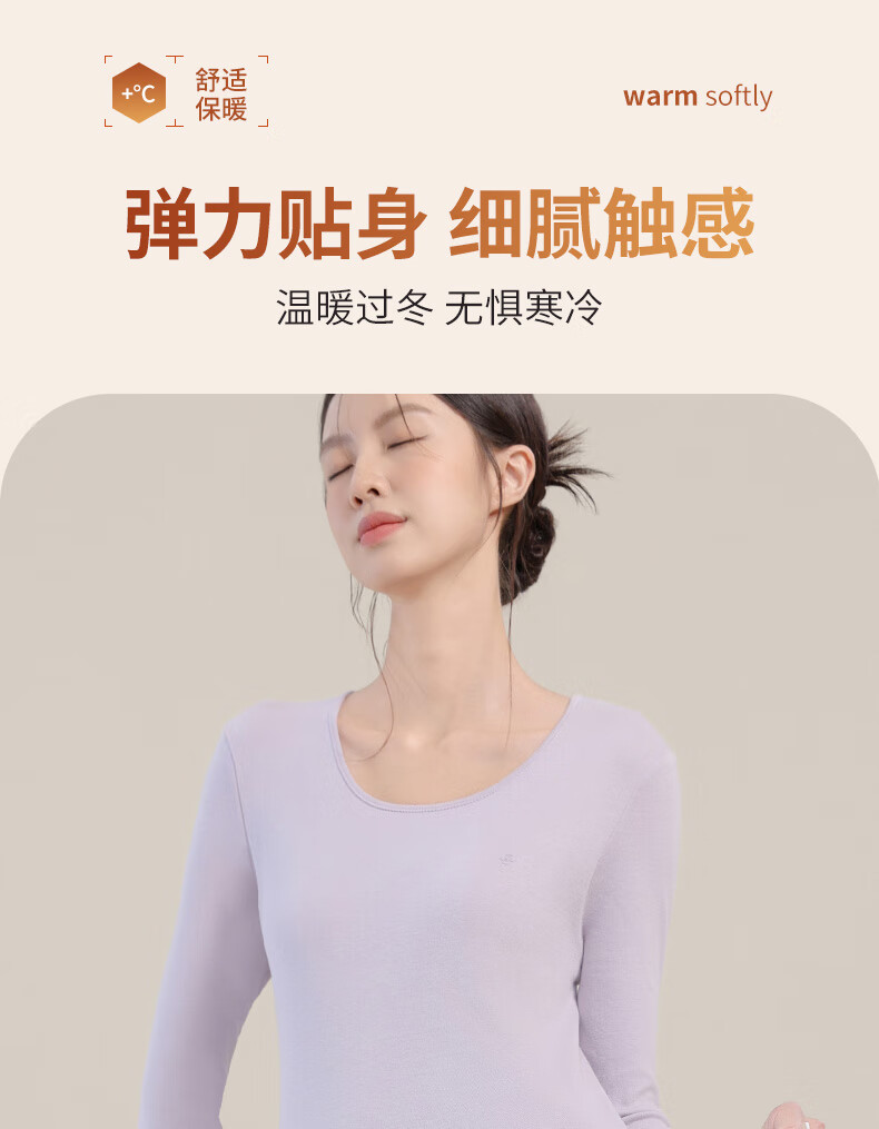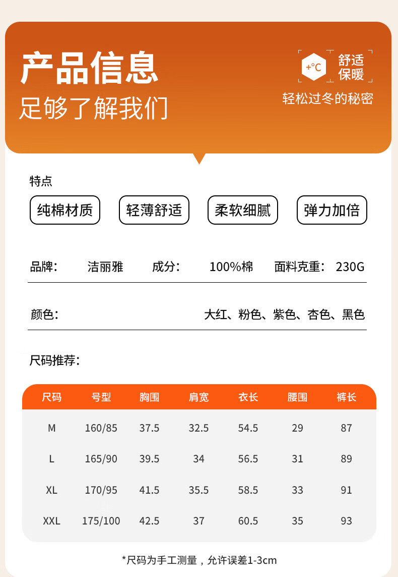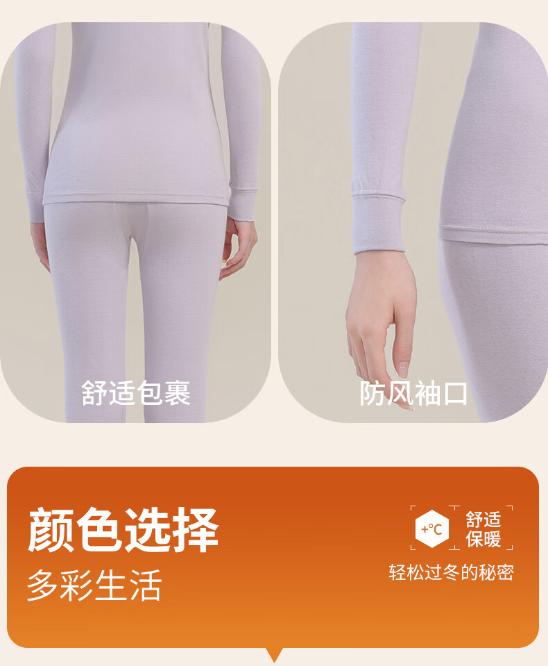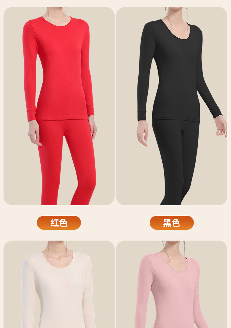 洁丽雅 GRACE保暖内衣女士内衣秋衣秋裤纯棉套装圆领薄款打底显瘦遮肉保暖套装 黑色 2XL