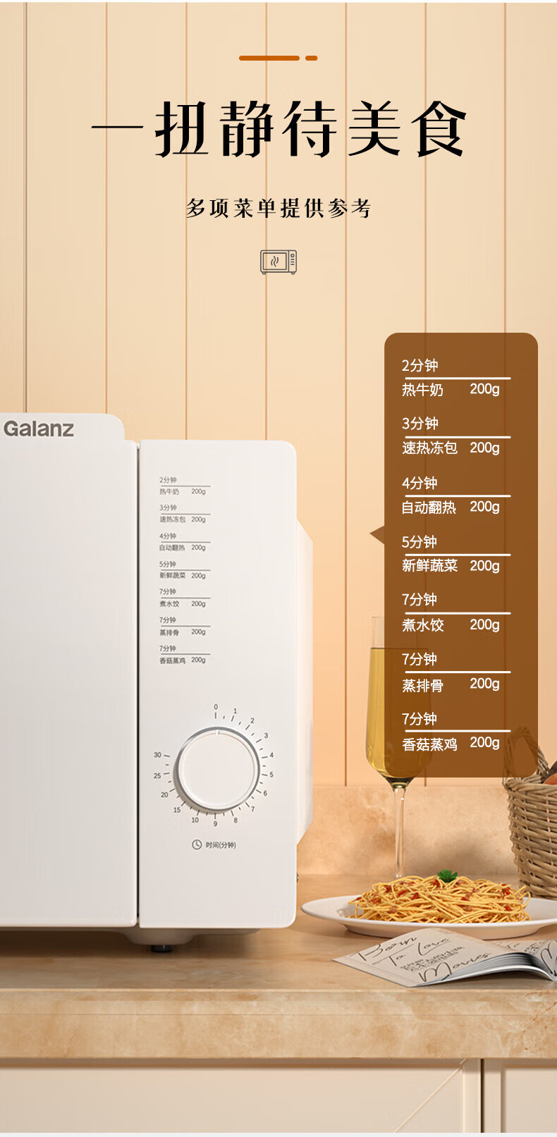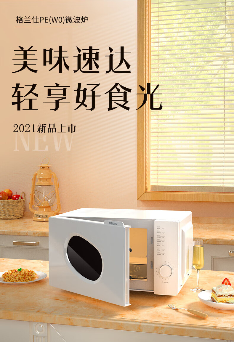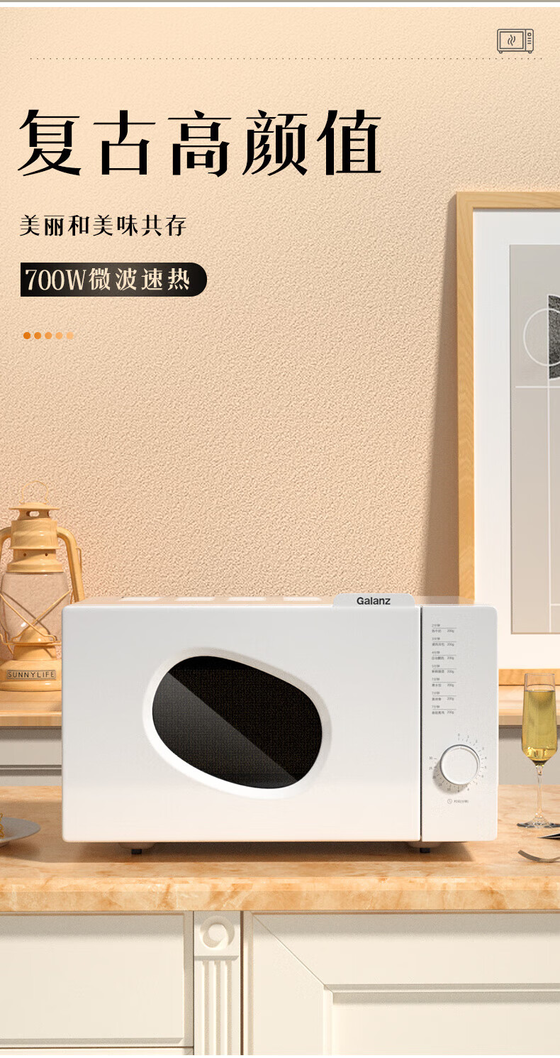 格兰仕【国家补贴】微波炉家用平板易清洁700瓦20升小型复古奶油风便捷旋钮式操作简单PE 【高颜值】 家庭优选