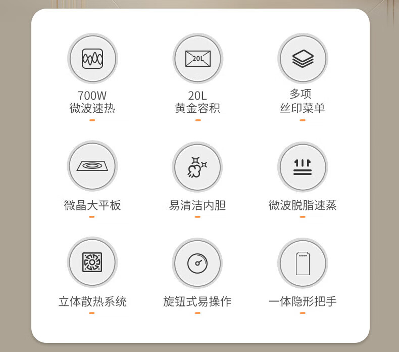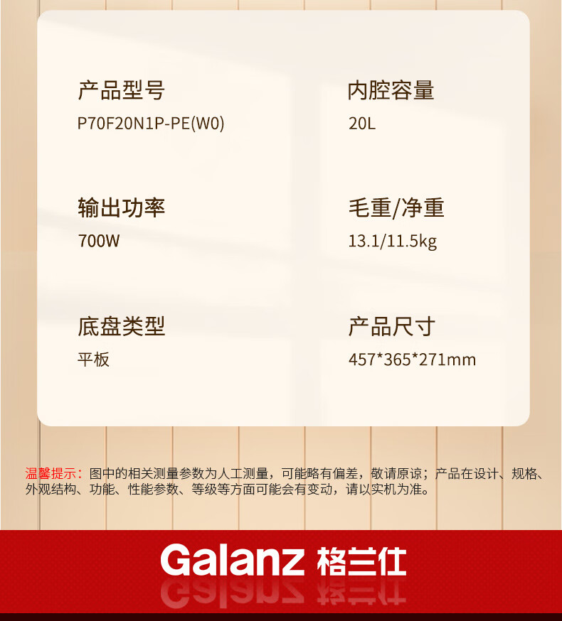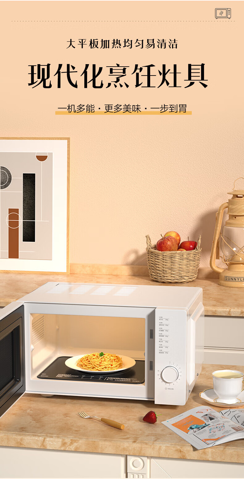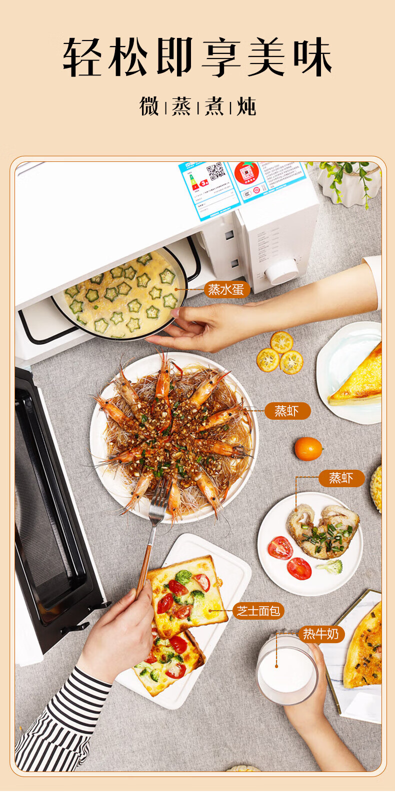 格兰仕【国家补贴】微波炉家用平板易清洁700瓦20升小型复古奶油风便捷旋钮式操作简单PE 【高颜值】 家庭优选