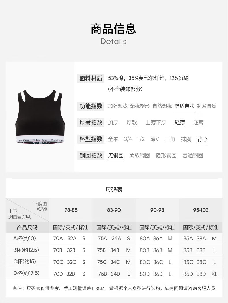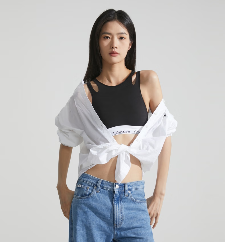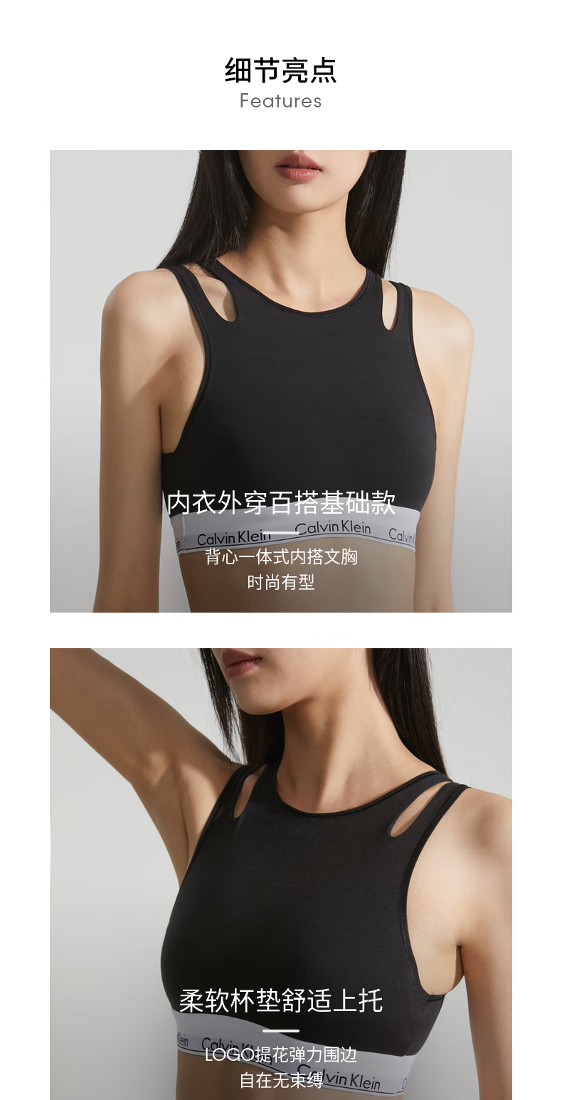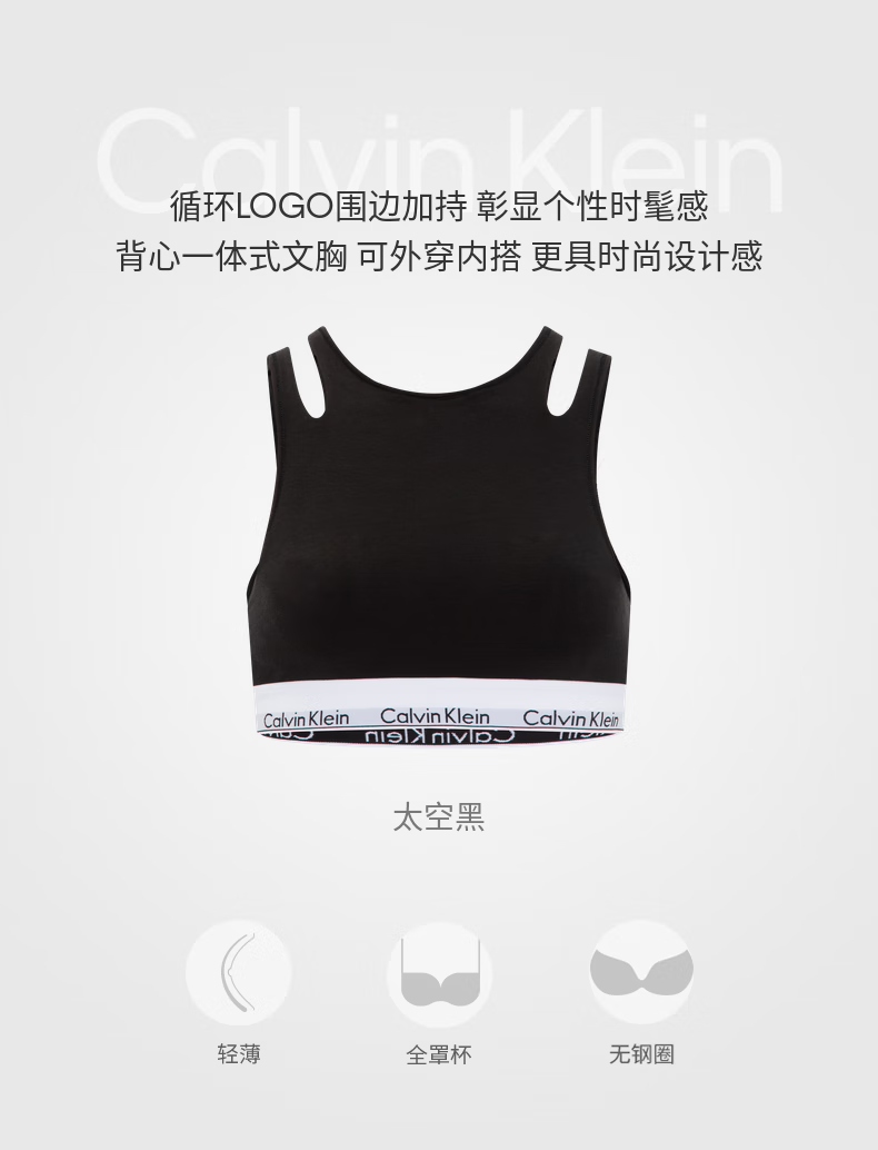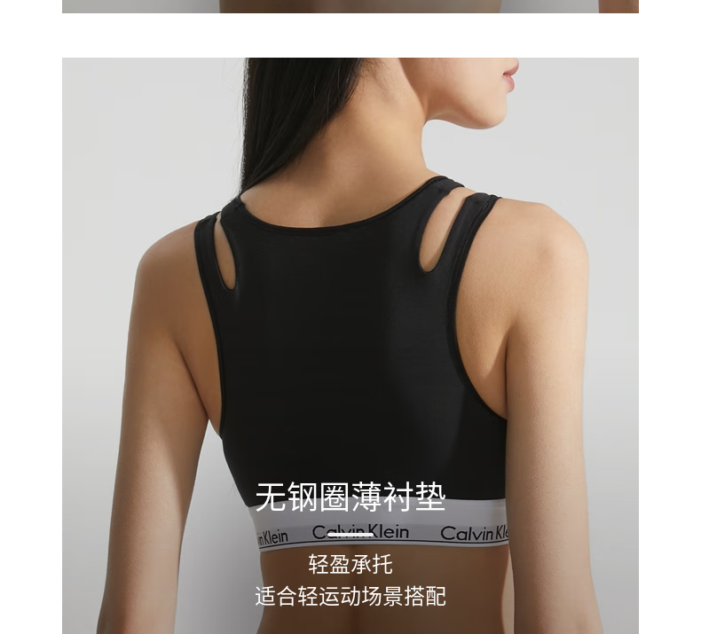 Calvin Klein内衣【摩登引力带】女士ck无钢圈轻运动薄垫内搭背心一体式文胸 P7A-椰青灰 S