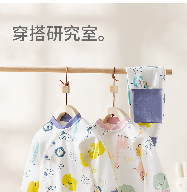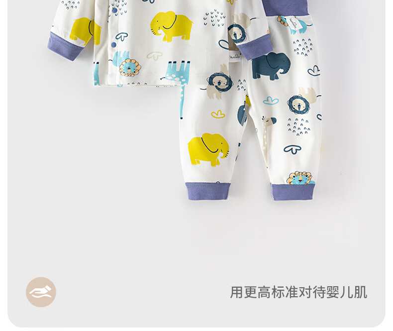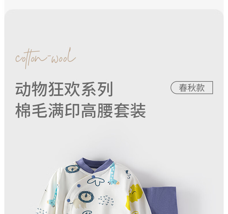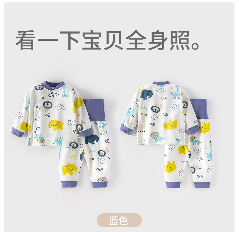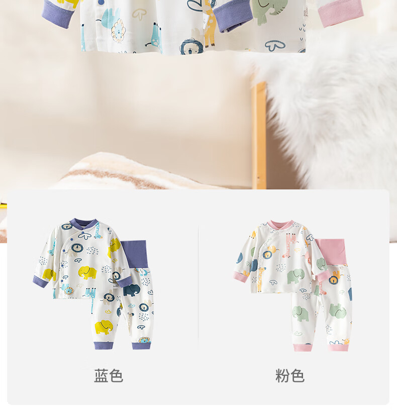 欢喜小熊 宝宝秋衣套装春秋纯棉男童全棉睡衣女高腰护肚秋裤婴儿内衣套装 【动物狂欢蓝】 73 (建议7-9个月.身高66-73cm)