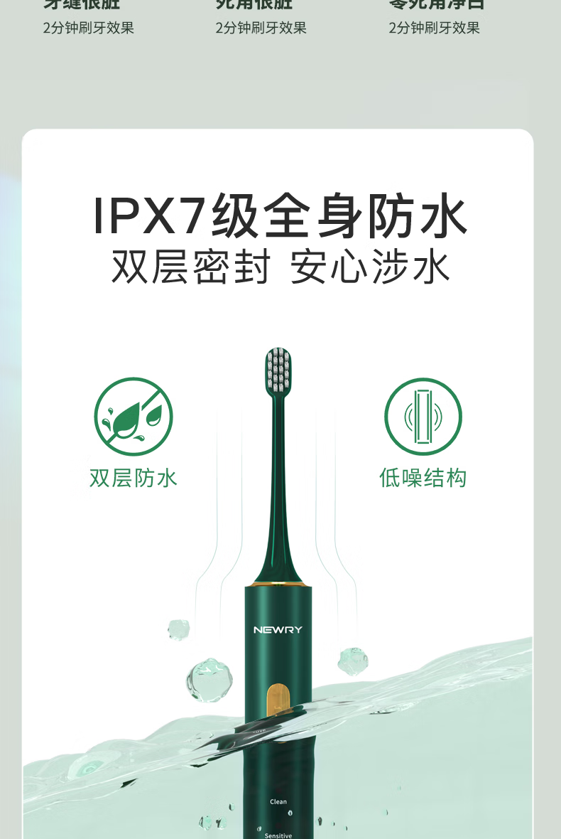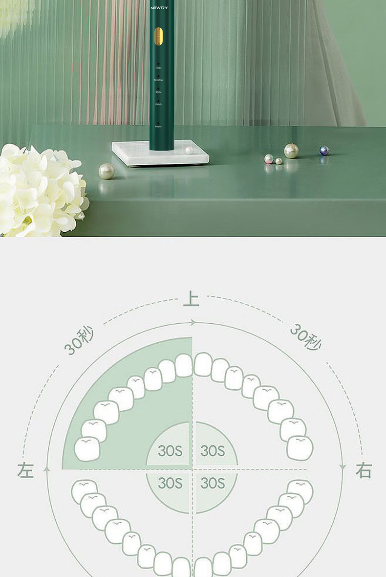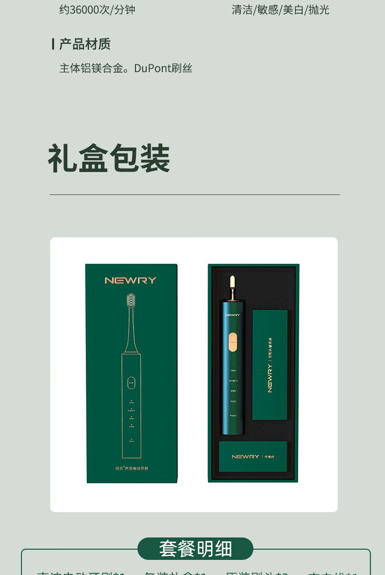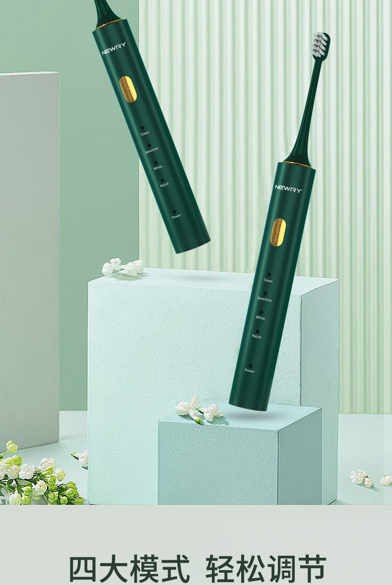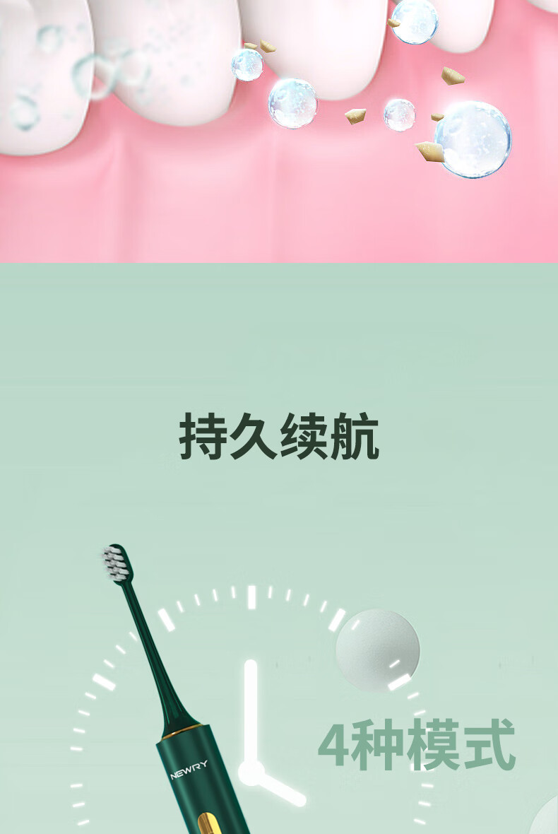 纽立电动牙刷全自动刷头软毛四档调节模式清洁深层type-c快充BJ-Y2礼物 翠竹绿礼盒