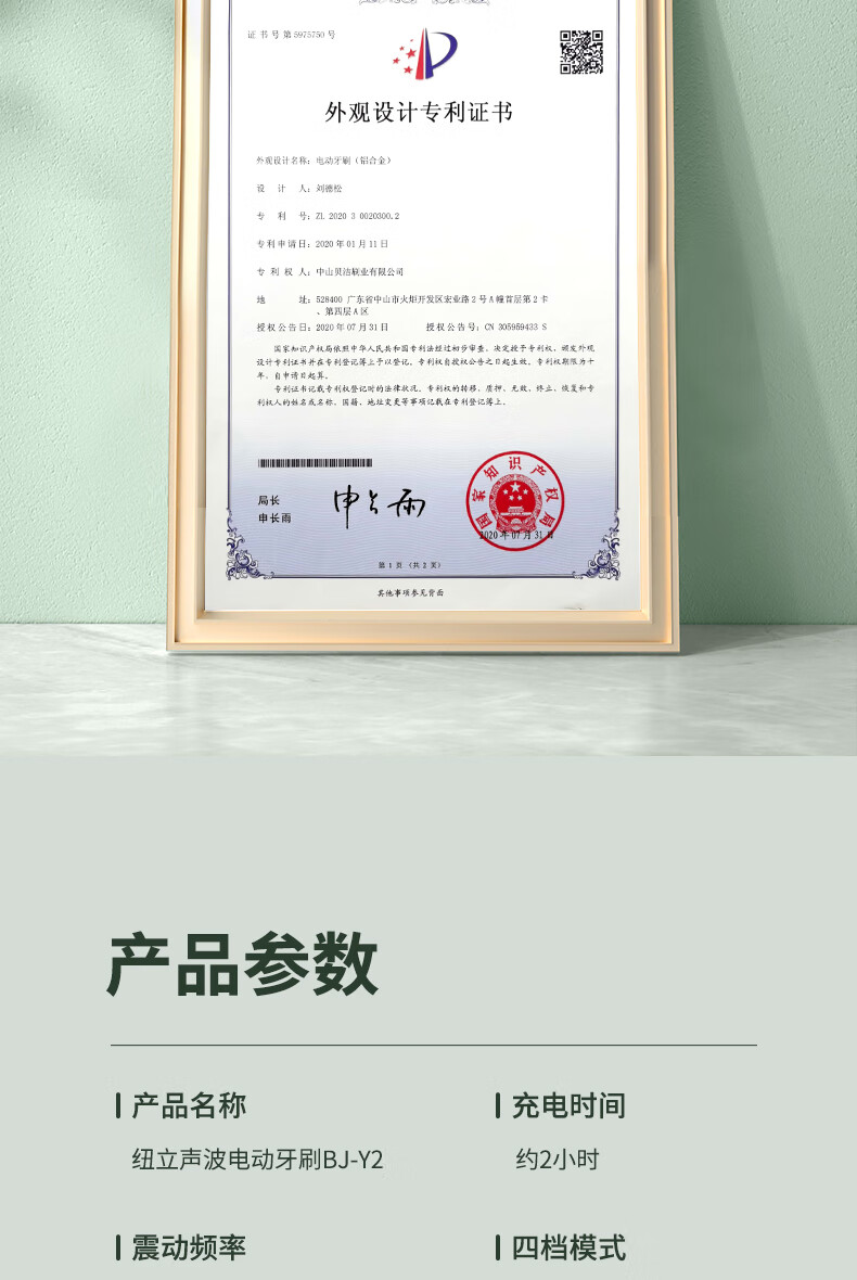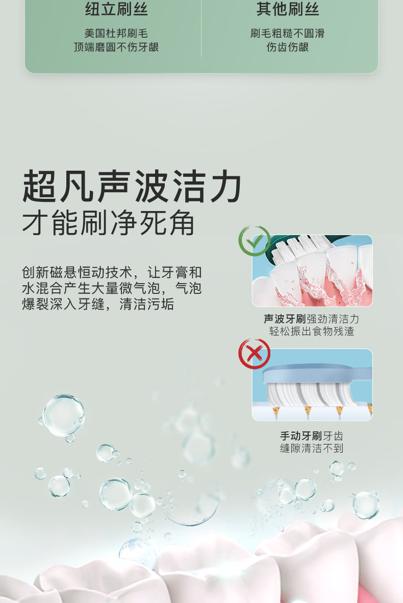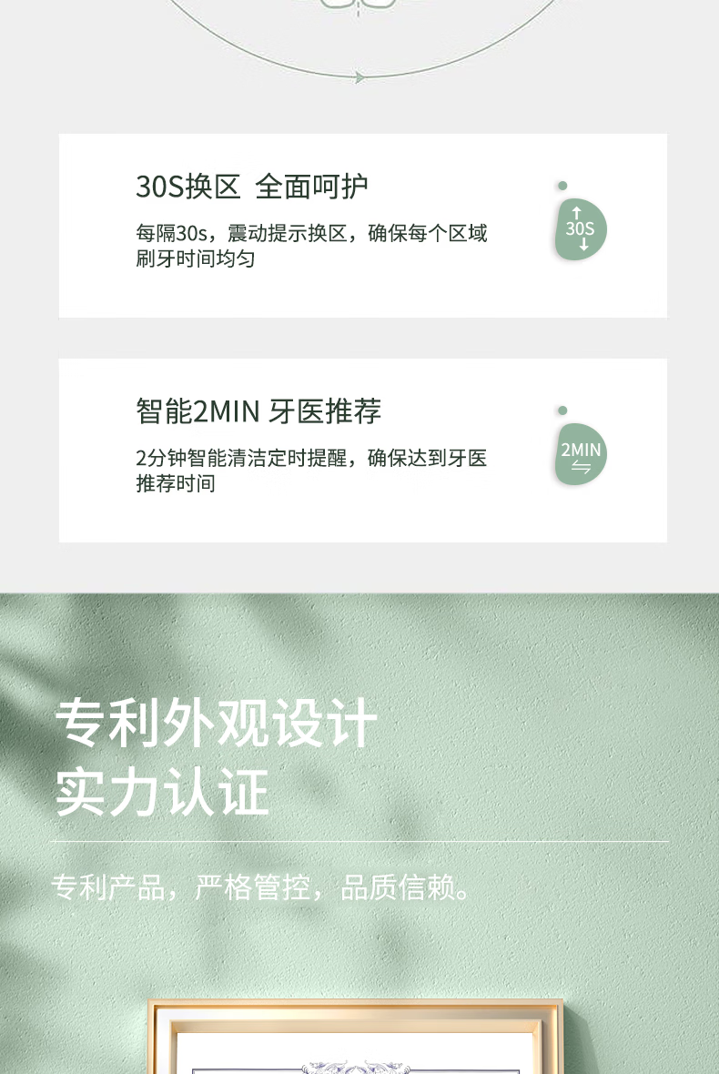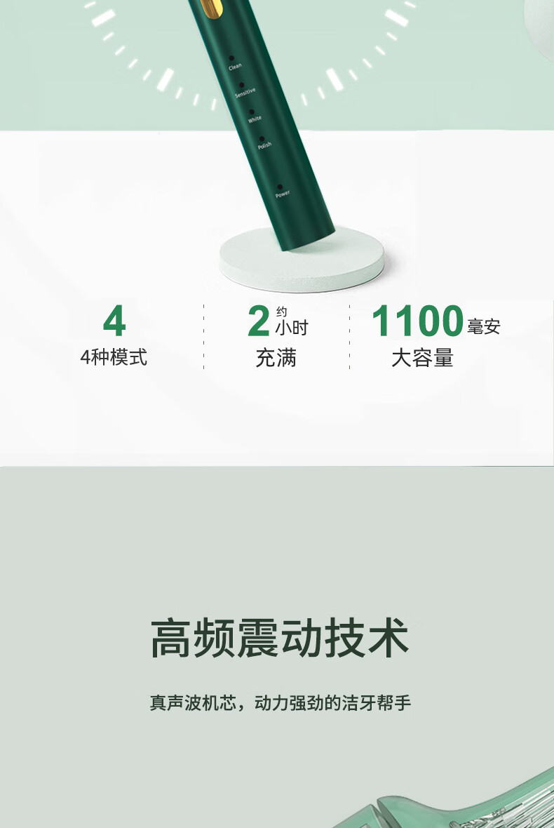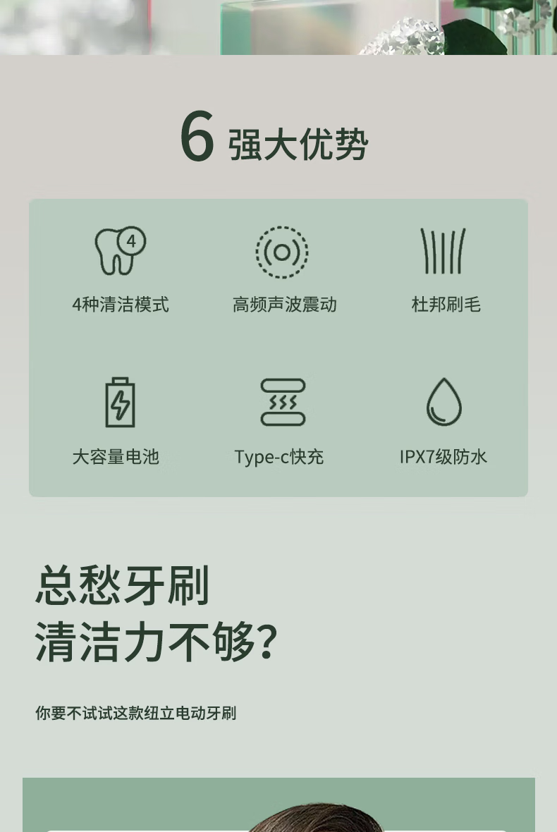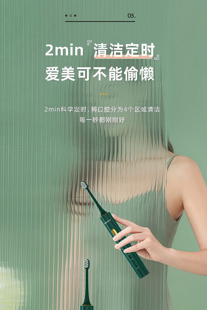 纽立电动牙刷全自动刷头软毛四档调节模式清洁深层type-c快充BJ-Y2礼物 翠竹绿礼盒