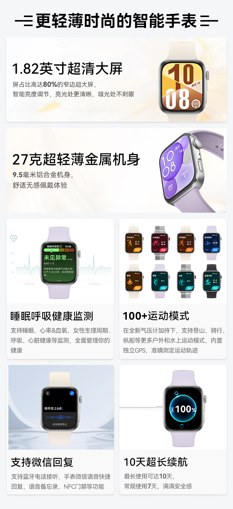 华为(HUAWEI)【咨询享优惠】WATCH FIT 4智能手表运动蓝牙通话轻薄大屏高中学生健康管理NFC门禁男女心率 悦动白【甄选表带+精美表盘】