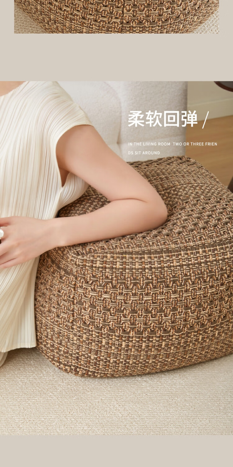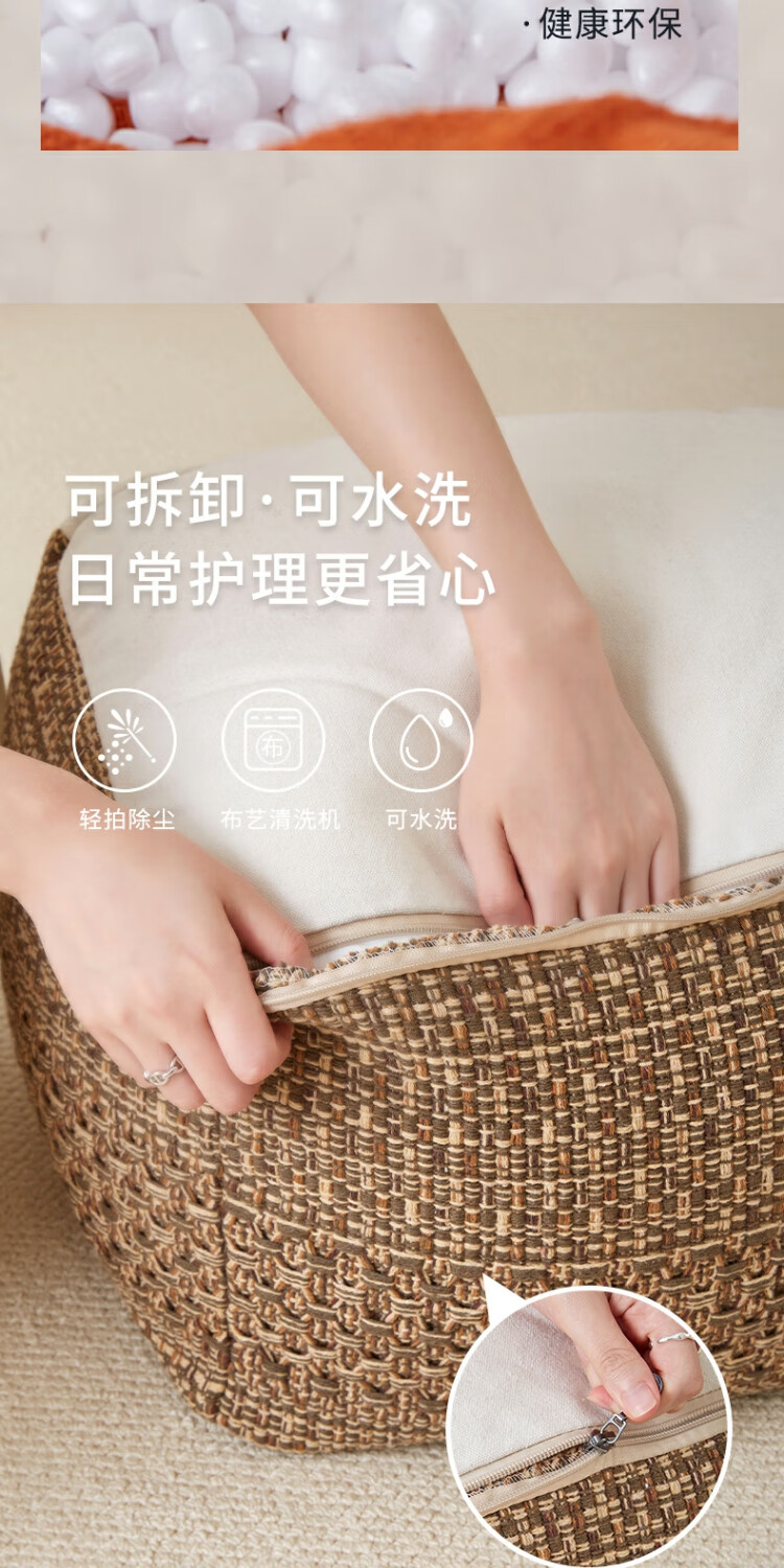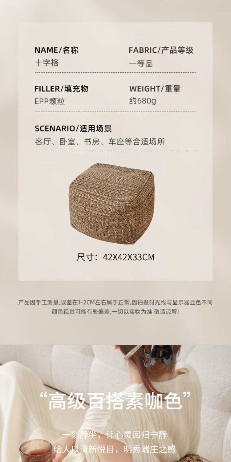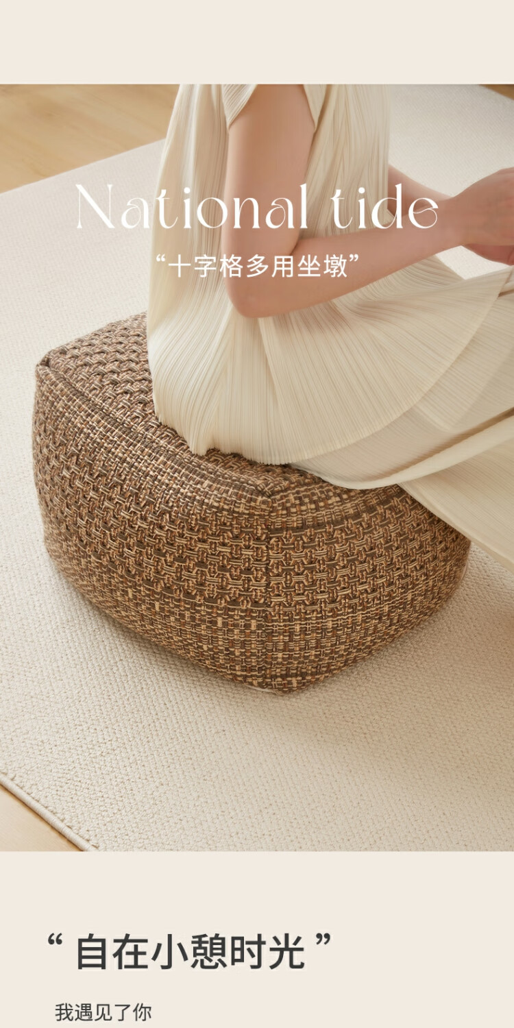 京华简约素色蒲团地上坐墩坐垫可拆洗靠垫靠背懒人榻榻米茶几布艺抱枕 十字格坐墩 42*42*33CM