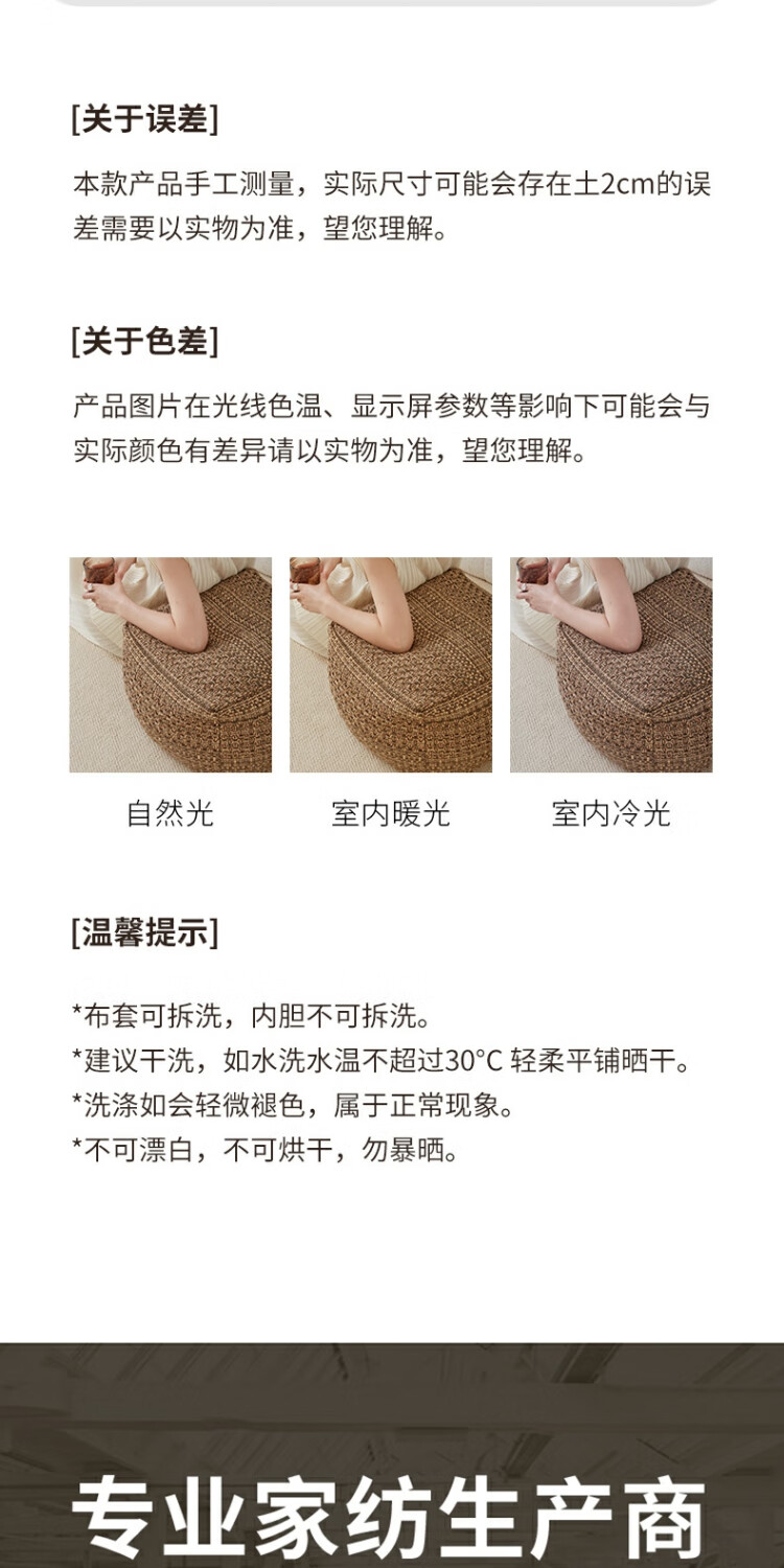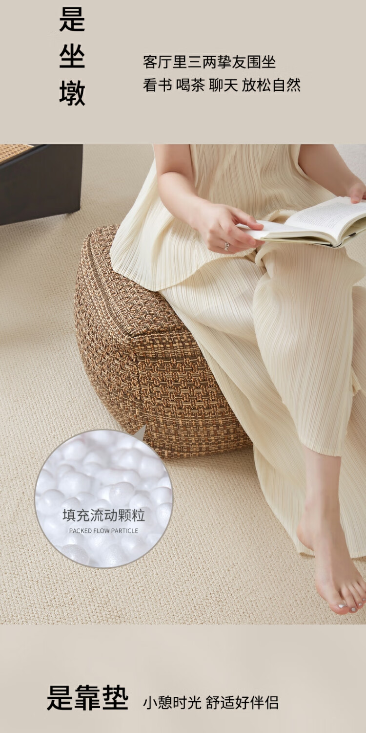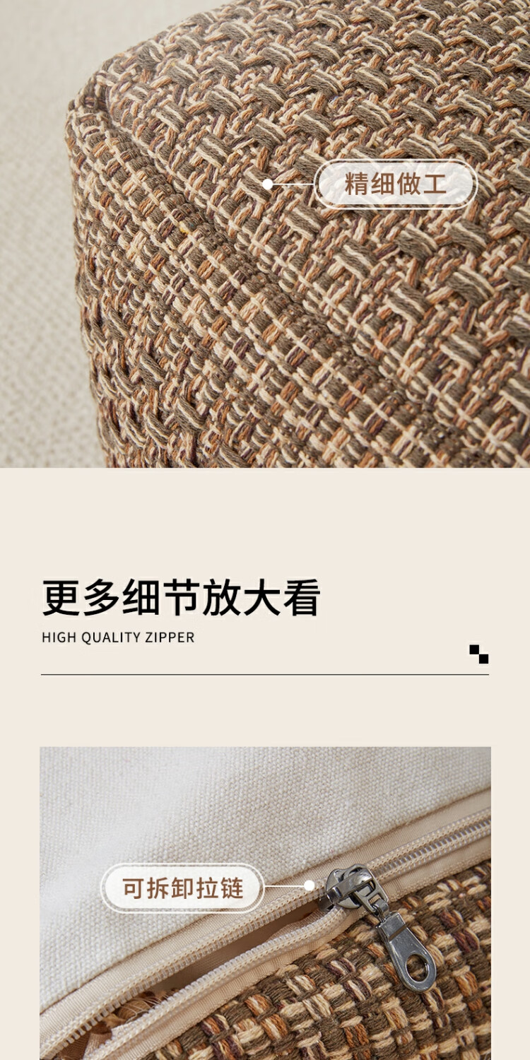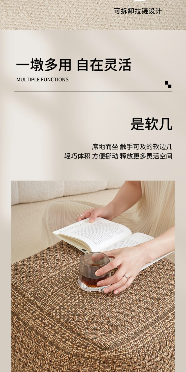 京华简约素色蒲团地上坐墩坐垫可拆洗靠垫靠背懒人榻榻米茶几布艺抱枕 十字格坐墩 42*42*33CM