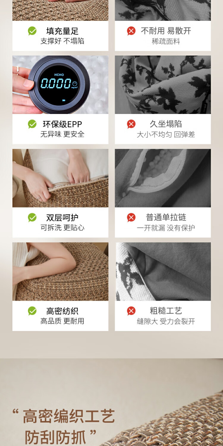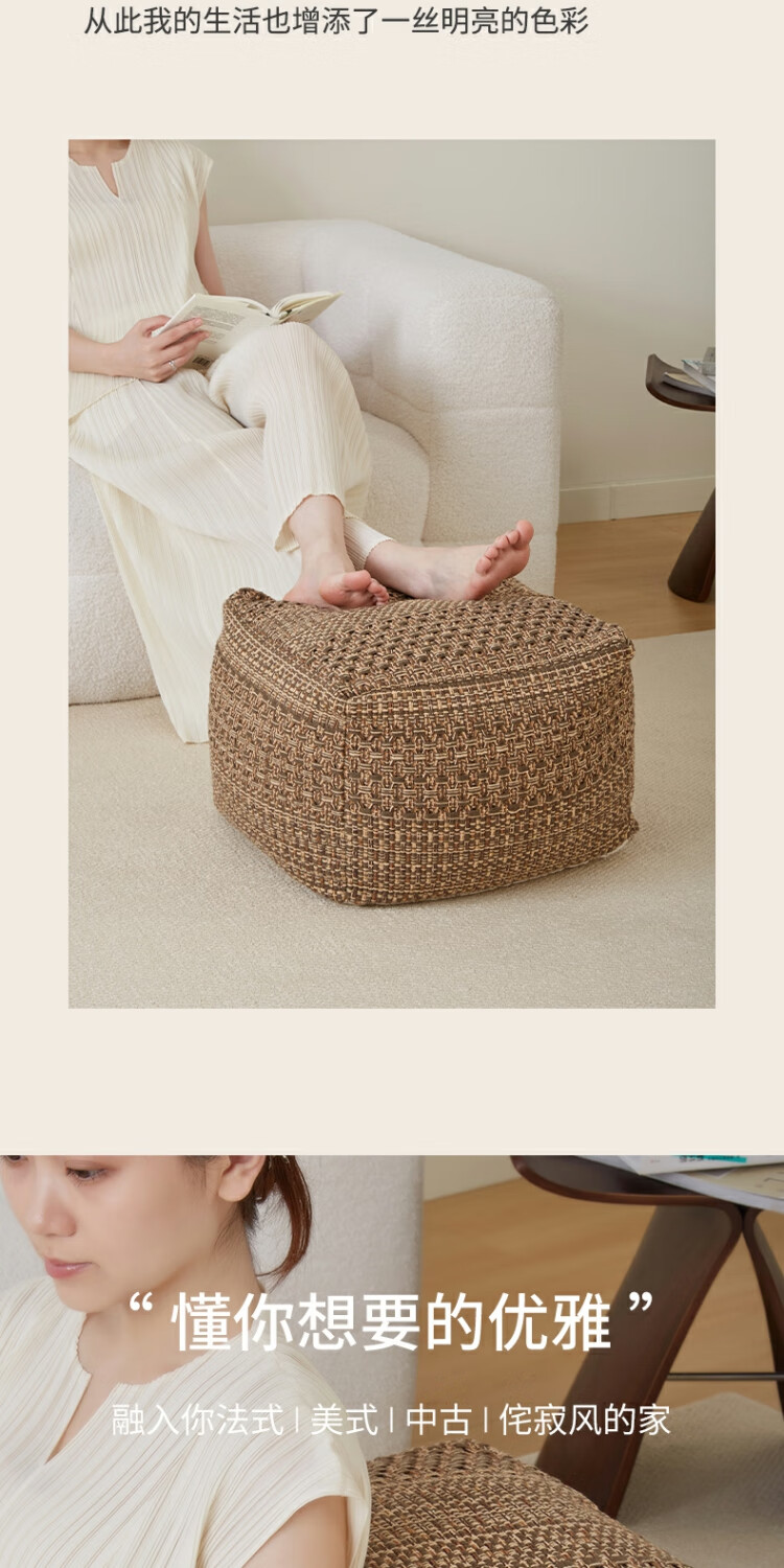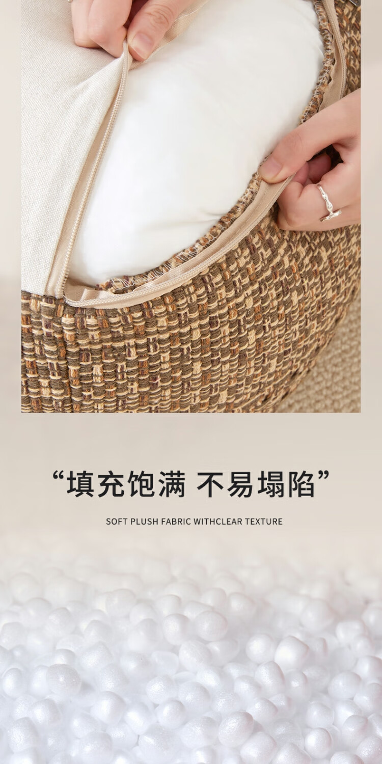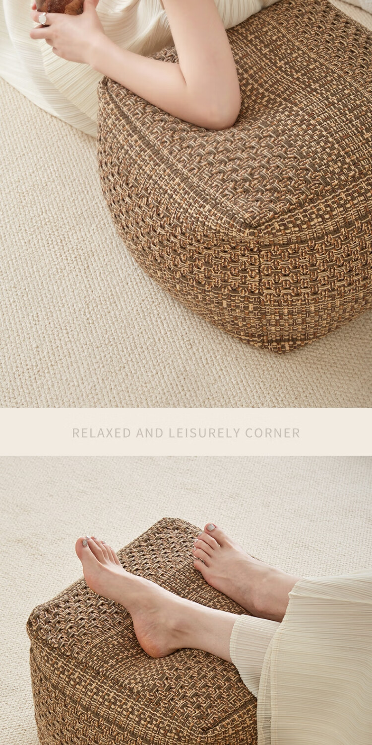 京华简约素色蒲团地上坐墩坐垫可拆洗靠垫靠背懒人榻榻米茶几布艺抱枕 十字格坐墩 42*42*33CM