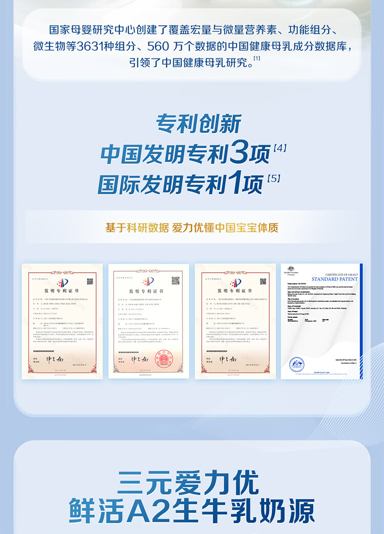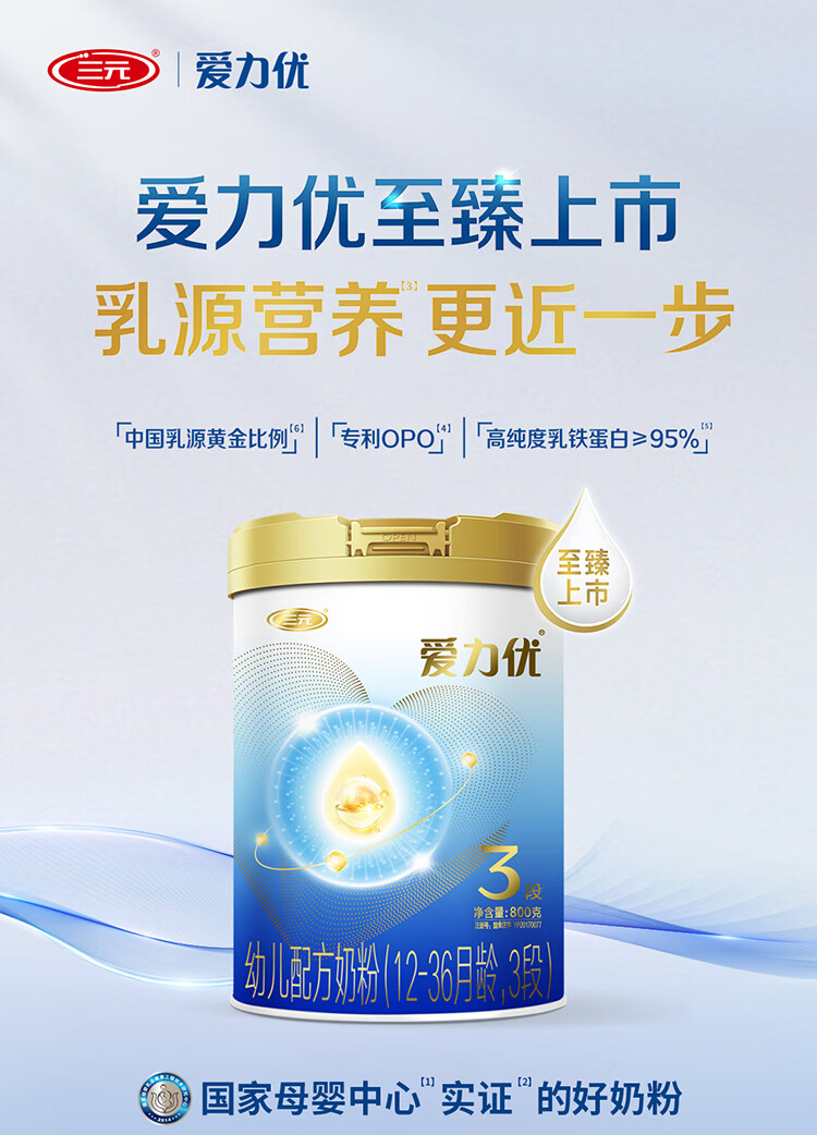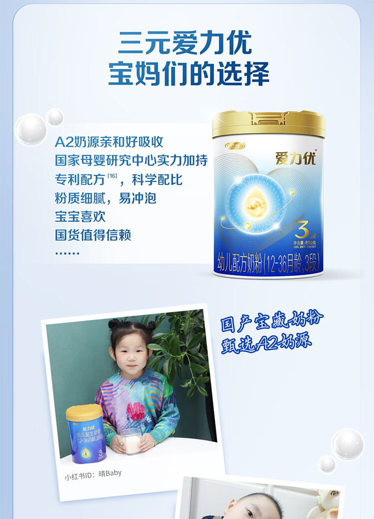 三元 A2奶源 爱力优至臻幼儿配方奶粉3段(12-36个月)800g/罐