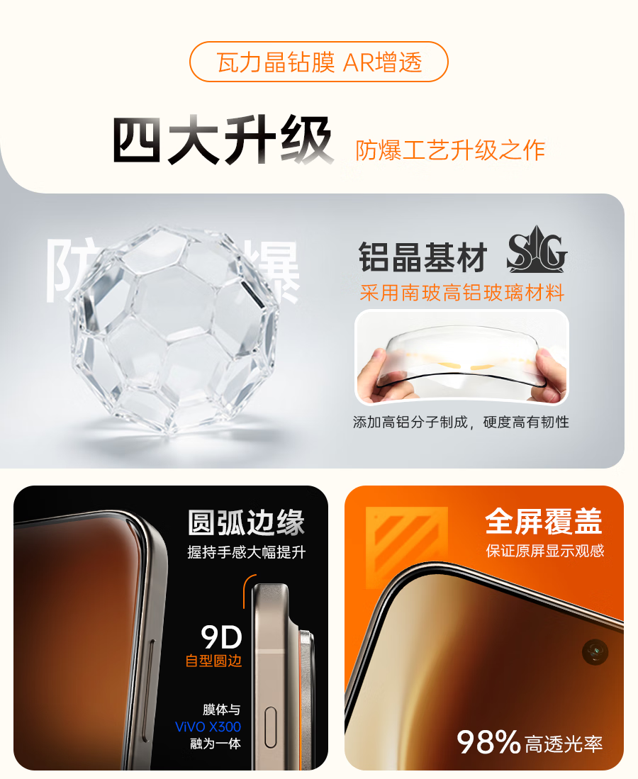 瓦力【全胶钢化膜】适用vivox300pro钢化膜全胶高清玻璃VIVO X300Pro手机保护3D热弯防摔抗指纹=带舱