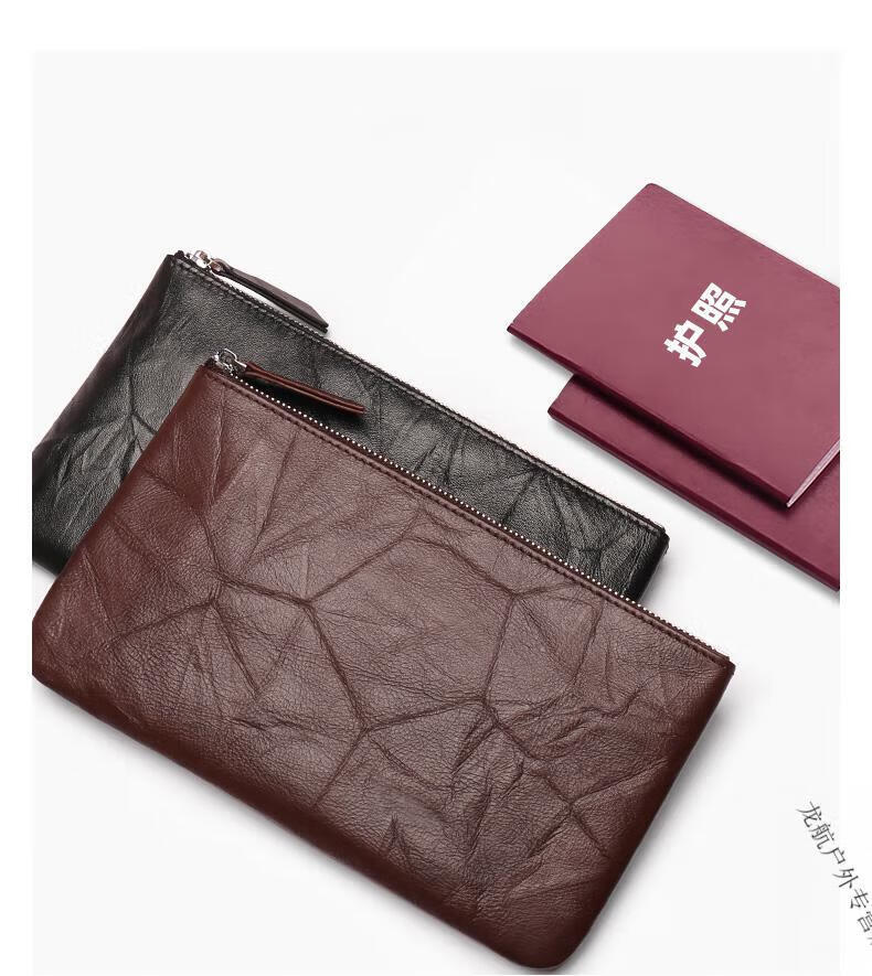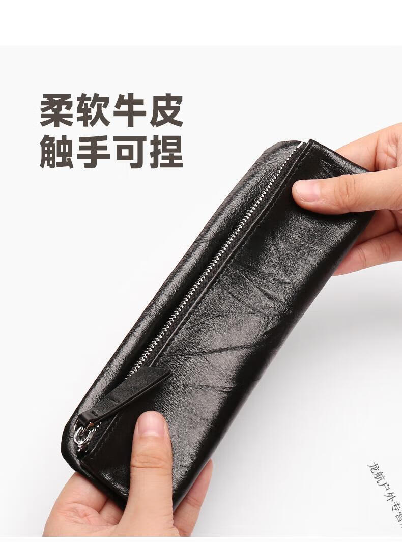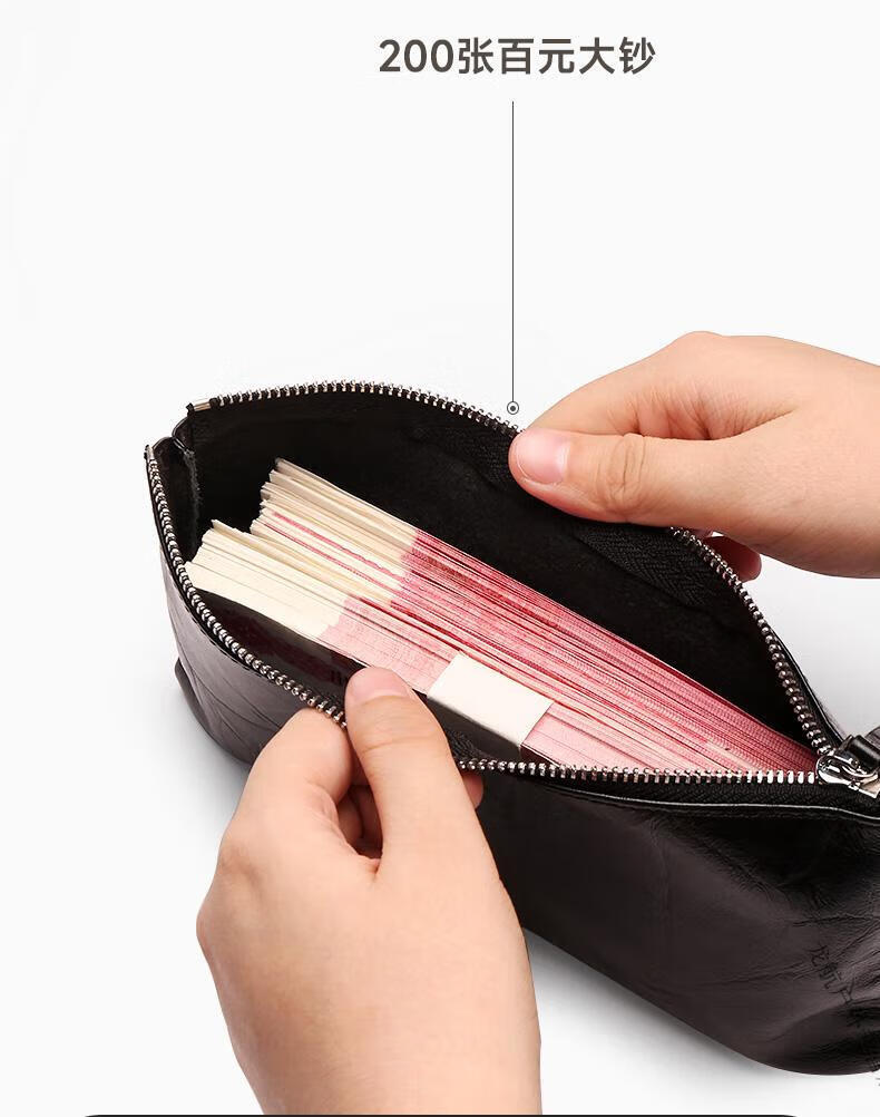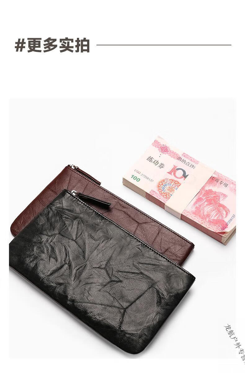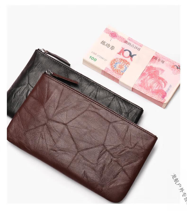 AILUKI德国钱包女士2025新款一片式薄长款钱夹袋男式证件现金收纳零钱包 手抓纹黑色-手腕带-可放200张大
