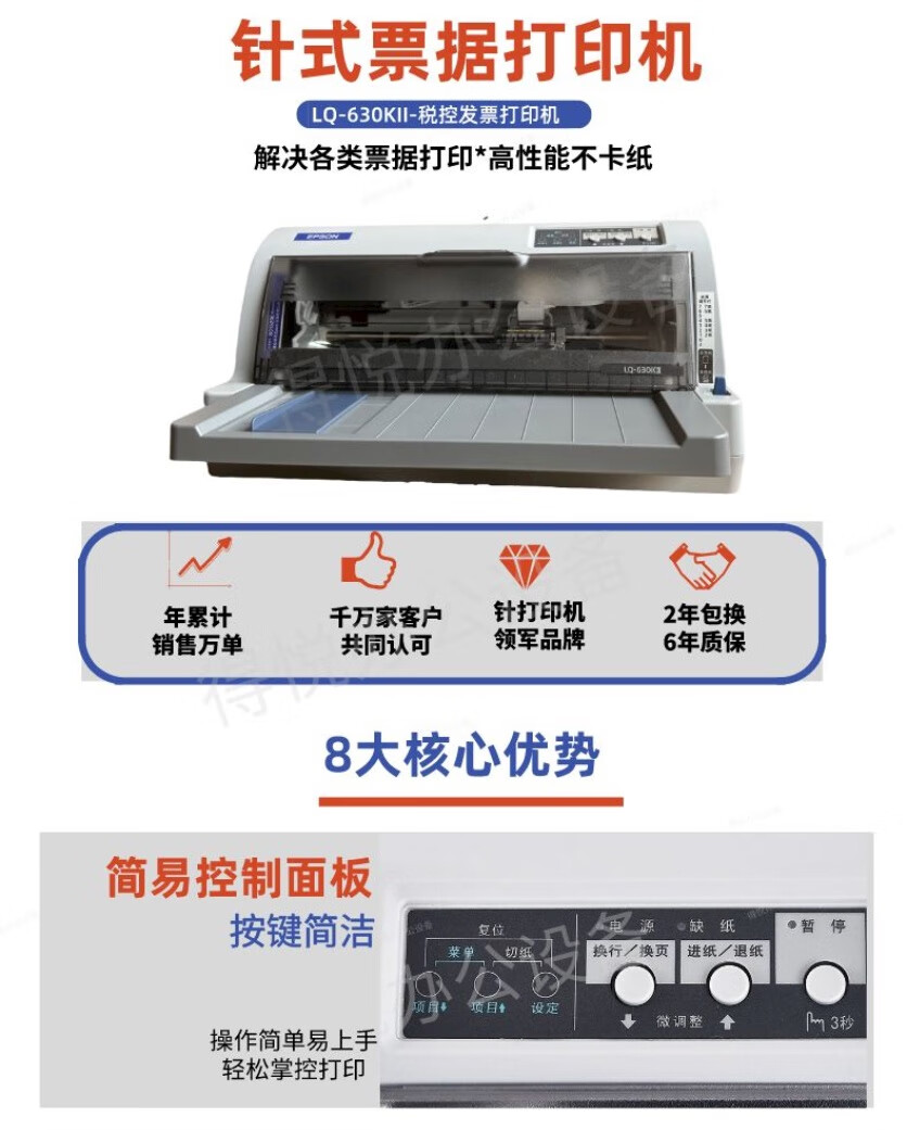 爱普生全新爱普生LQ630K635K730Kii三联发票出库单销售单票据针式打印机 爱普生LQ630K 老款 官方标配 现货速发