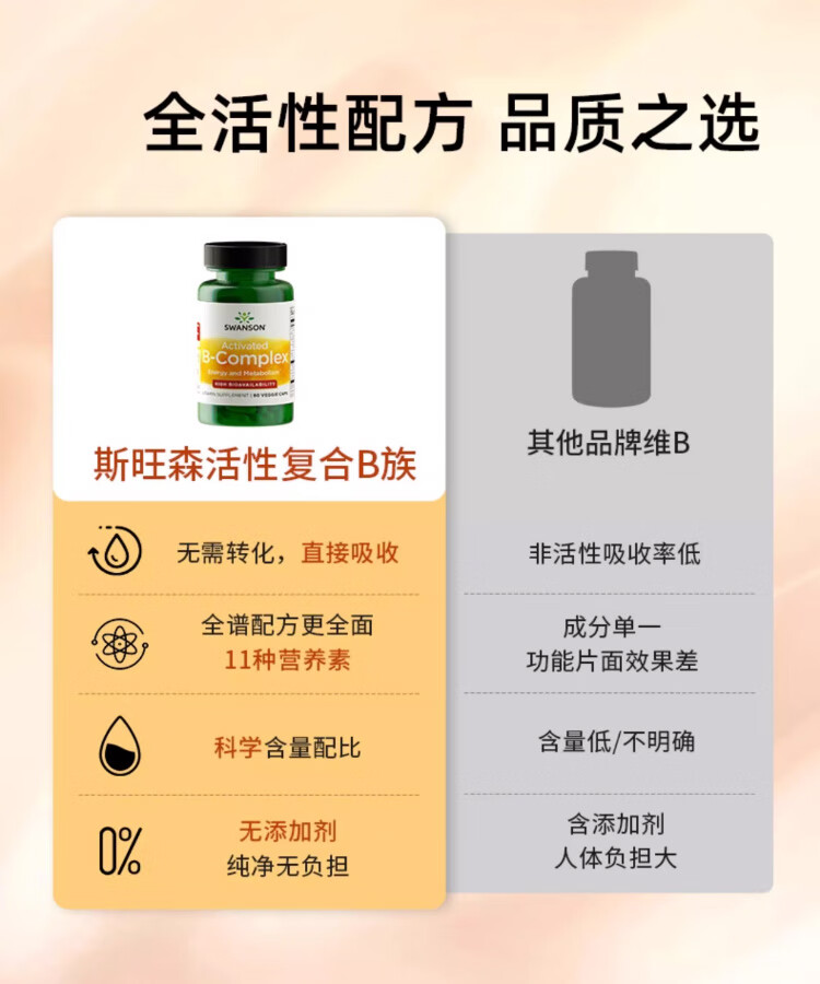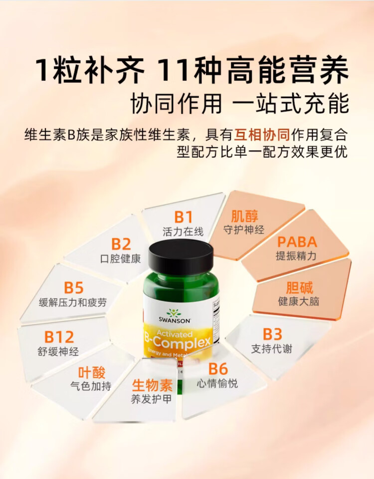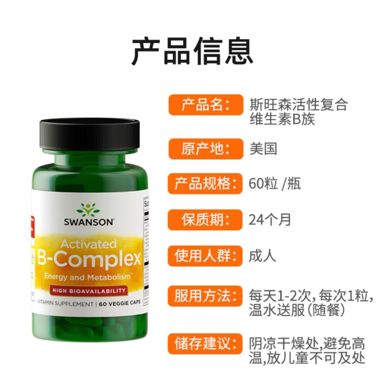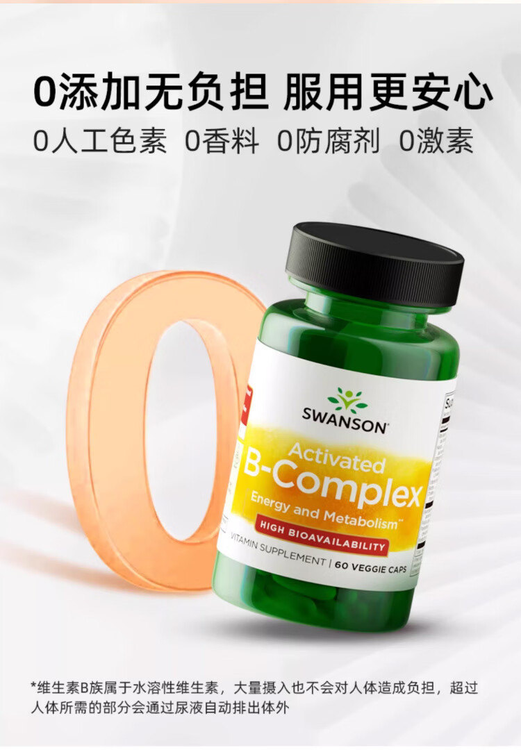 斯旺森(SWANSON)b族维生素胶囊 提高自护复合b族vb新陈代谢减脂 活性b族维生素胶囊 60粒*2瓶