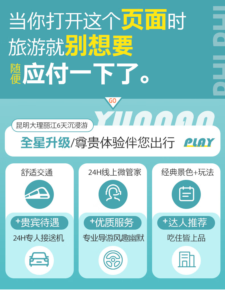 【超值双人价】云南旅游 昆明大理丽江6天5晚豪华双人跟团游 丽江古城 玉龙雪山8 豪华双人游